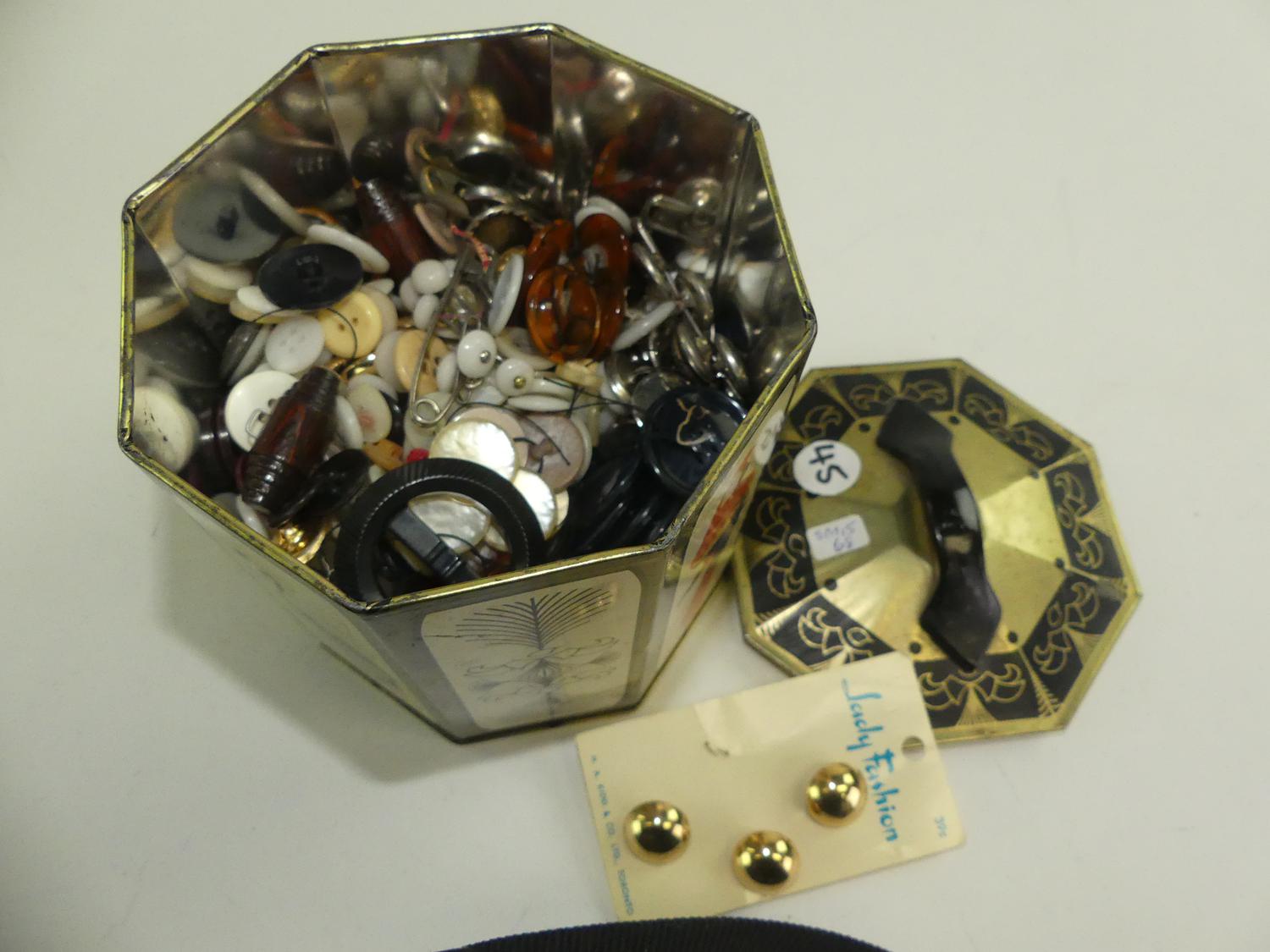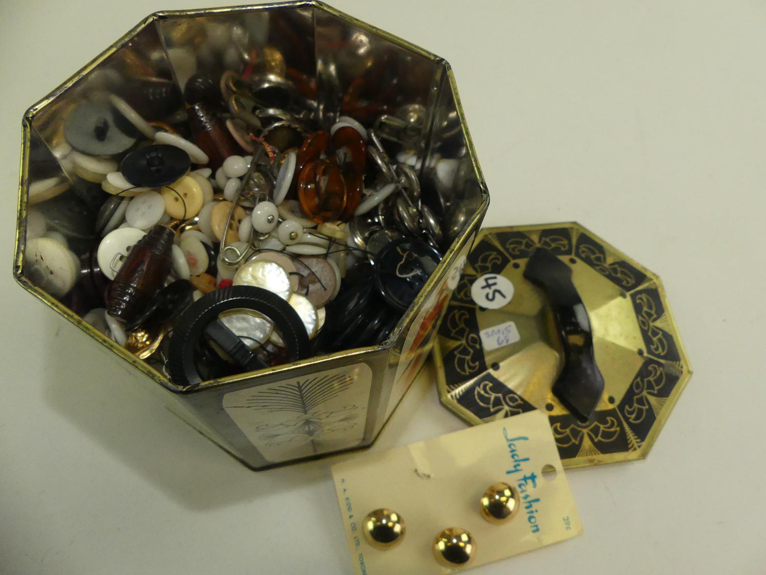 vintage tin of buttons