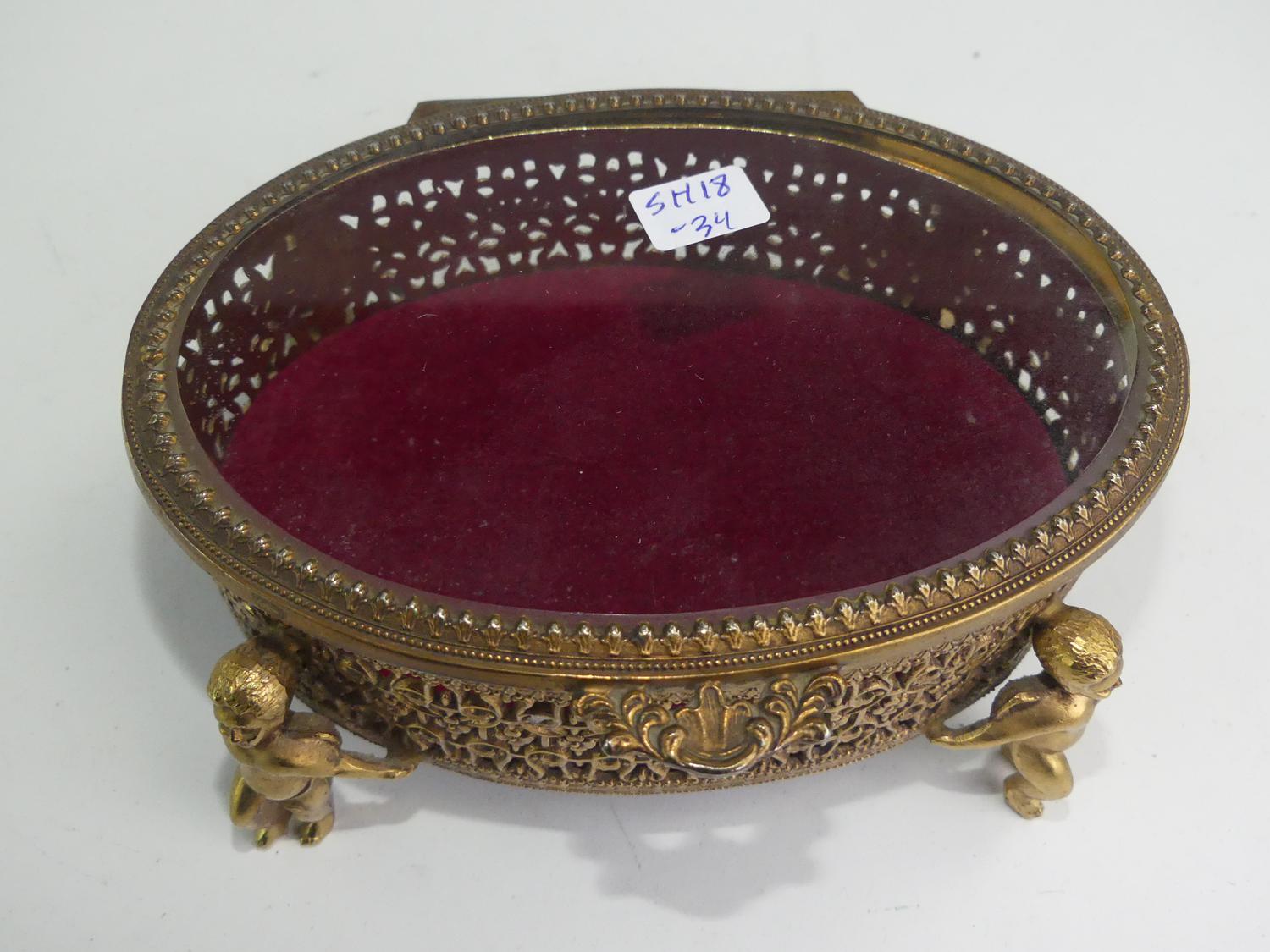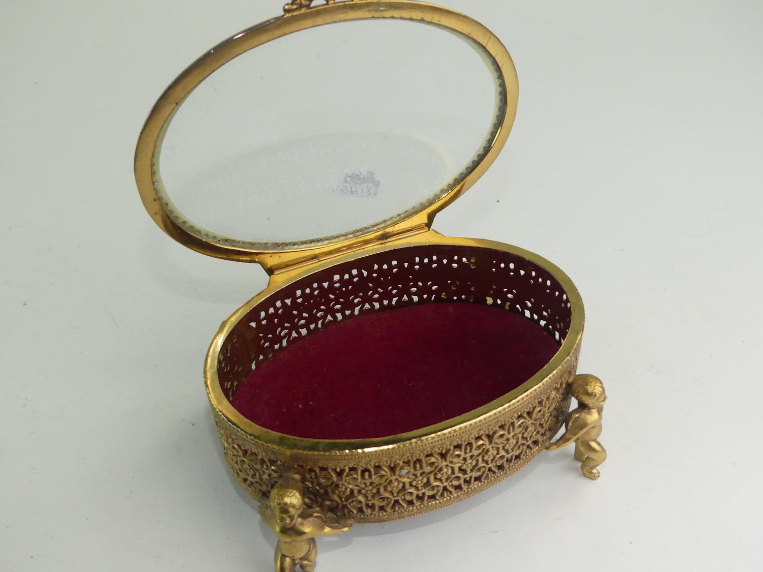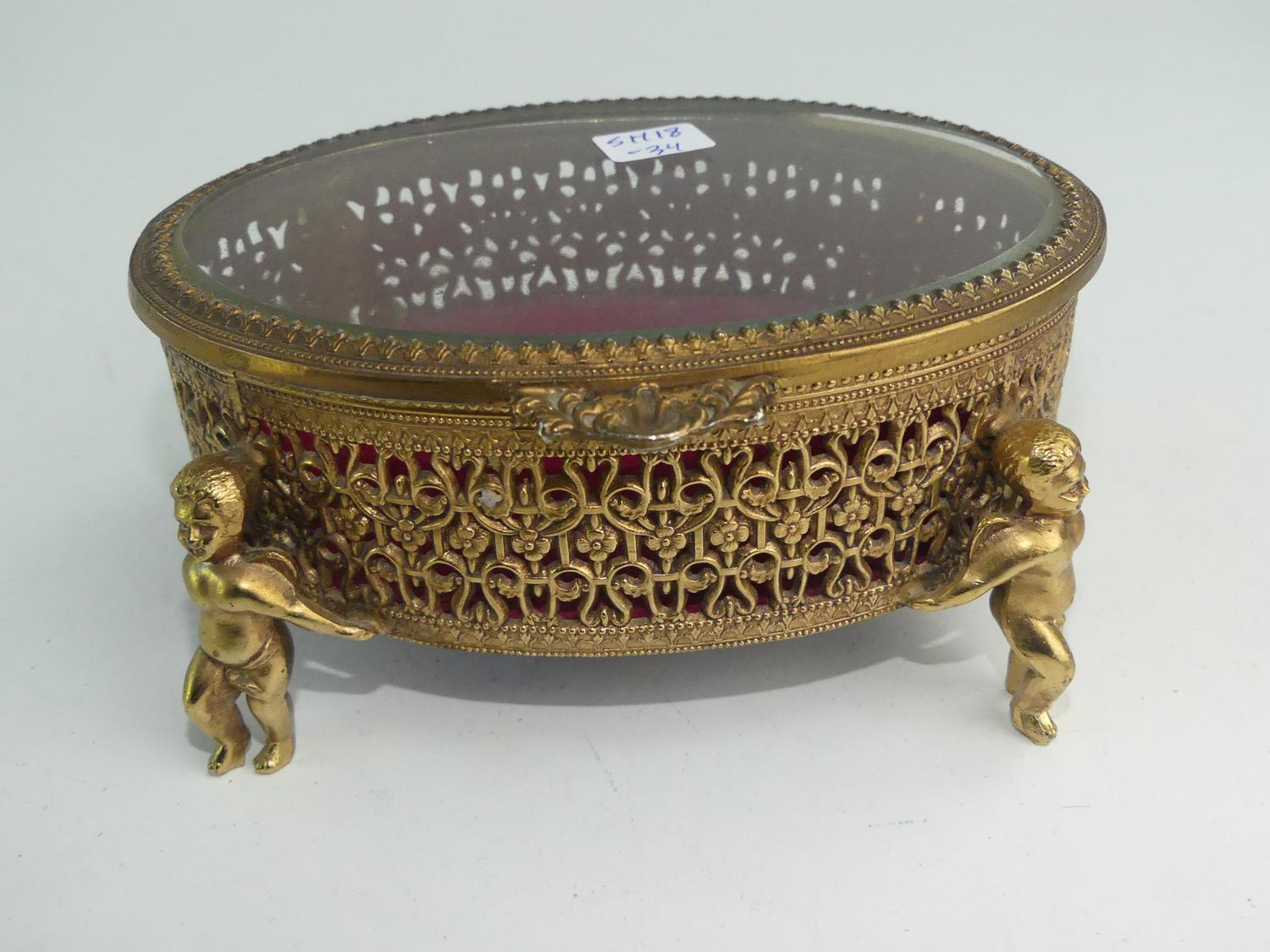 gilt metal and crystal dresser box, 3" x 6" x 4 1/2"