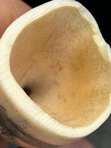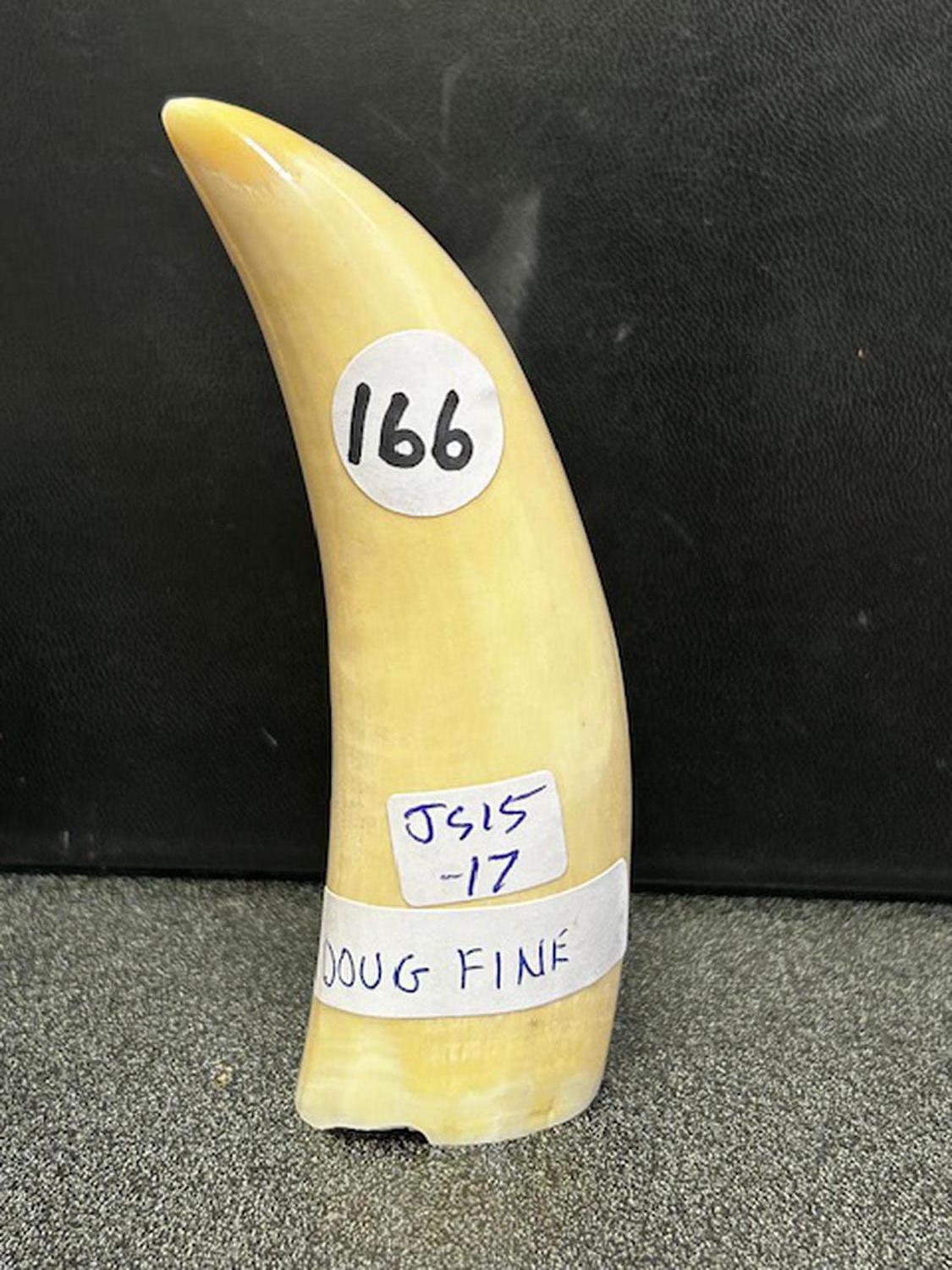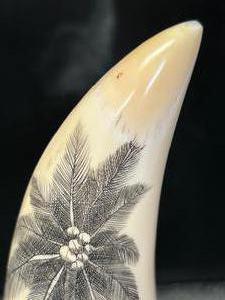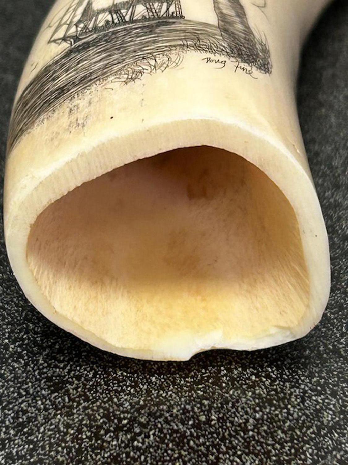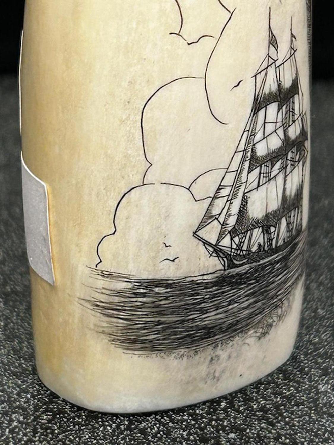 vintage ivory scrimshaw signed doug fine, ht. 4 1/2"