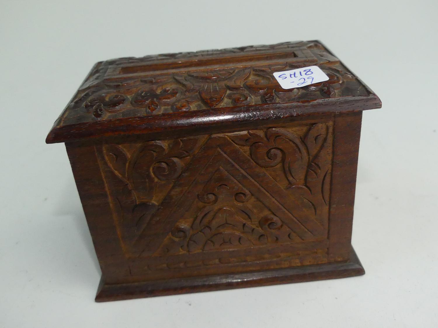 carved wood cigarette dispenser, 5" x 3 1/2" x 3 3/4"
