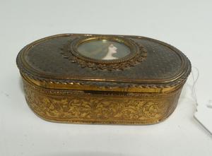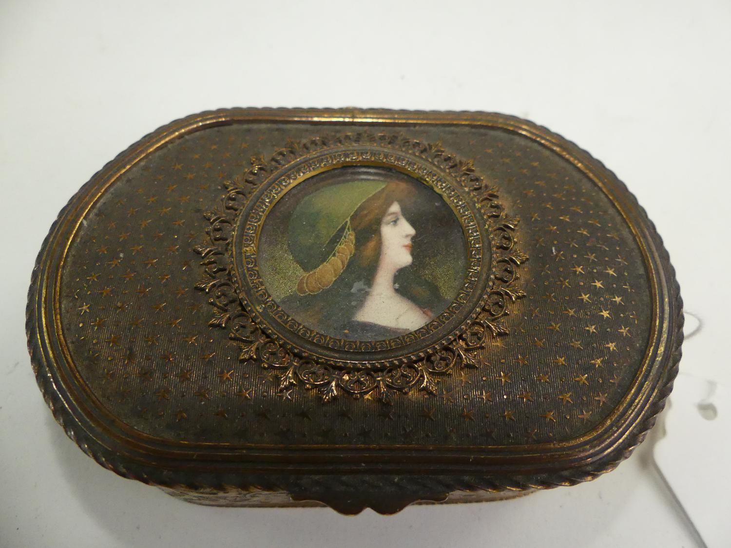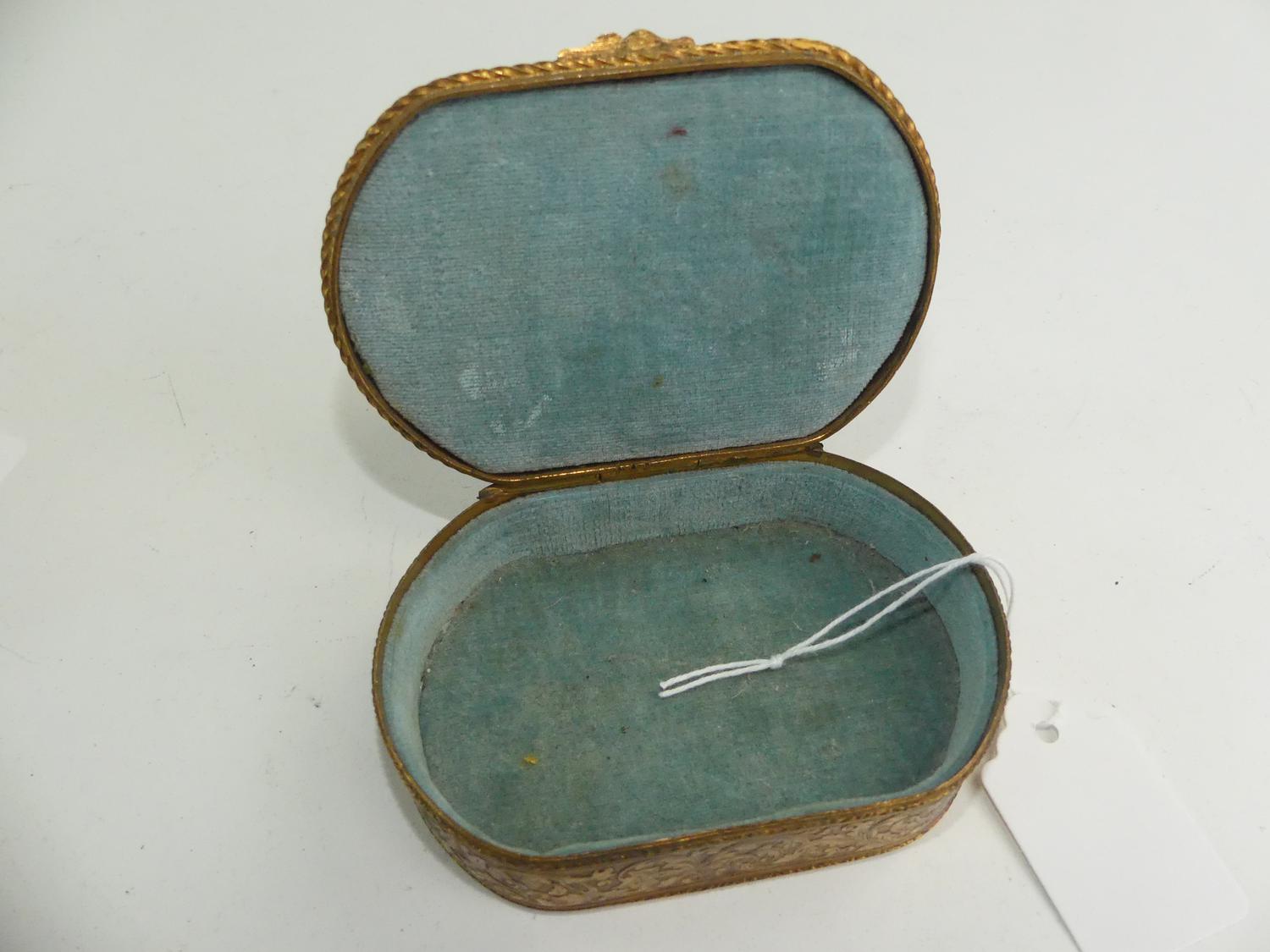 antique french gilt metal cameo mounted dresser box, 1 1/4" x 4 1/8"