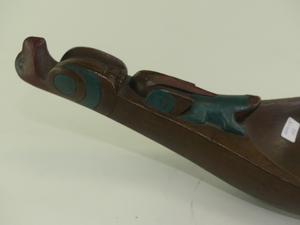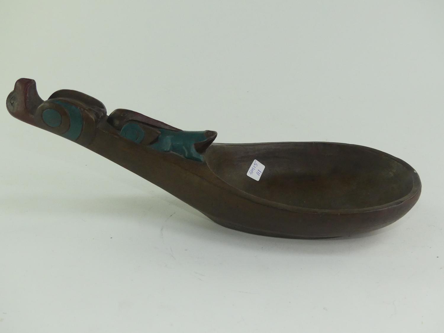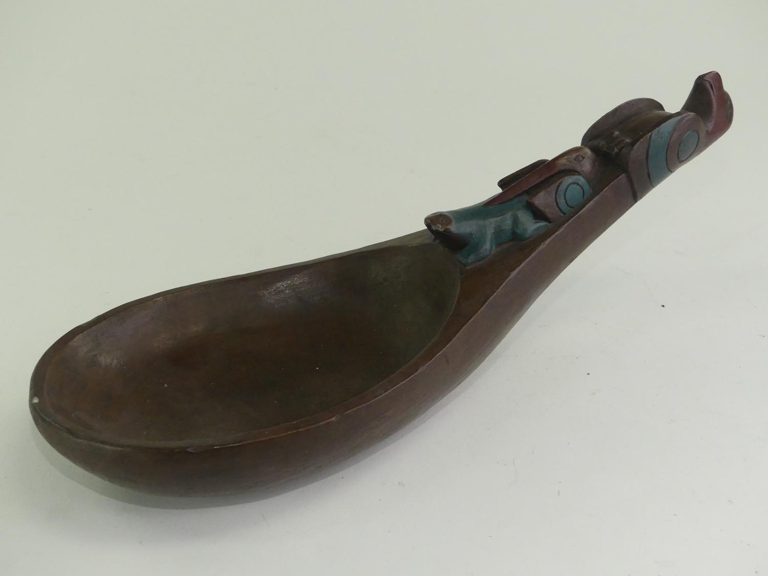 decorative - haida ceremonial eagle raven frog ladle, queen charlotte islands, length 14 1/2"