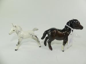 beswick miniature pony figure, 3 1/2" x 4 1/2" x 1 1/2" with another colt fiigure