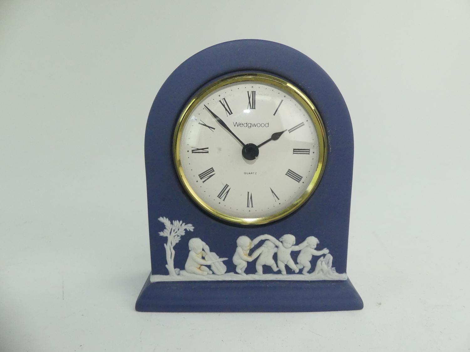 wedgewood blue jasperware dresser clock, 4 1/2" x 4 1/2" x 1 1/2"