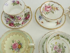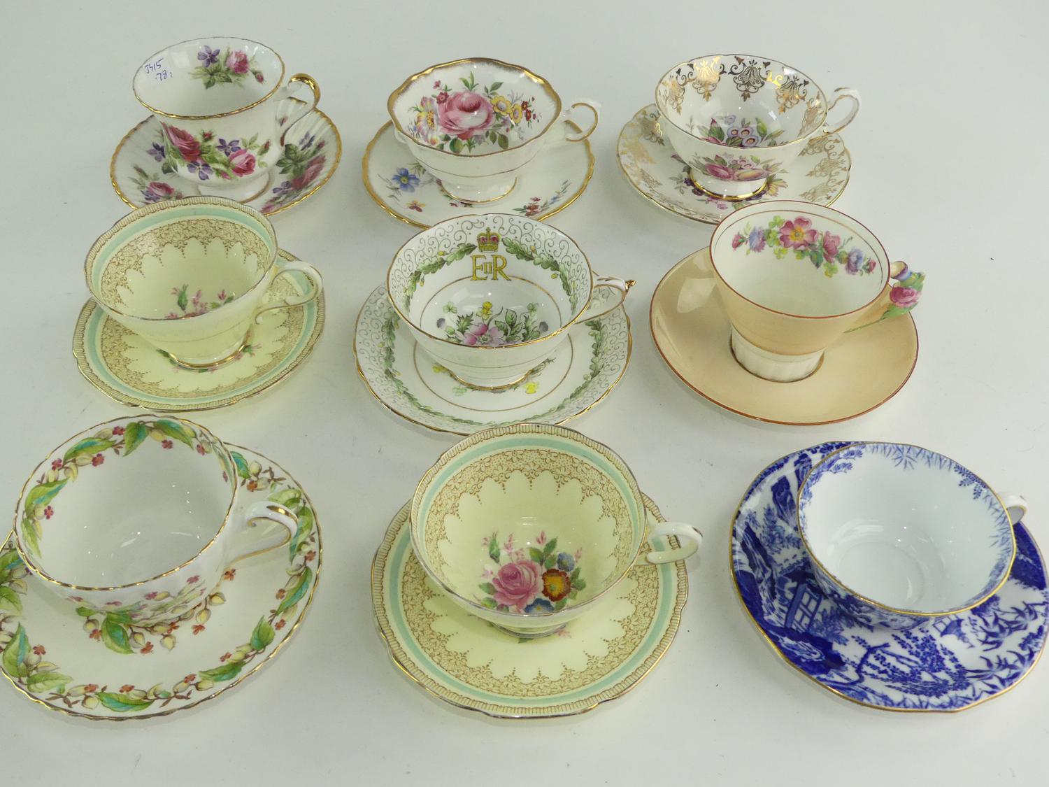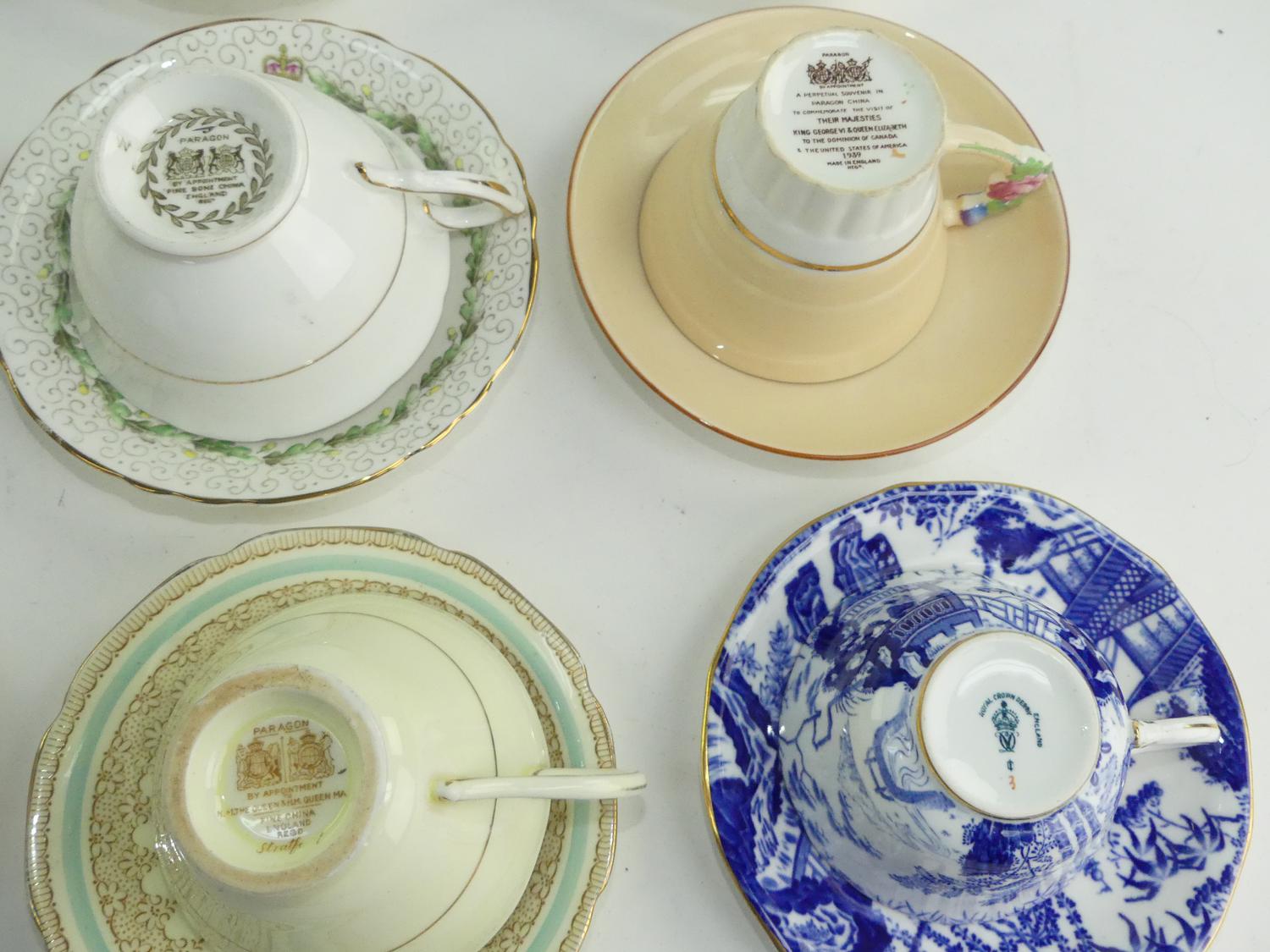 lot of paragon and royal crown derby tea cups and saucers