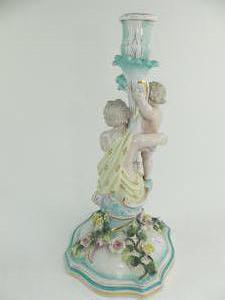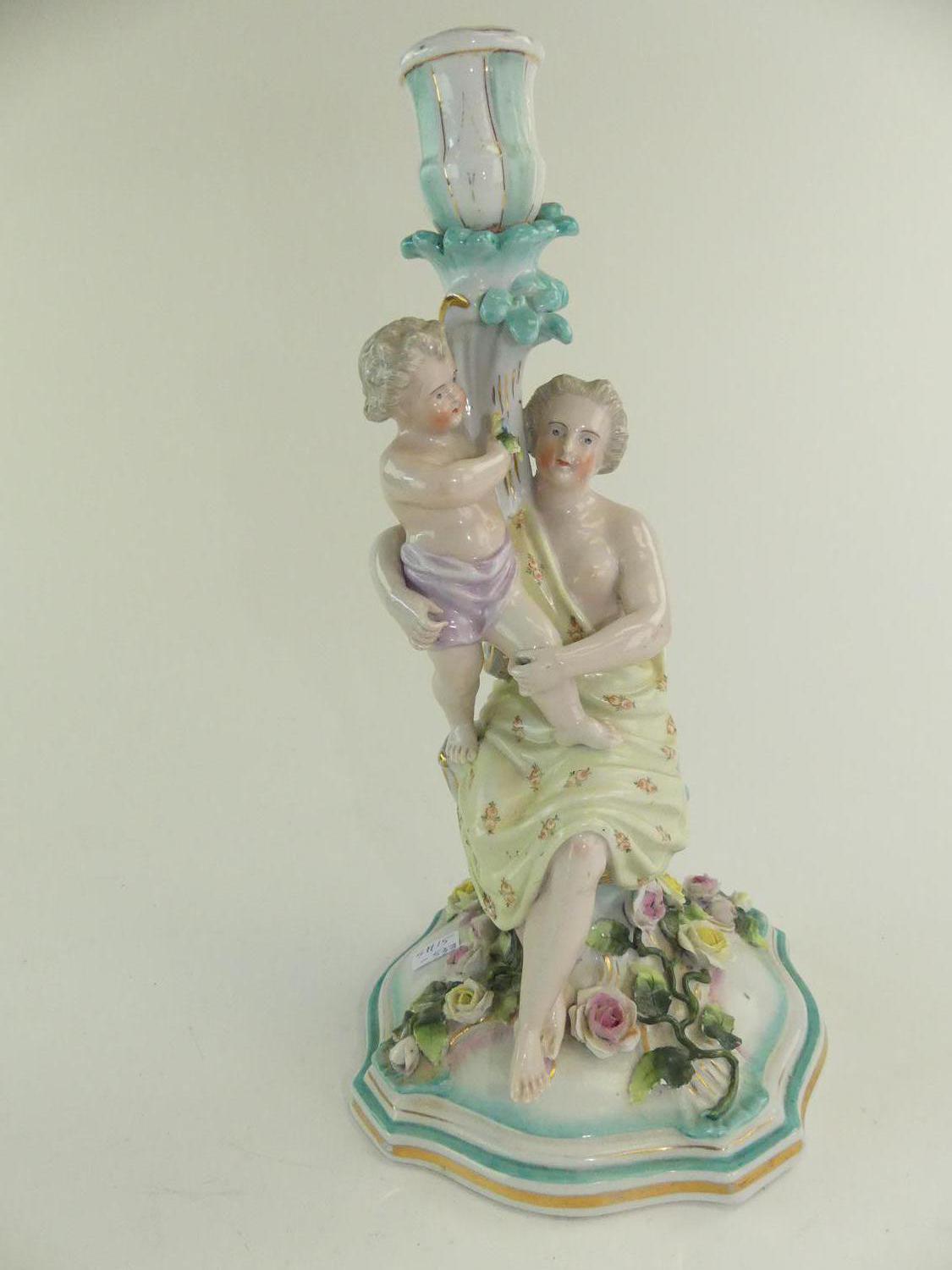 dresden style porcelain figural candle stick, ht. 12 1/2"