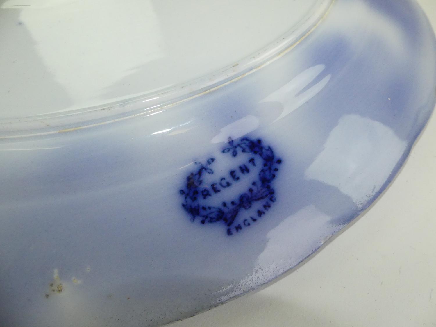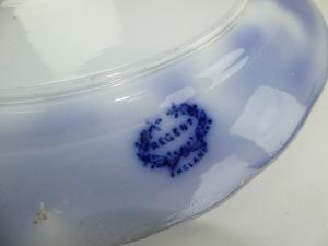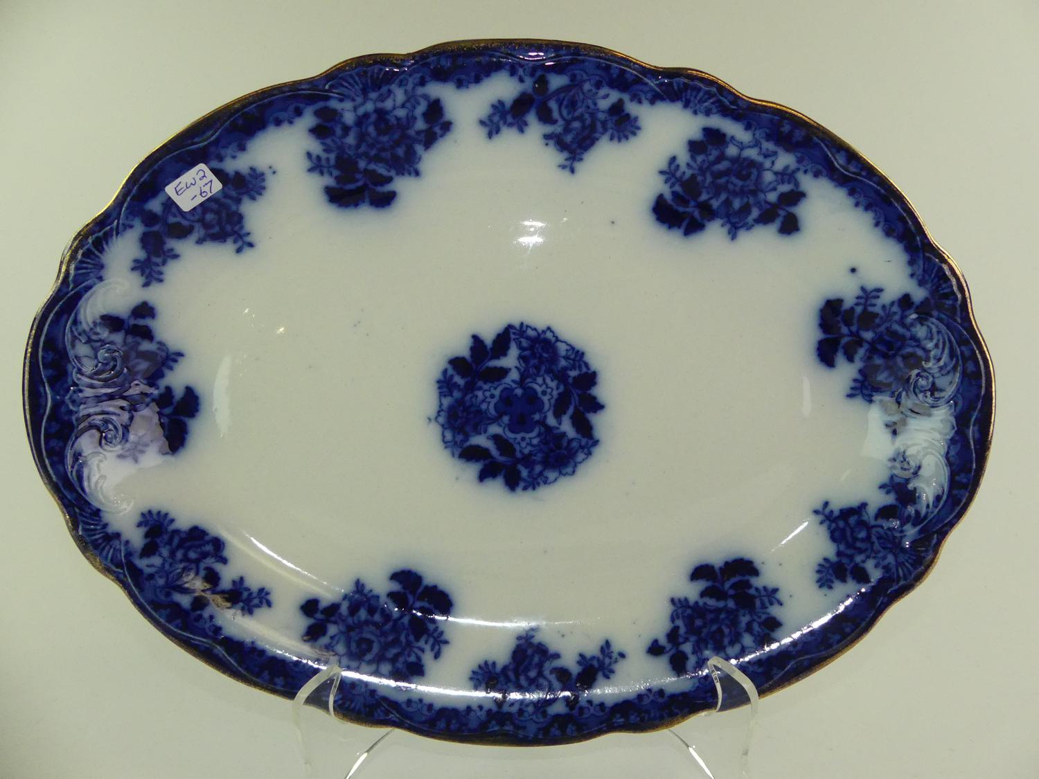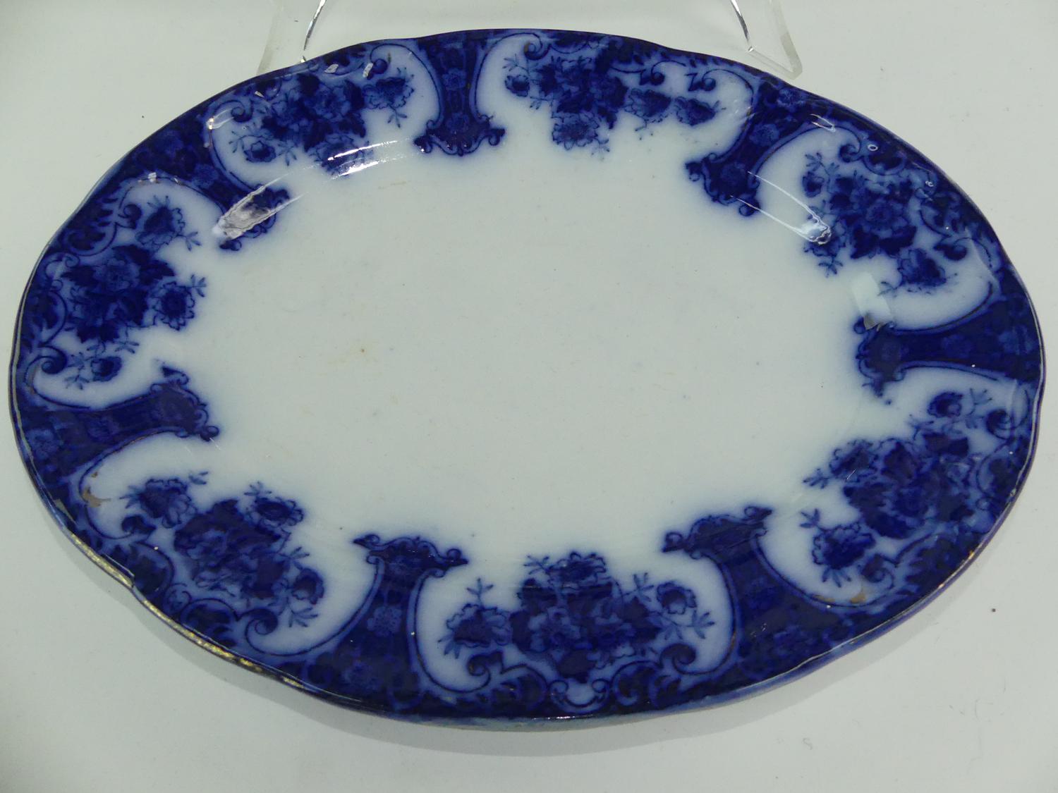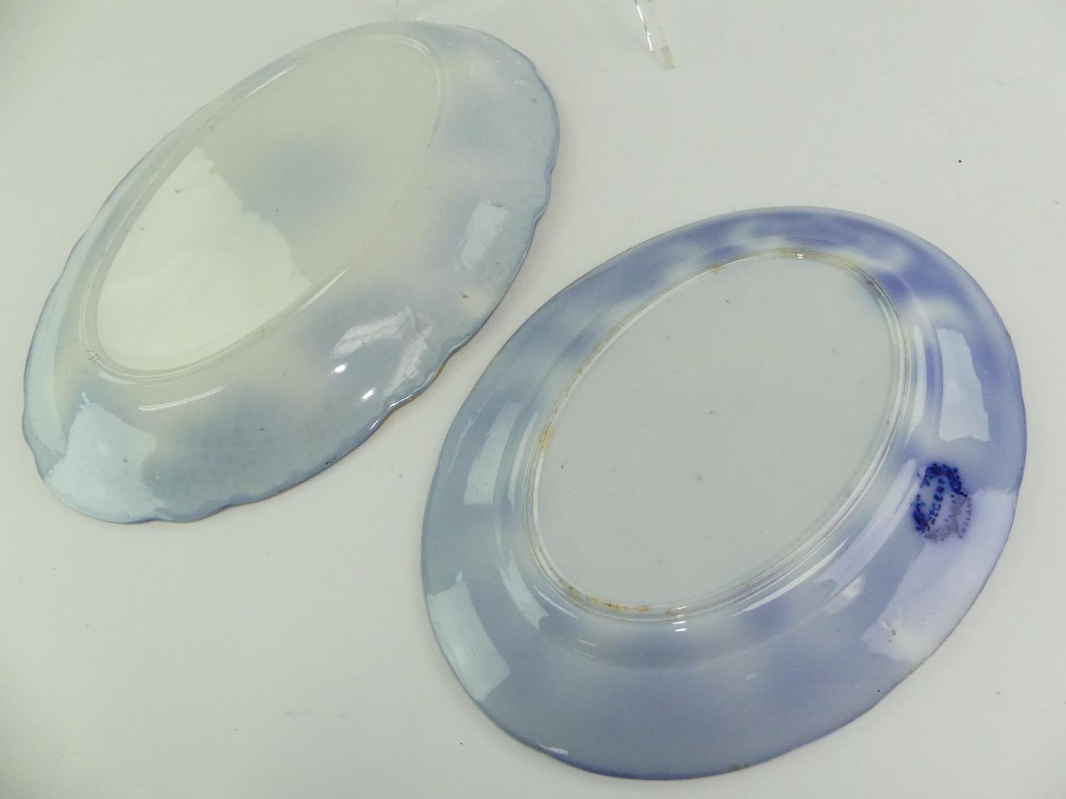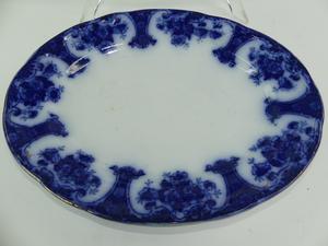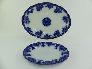 two antique flow blue platters, 16" and smaller
