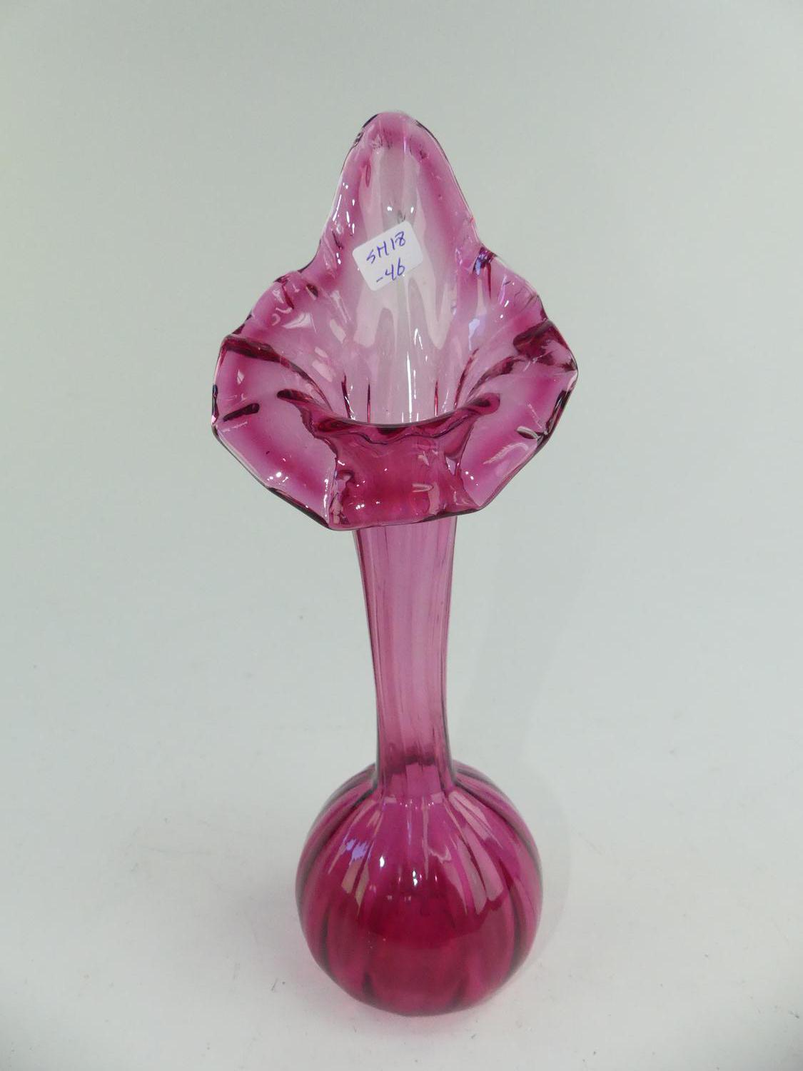 cranberry glass spill vase, ht. 10"