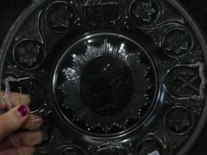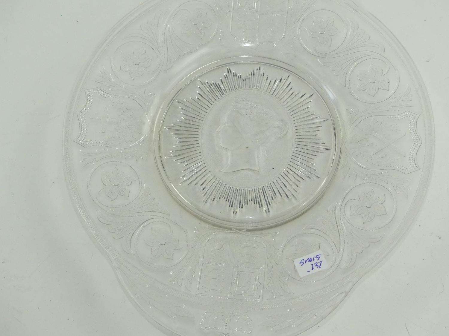 antique pressed glass queen victoria golden jubilee plate, dia. 11 1/2"