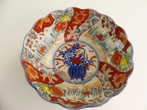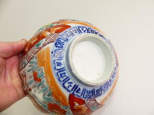 japanese hand painted bowl, early 20th century, 3 1/4" x 7 1/4" - chip