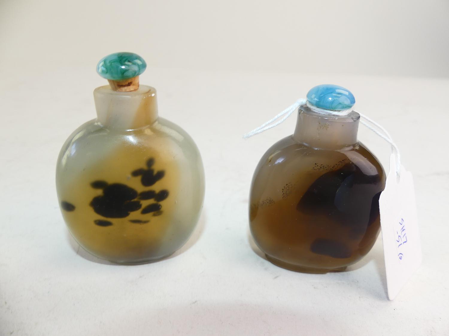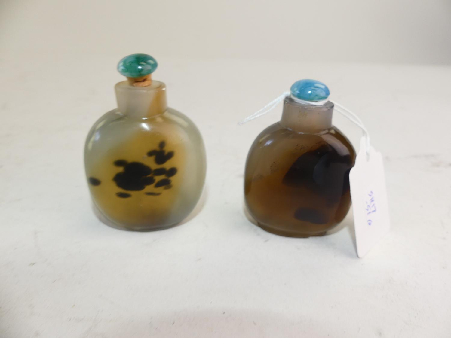pair of chinese agate snuff bottles, ht 2 1/2"