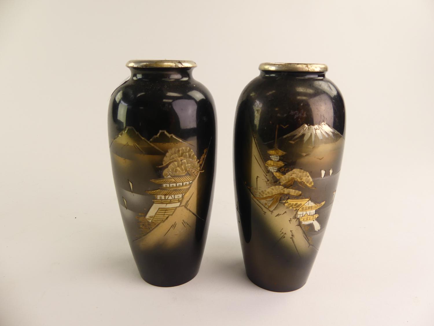japanese niello vases, ht. 6 1/2"
