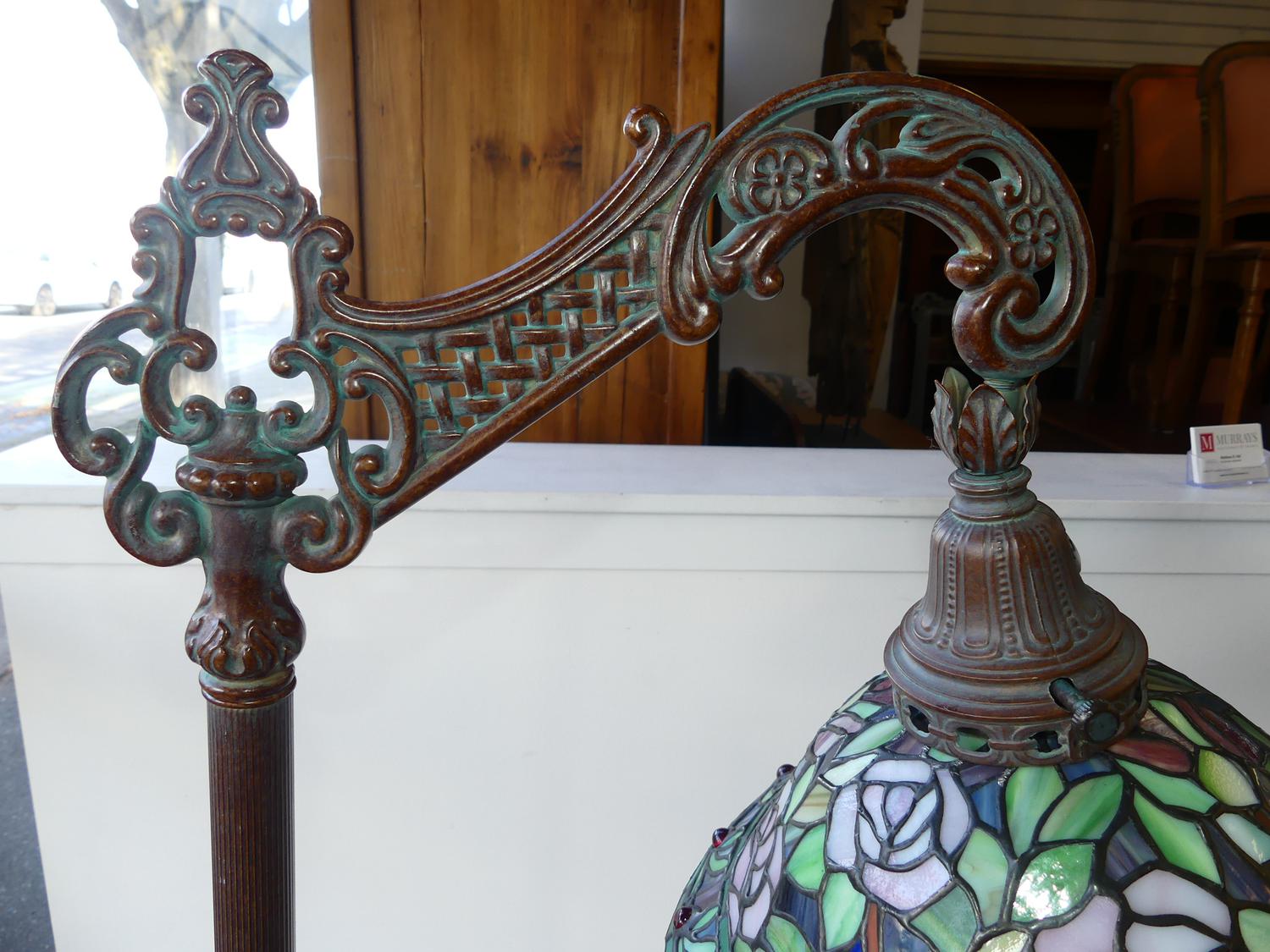 tiffany style bridge lamp, ht. 57"