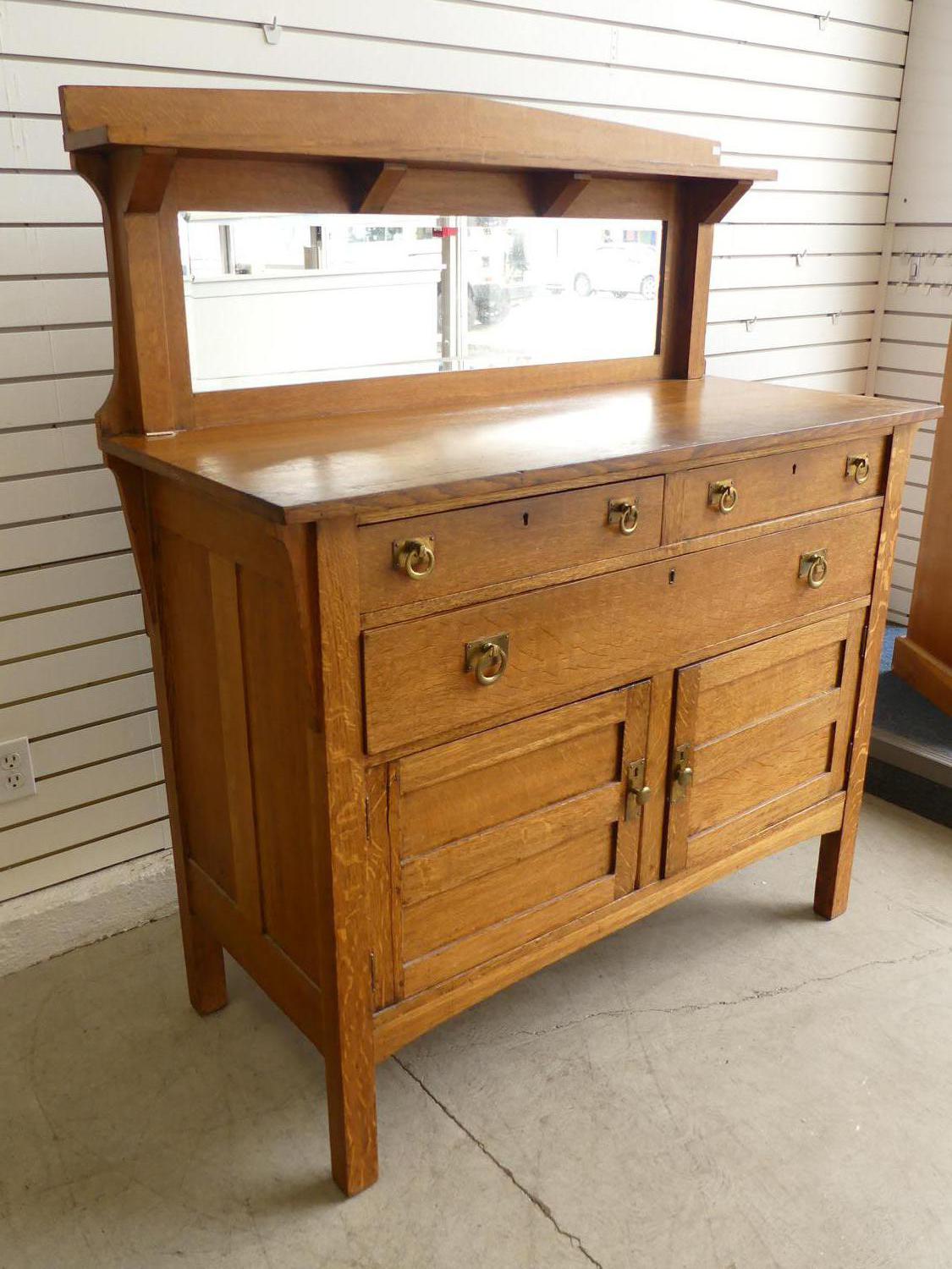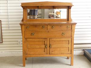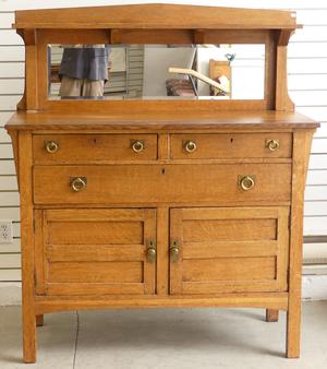 arts & crafts oak sideboard, 56" x 48" x 21"