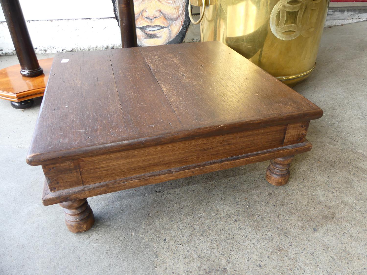side table, brass jardinere and footstool