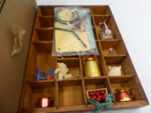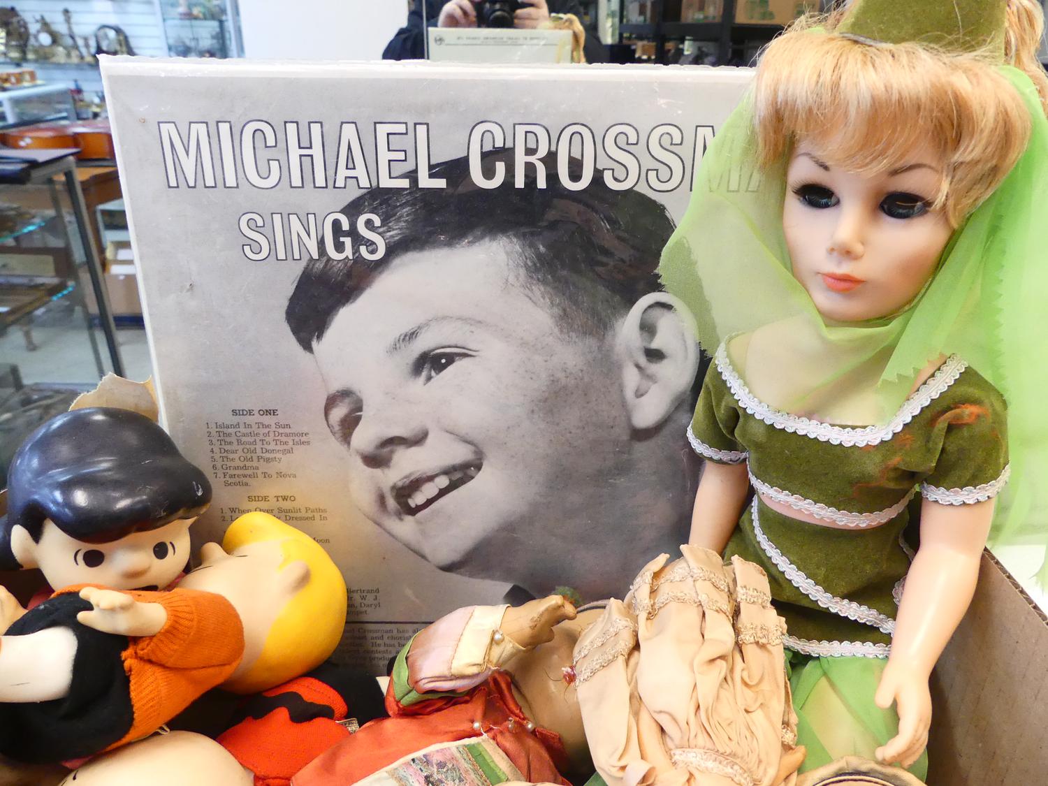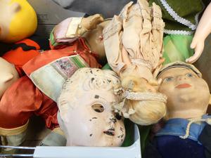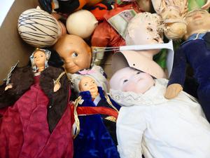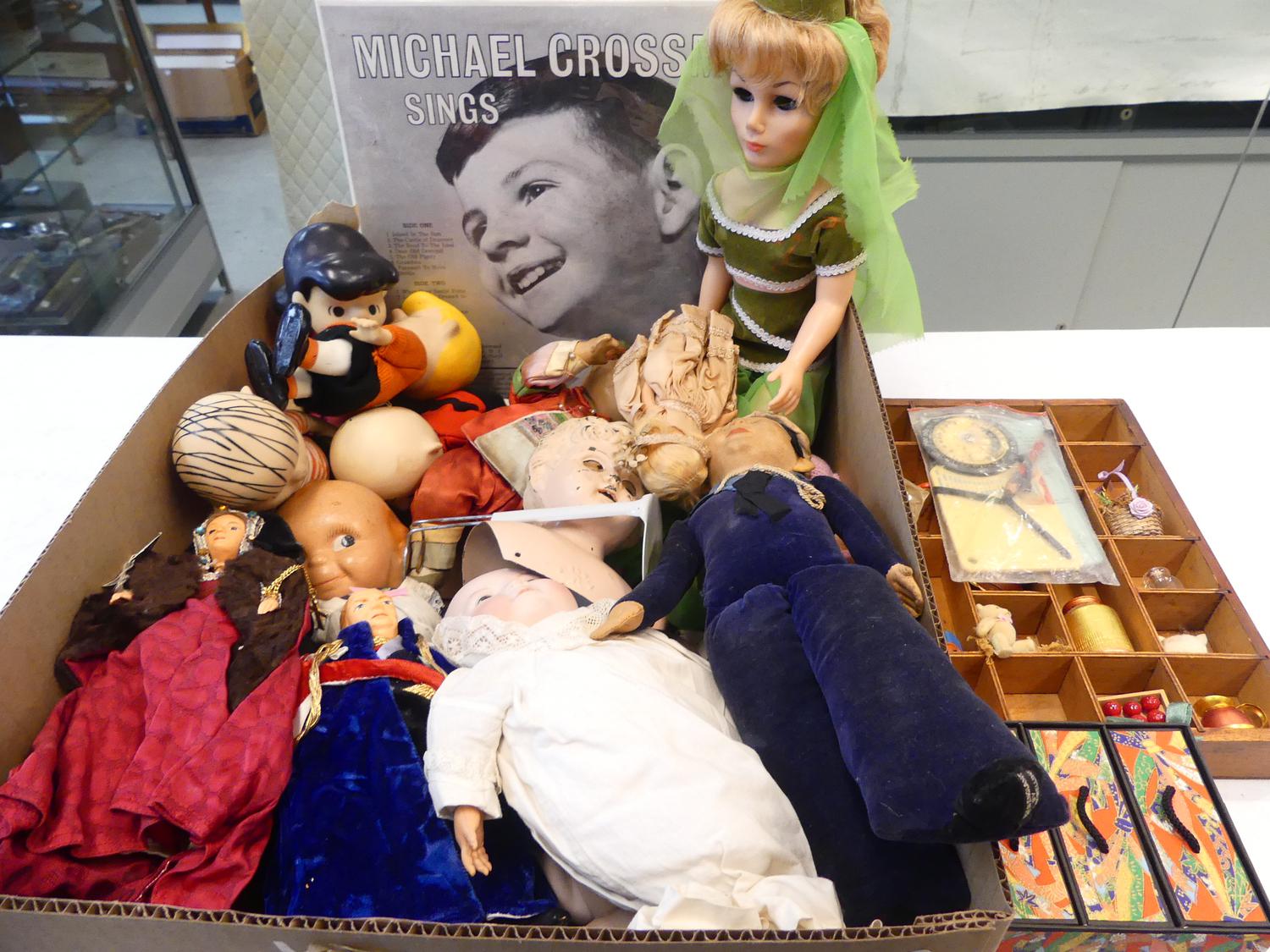 box of dolls and toys