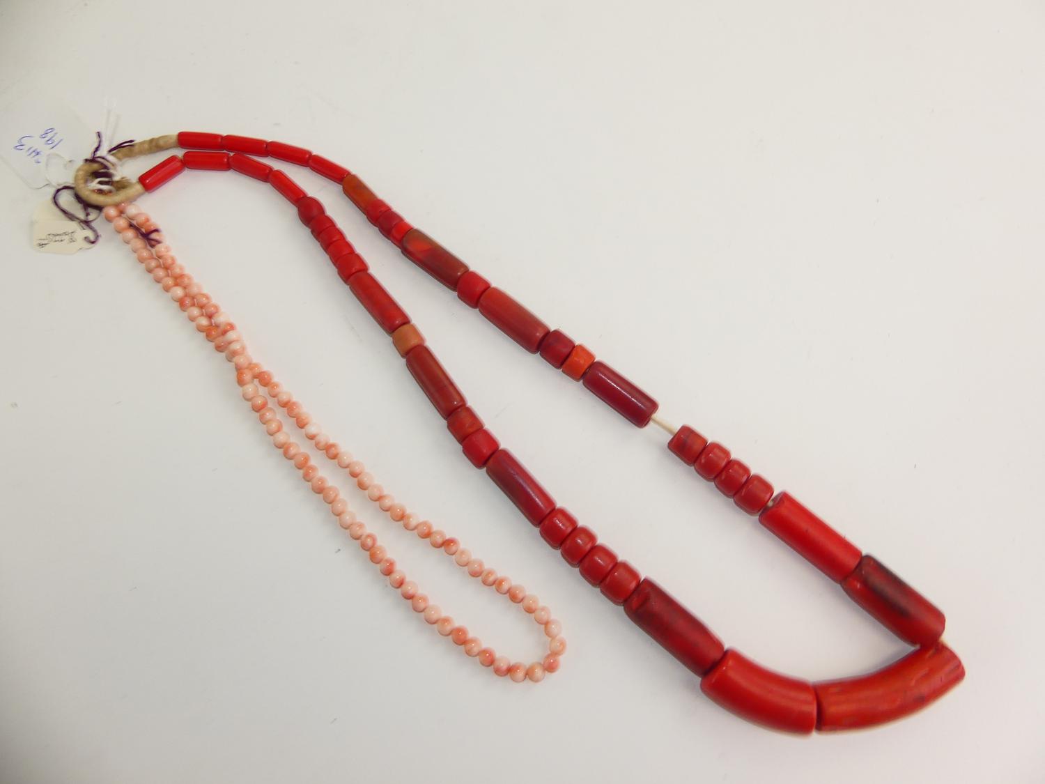 tibetian sherpa coral(glass) necklace, with angelskin coral bead necklace
