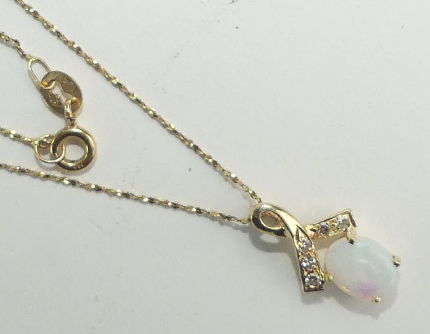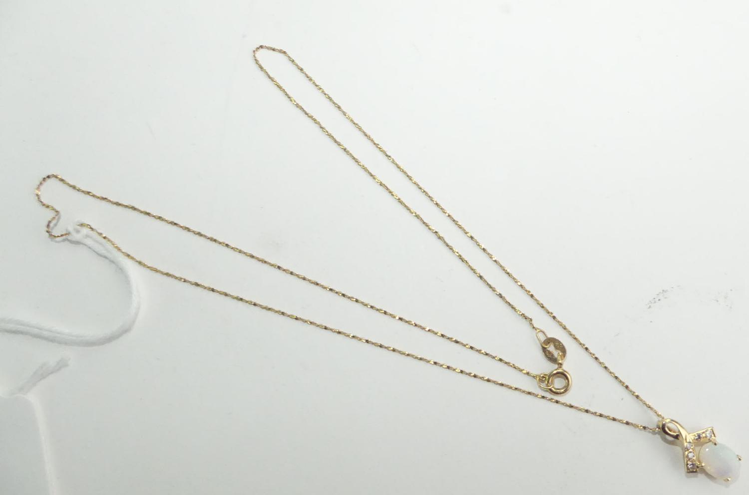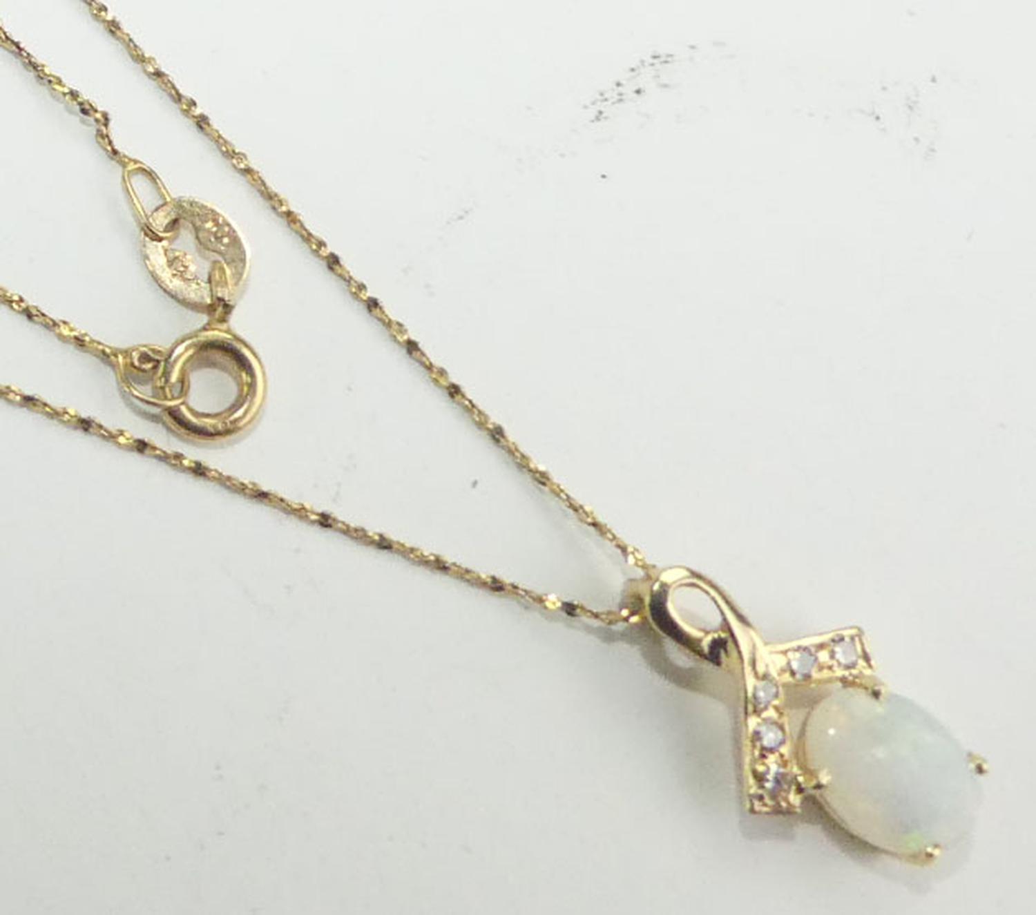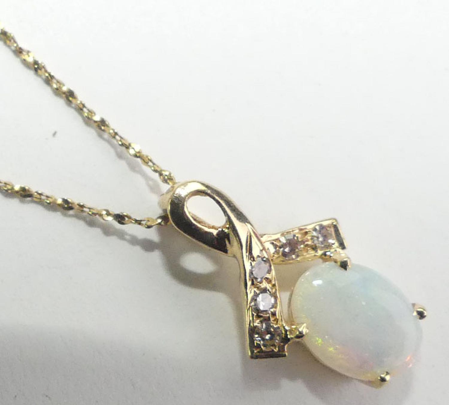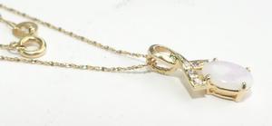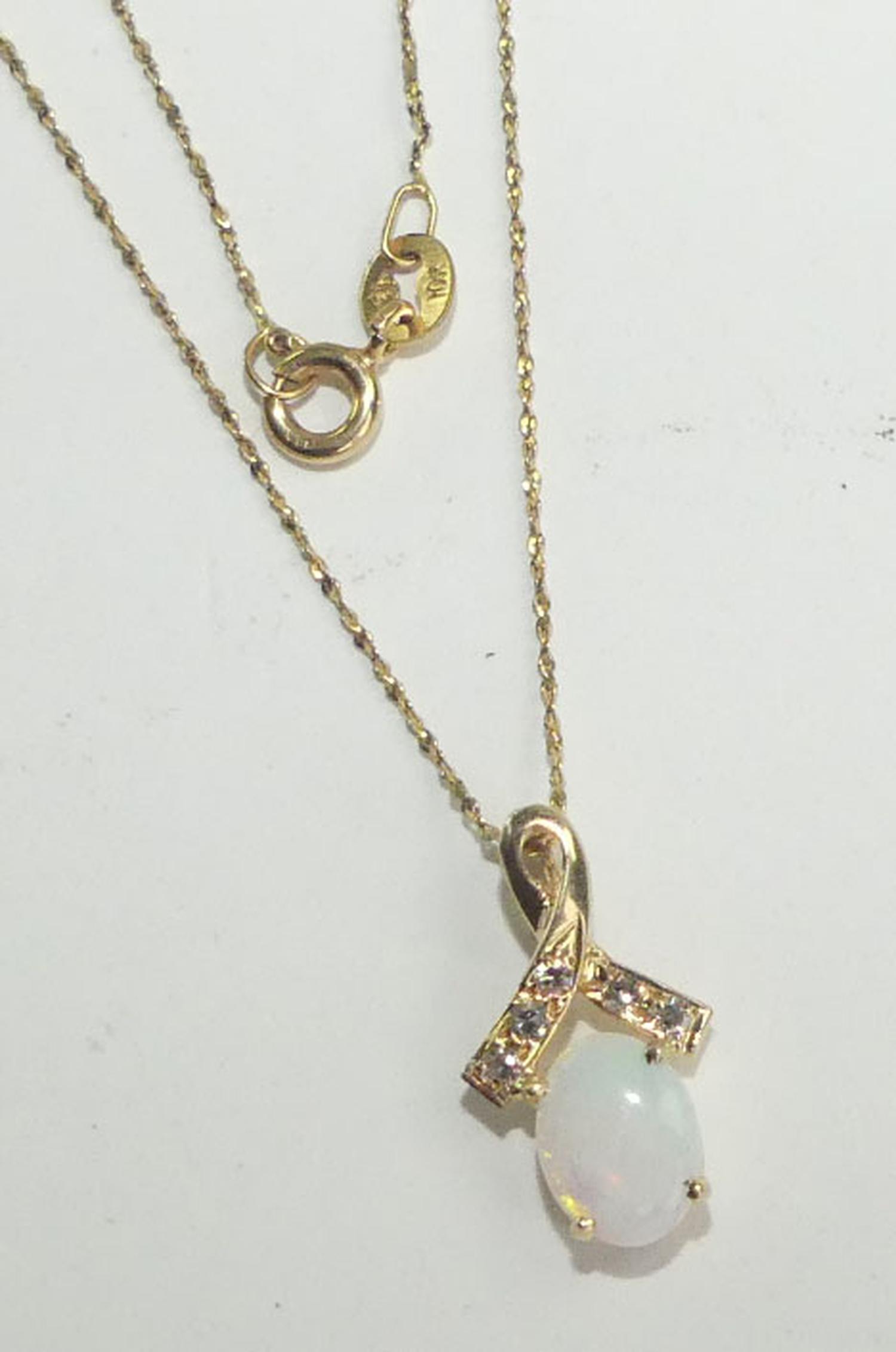 14k opal diamond pendant on a 10k gold chain, total weiging approx 1.9grams, 18" in length