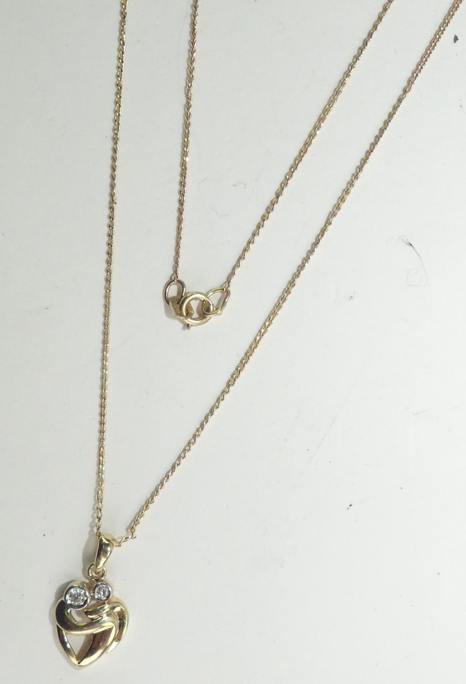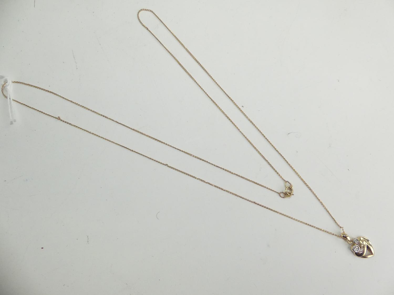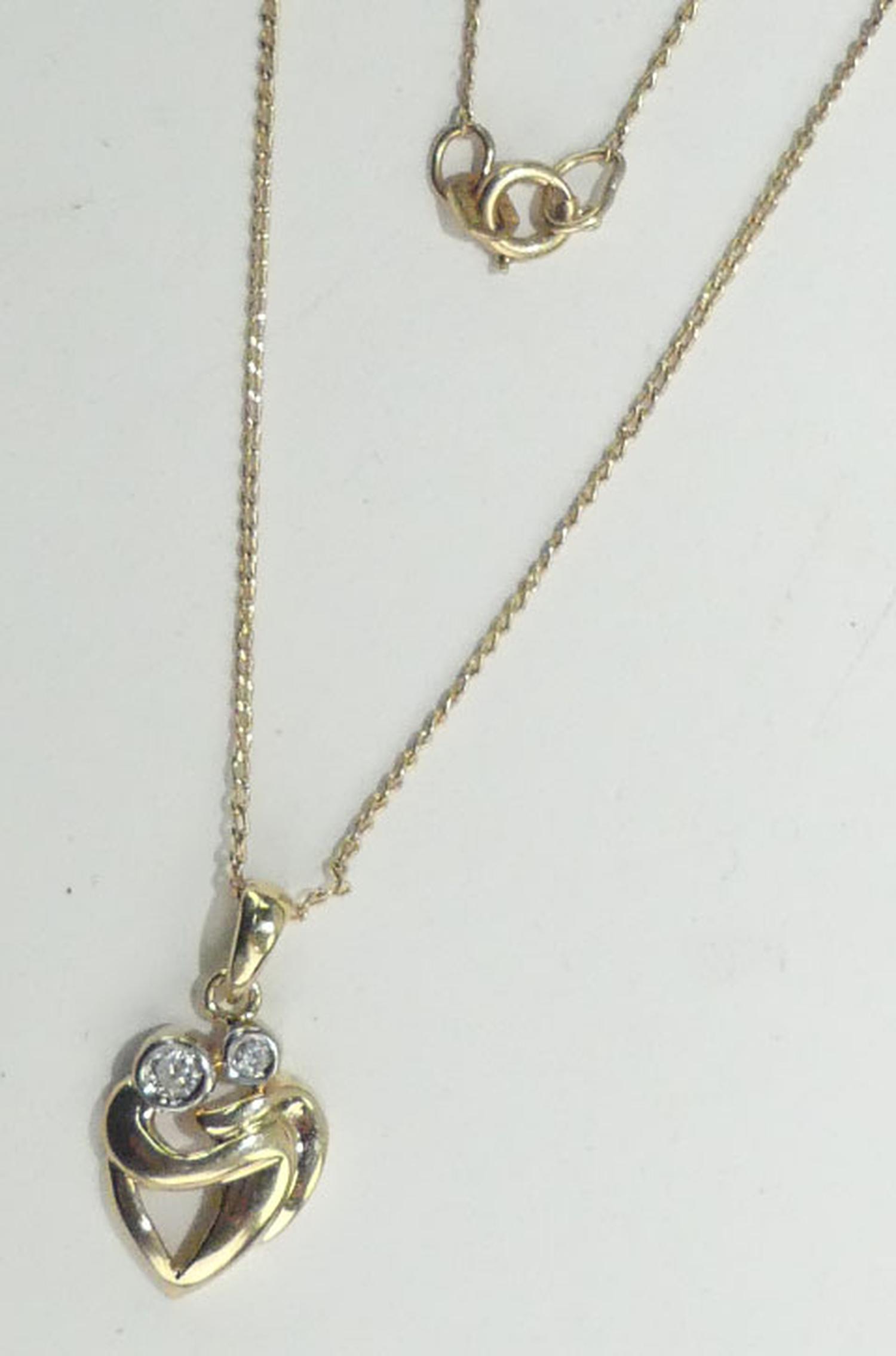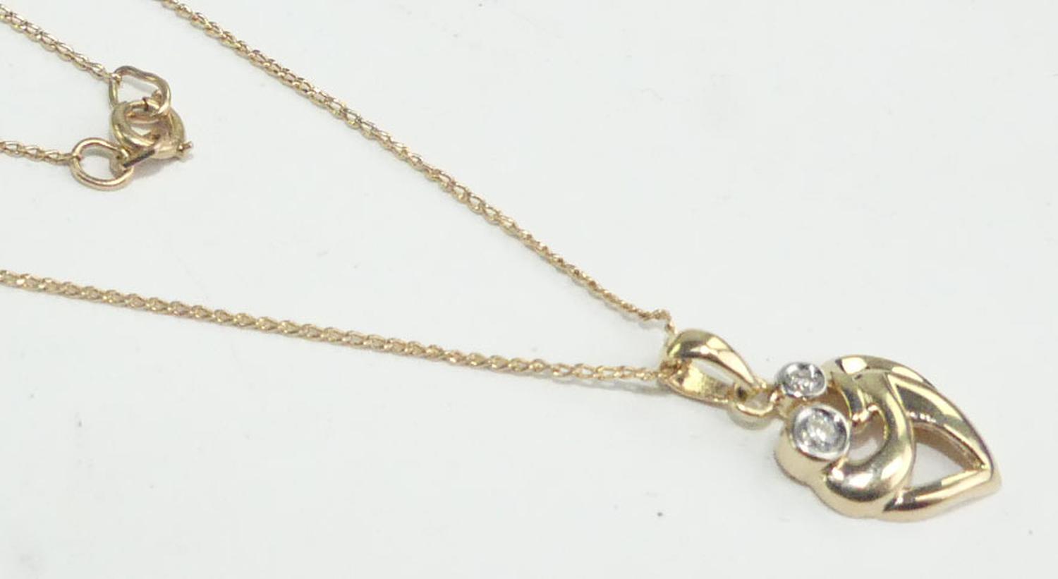 10k yellow gold diamond pendant necklace, weighing approx 3.2 grams, chain 27"