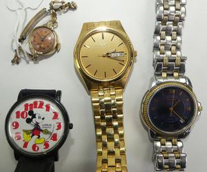 gents tissot bellini and seiko watch, with mickey and ladies mechainical watch