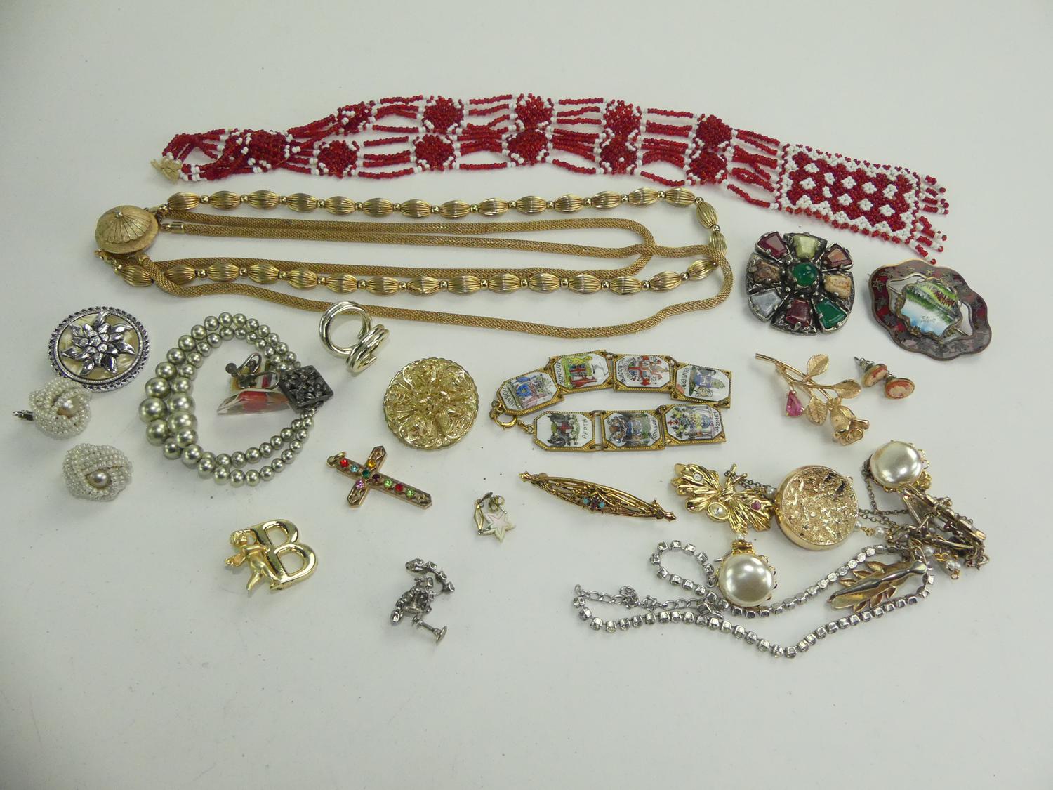 lot of vintage costume jewelry including enamel brooch and bracelet