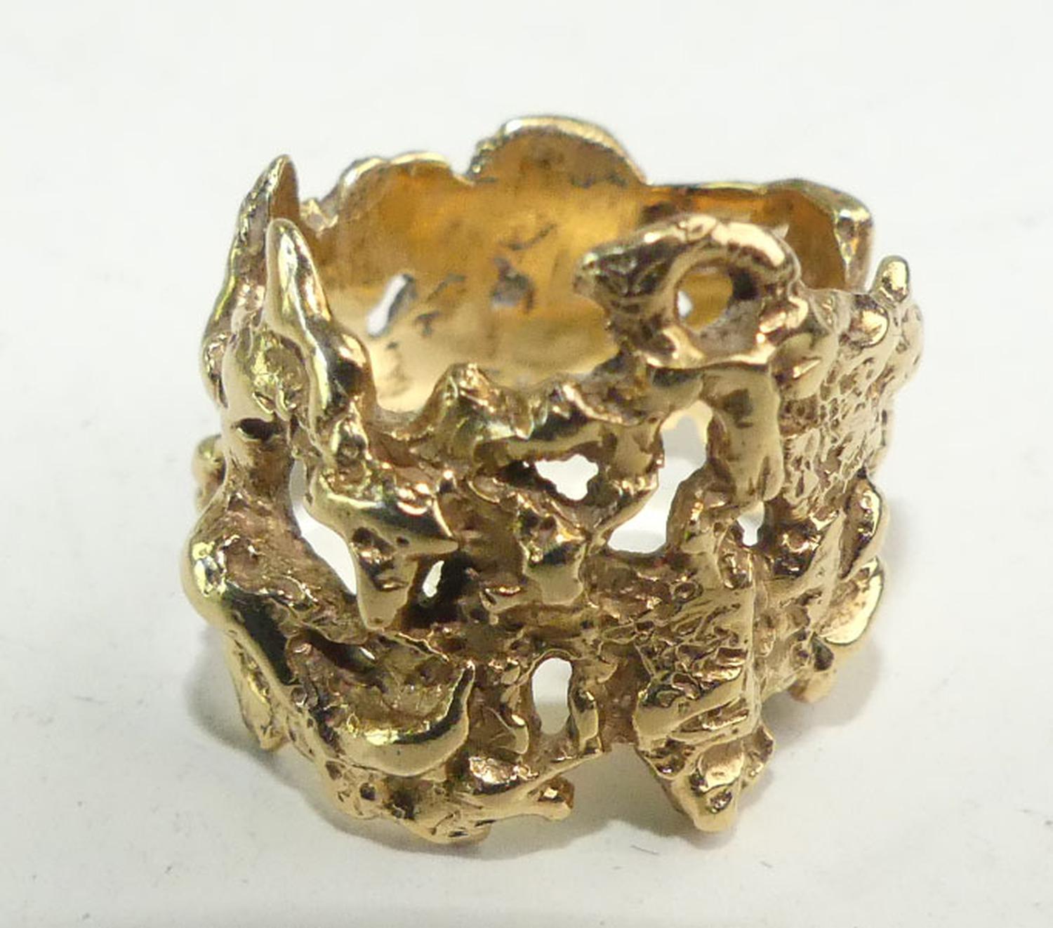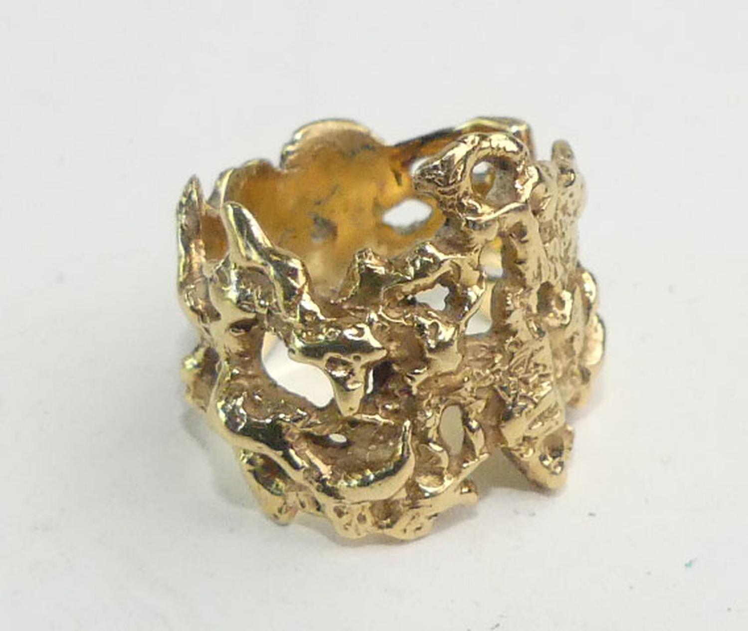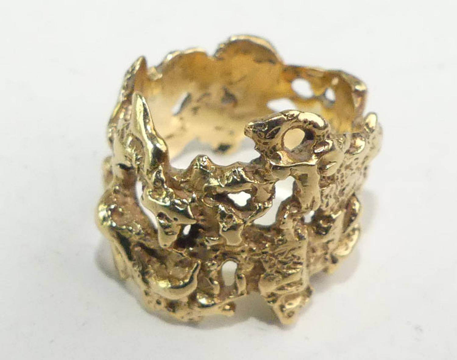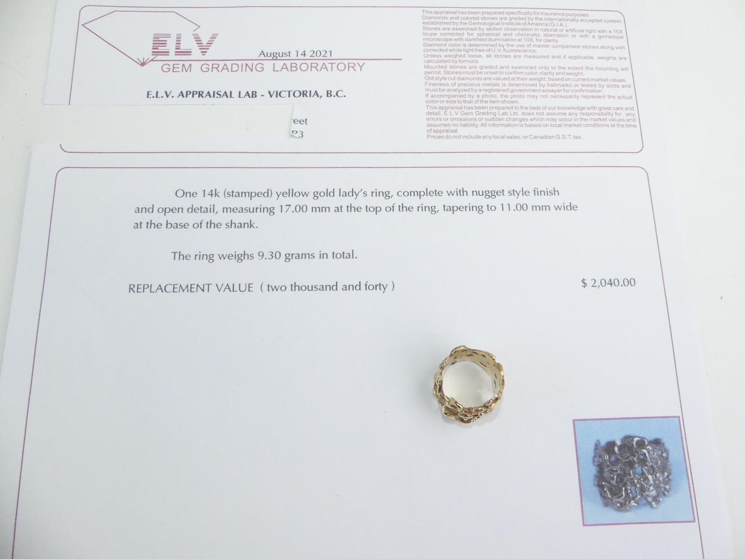 14k yellow gold nugget ring, size 5 3/4, with appraisal, 9.3 grams