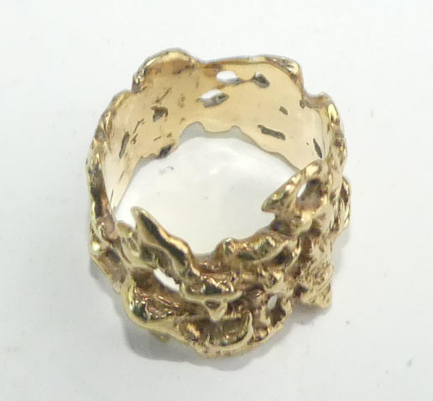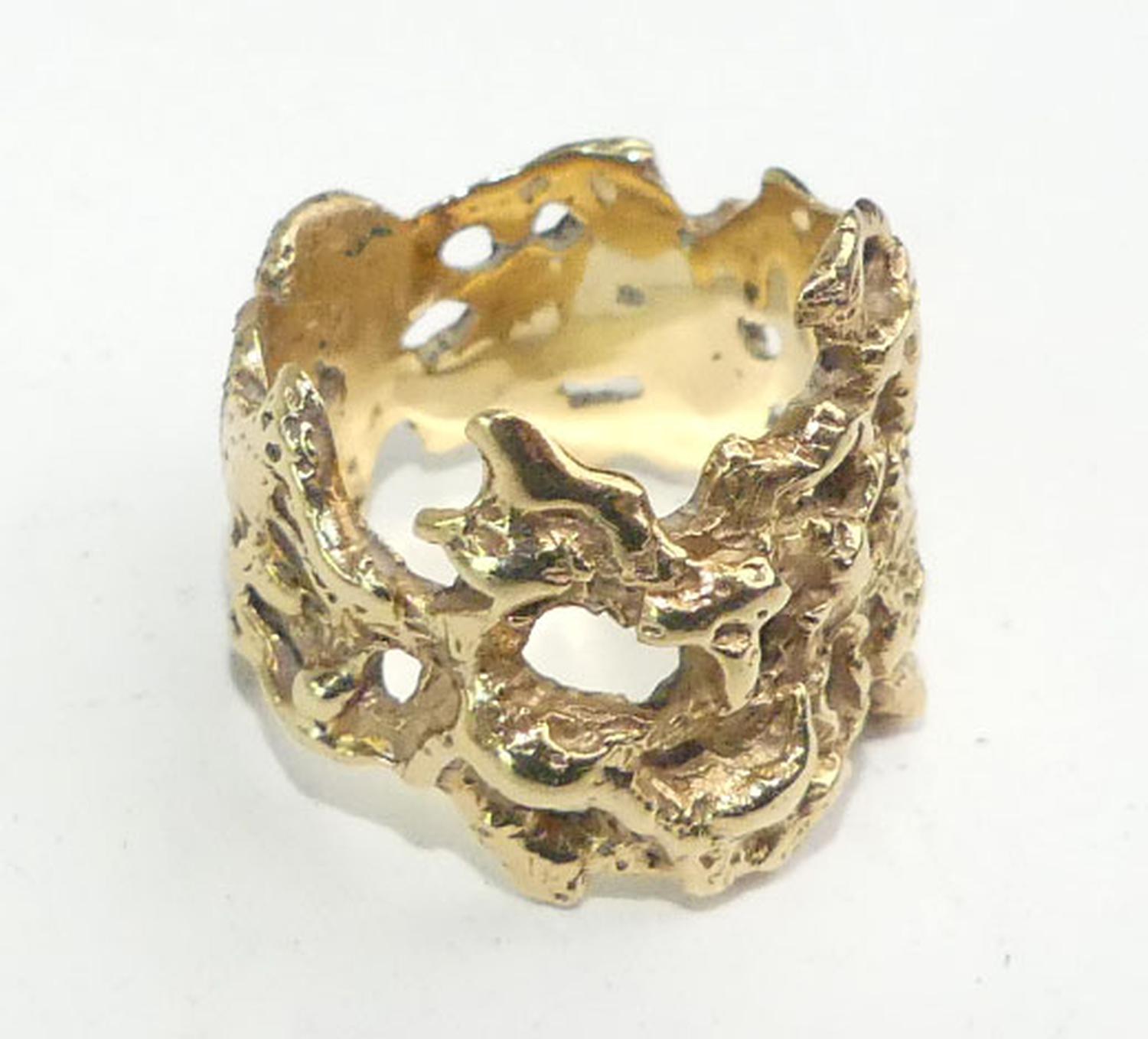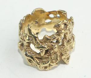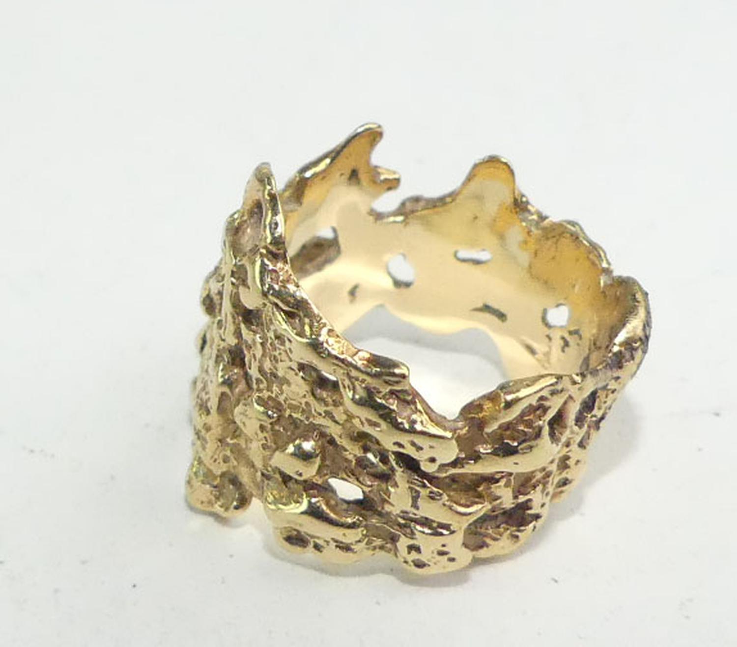 14k yellow gold nugget ring, size 5 3/4, with appraisal, 9.3 grams