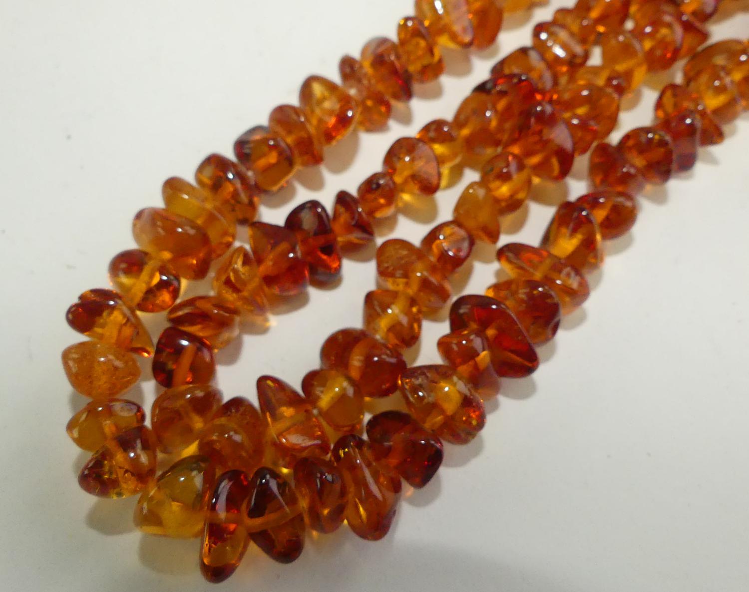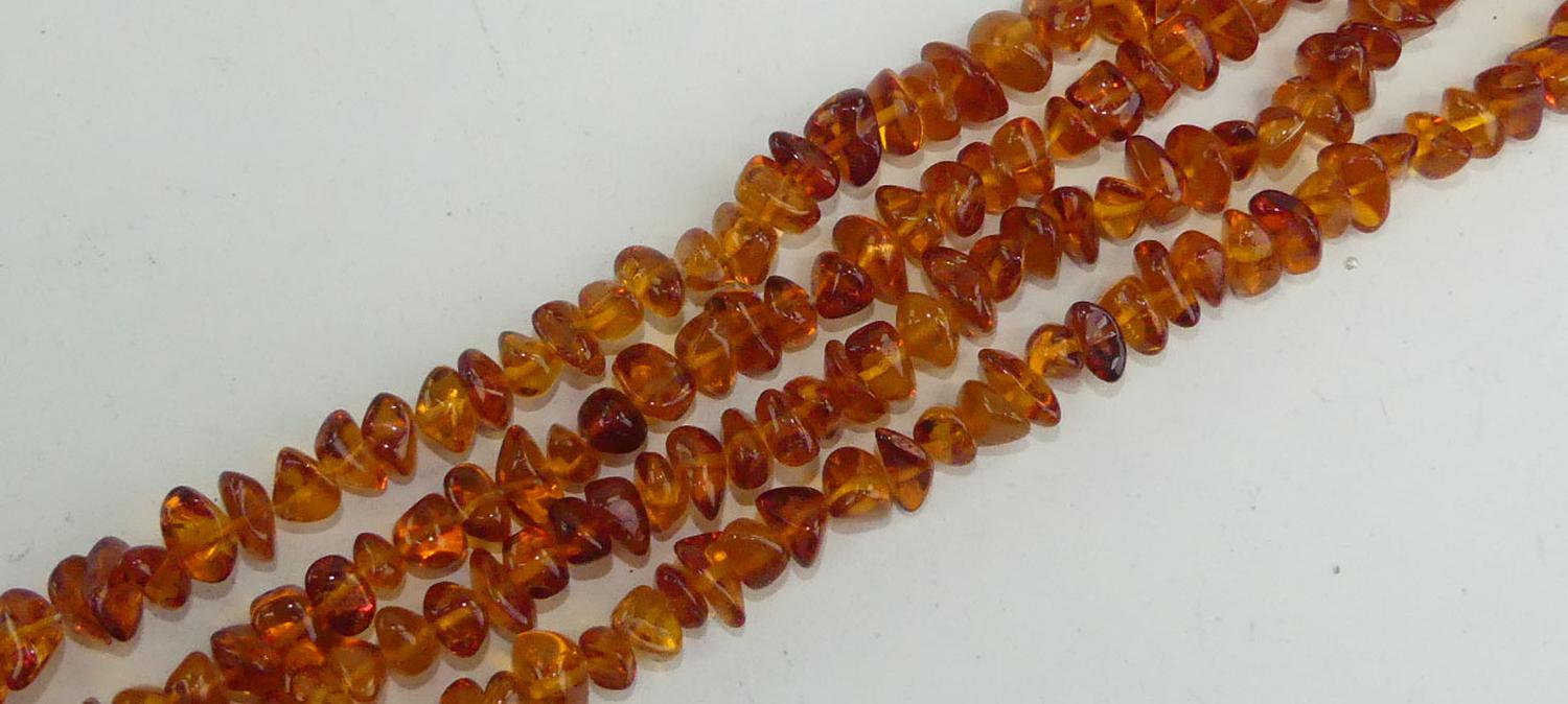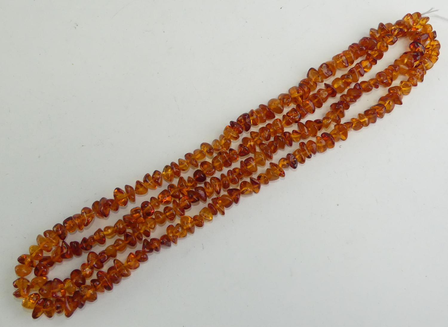 opera length strand of tumbled amber, length 26"