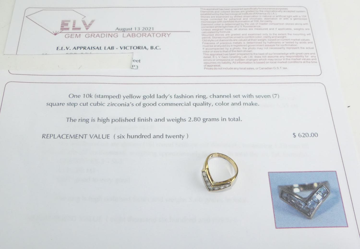 10k yellow gold cubic zirconia ring, size 5 3/4, with appraisal, 2.8 grams
