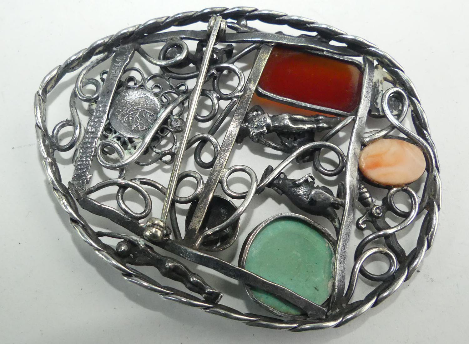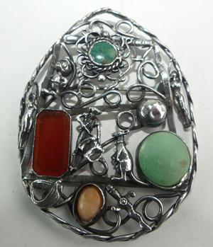 artist handmade sterling silver pendant mounted with gems, 3" x 2 1/4"