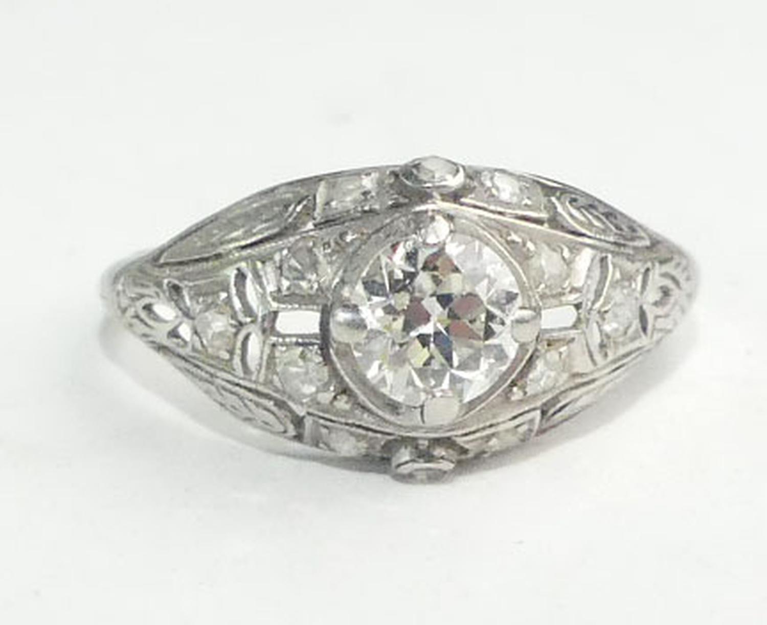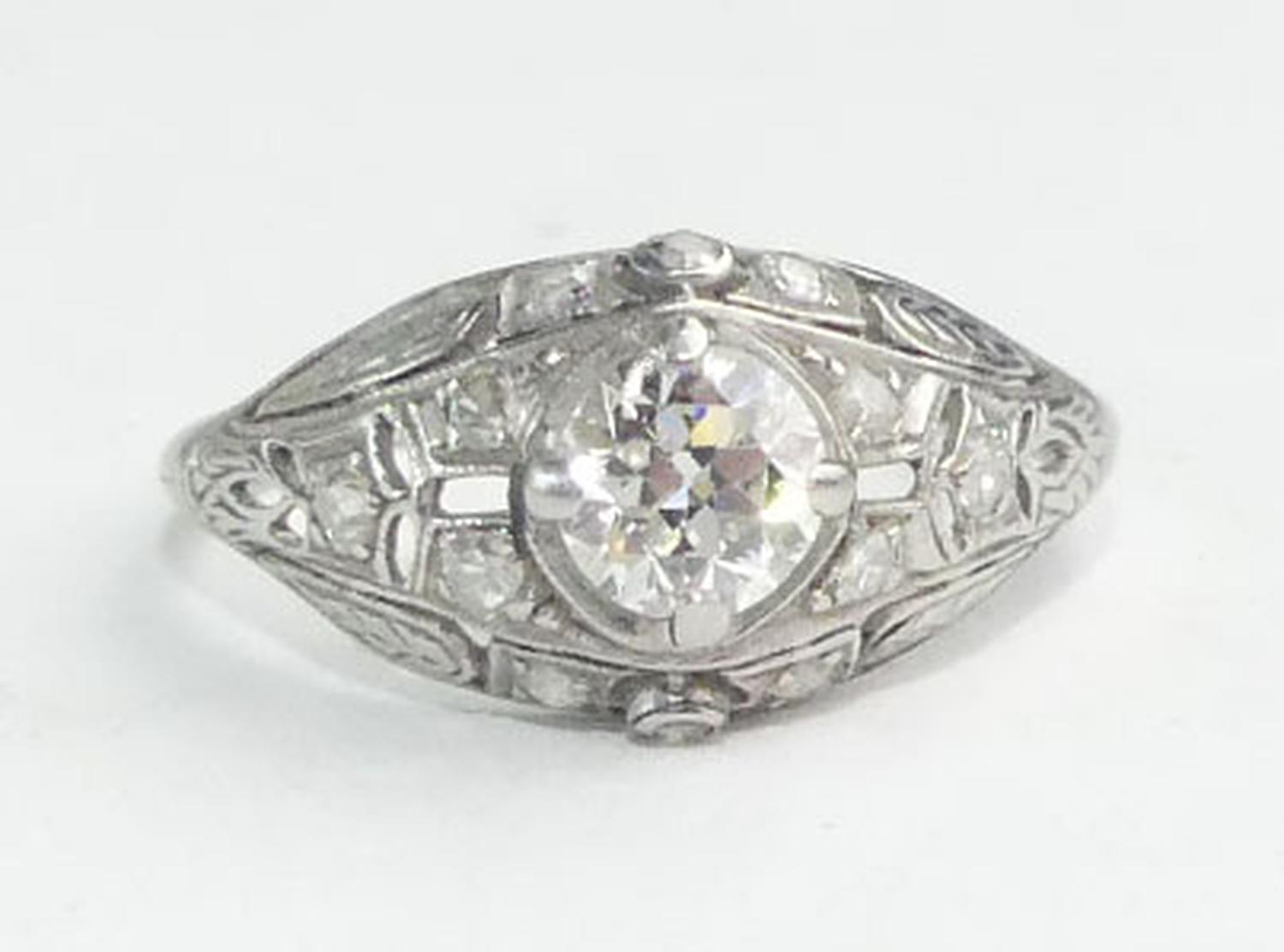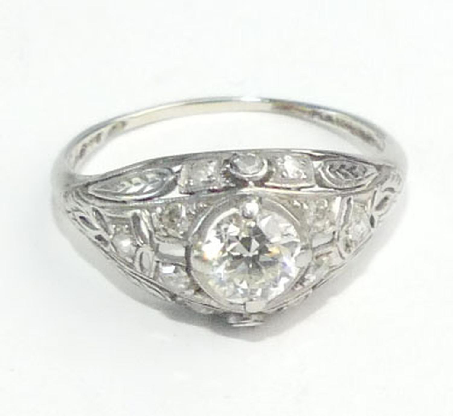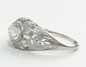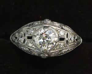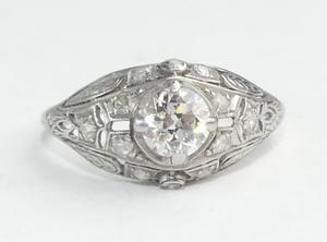 french art deco platinum diamond (.60cts) ring, size 7, w/a 2.8 grams