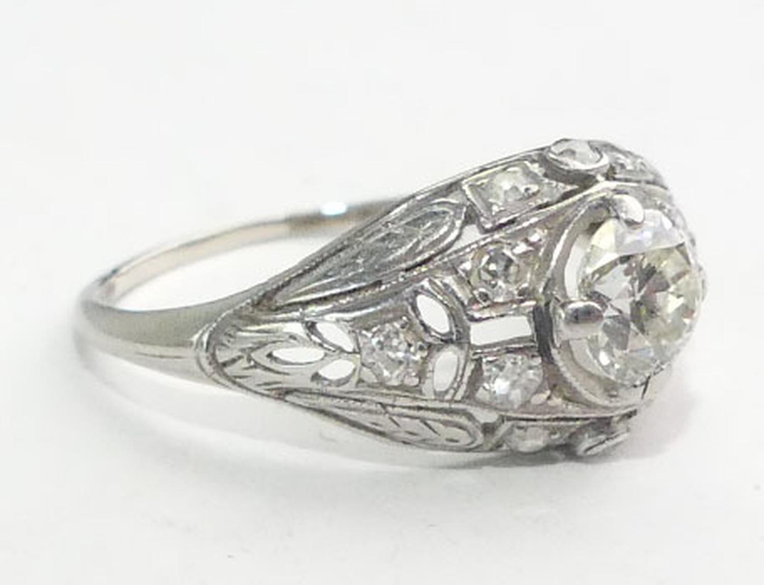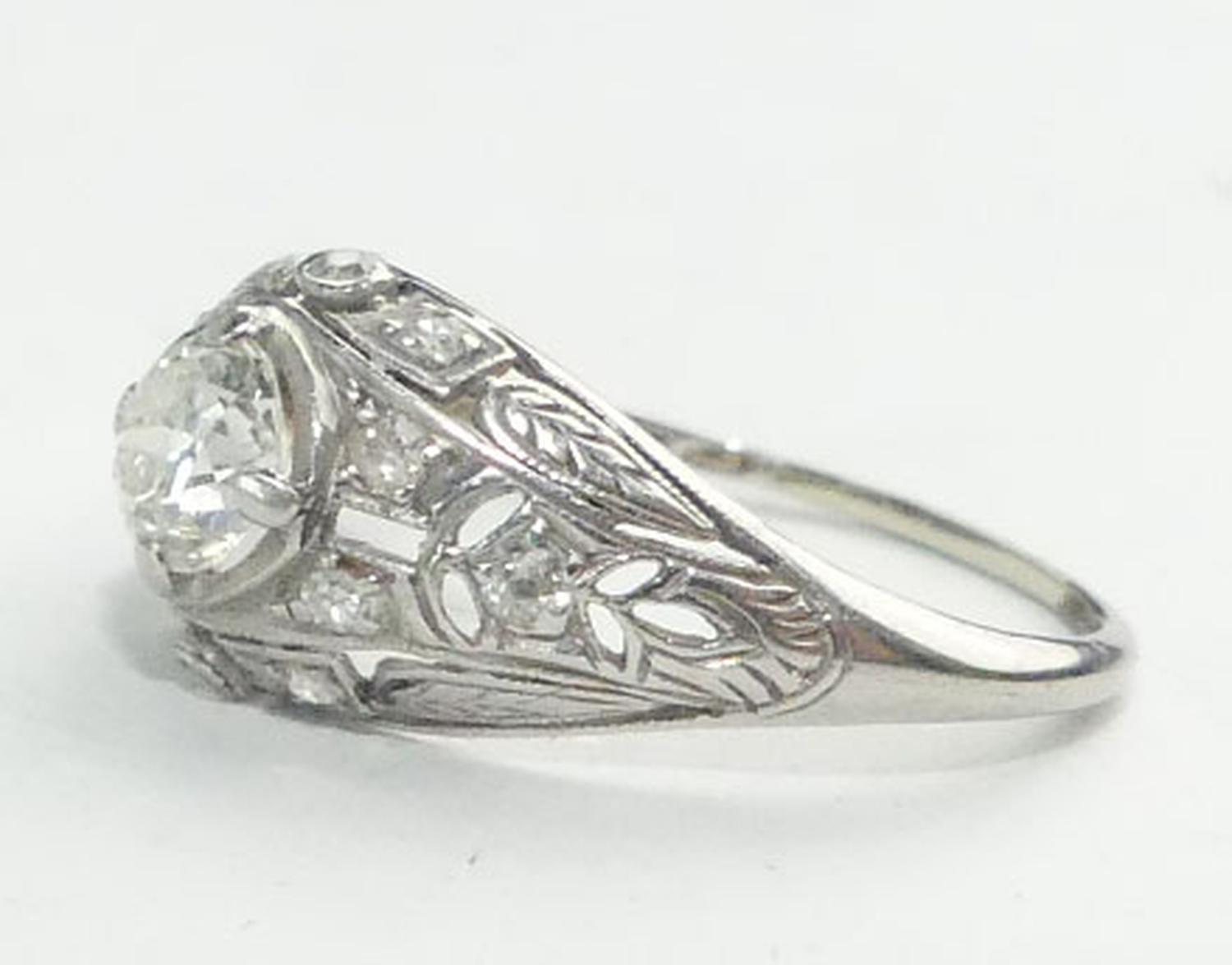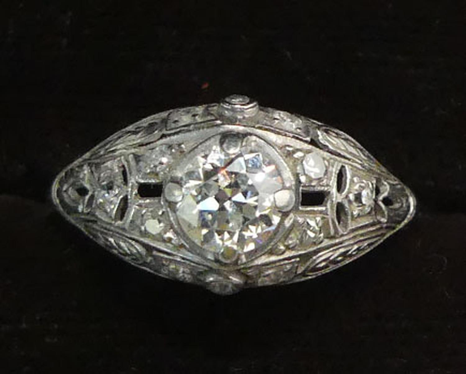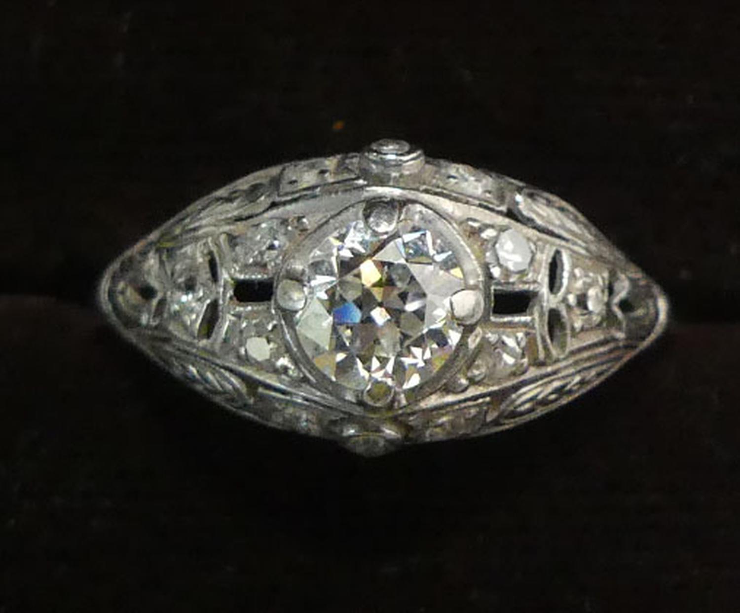 french art deco platinum diamond (.60cts) ring, size 7, w/a 2.8 grams