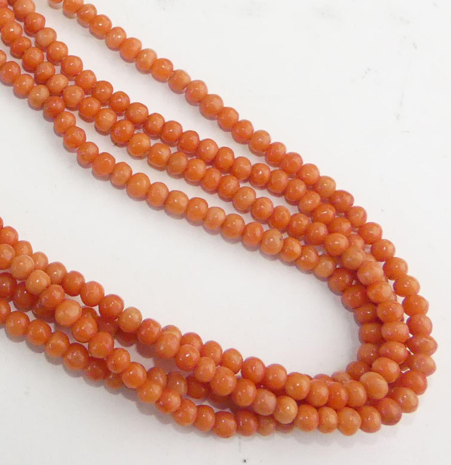 antique four strand coral necklace, length 15"