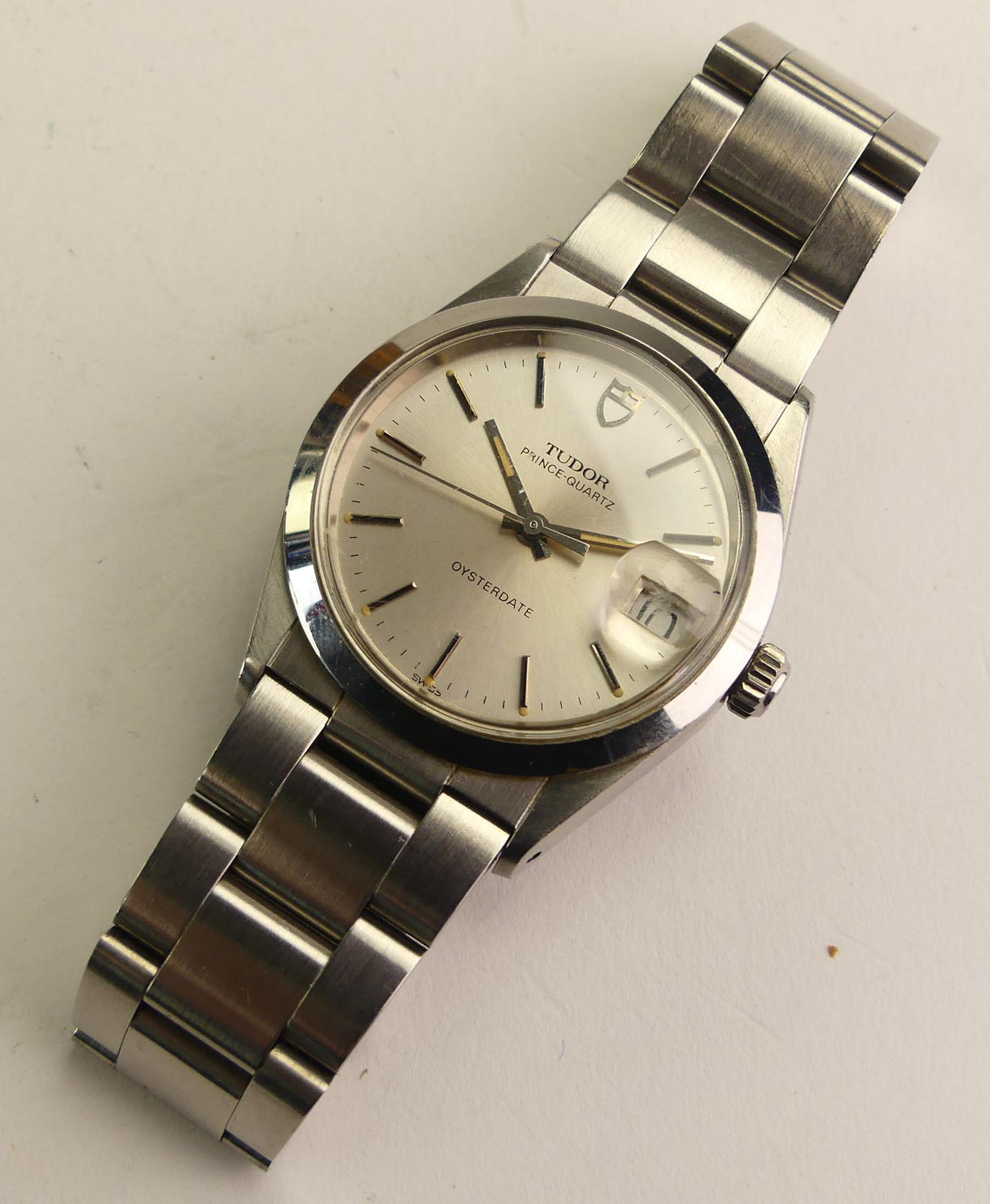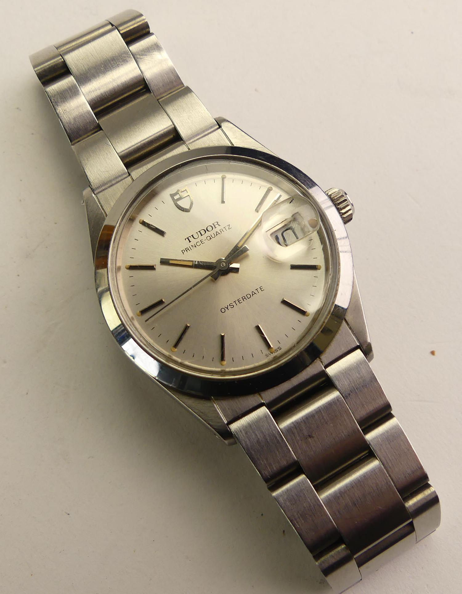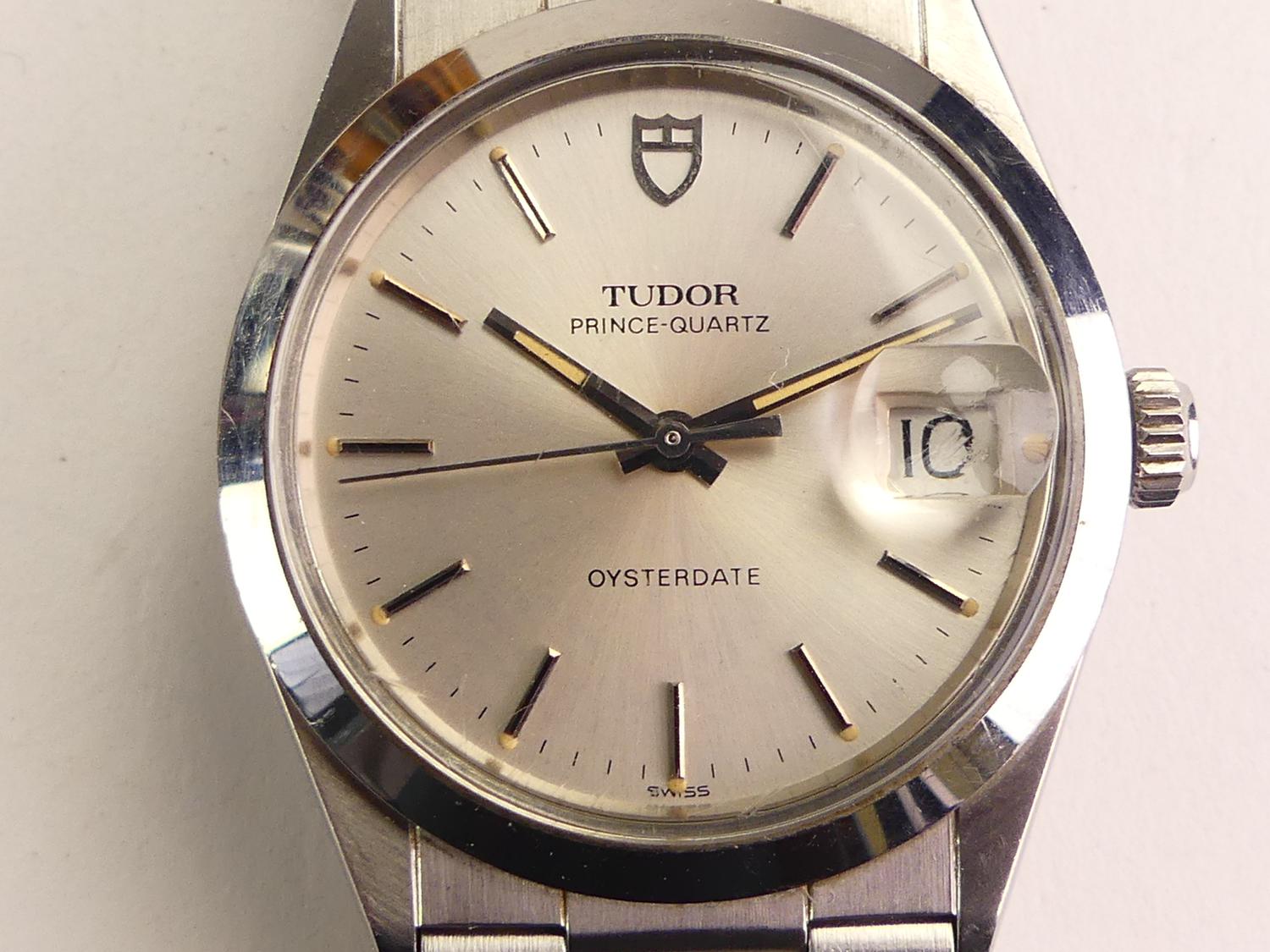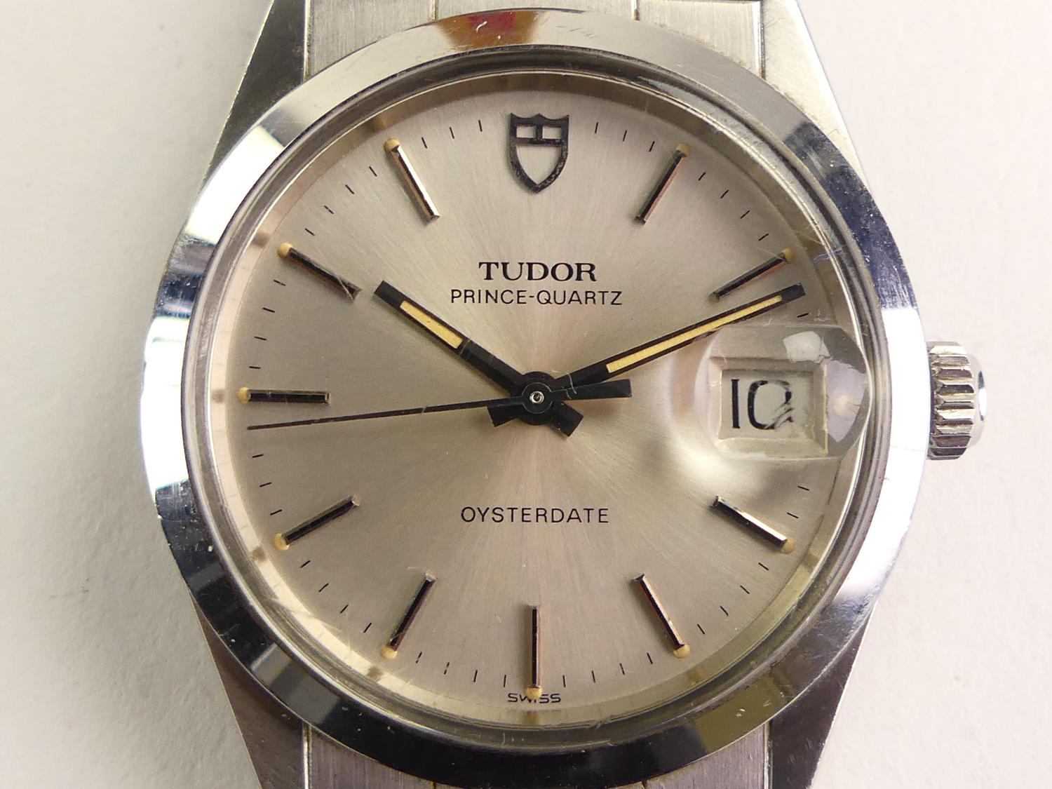 rolex tudor prince quartz oysterdate stainless steel silver dial gents watch, ref 8400