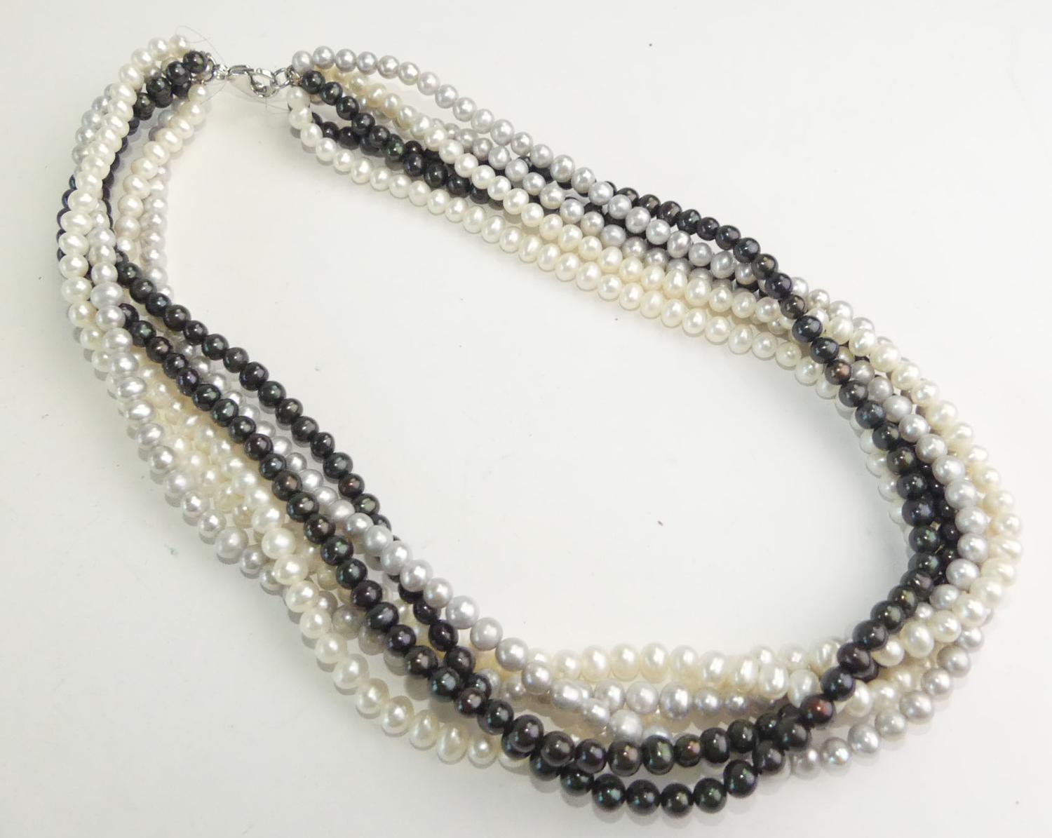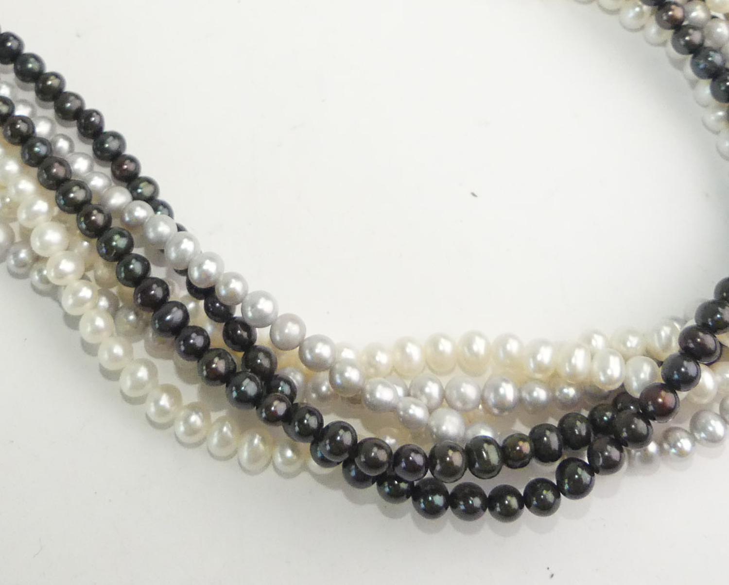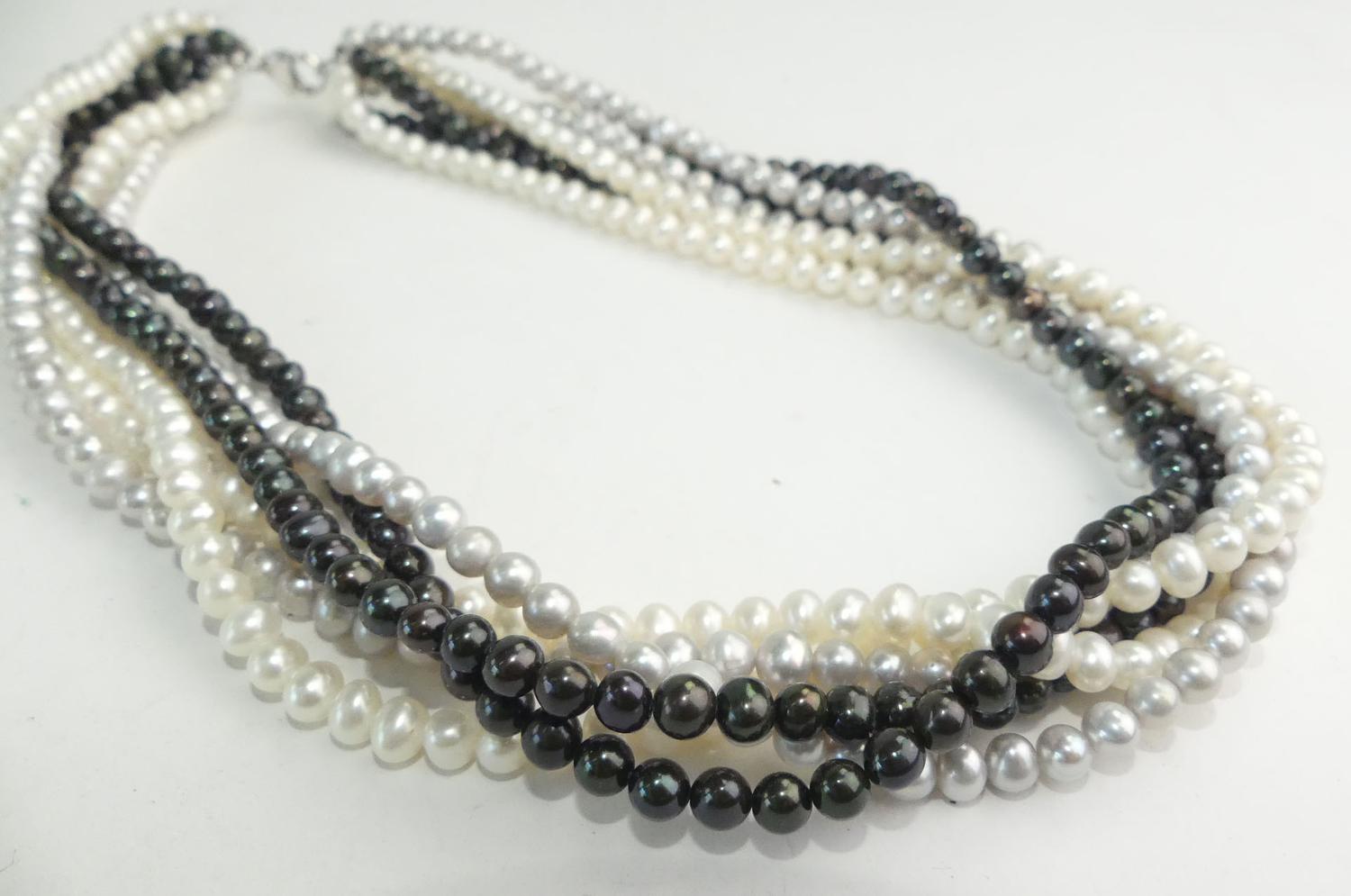 freshwater black white pearl multistrand necklace