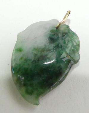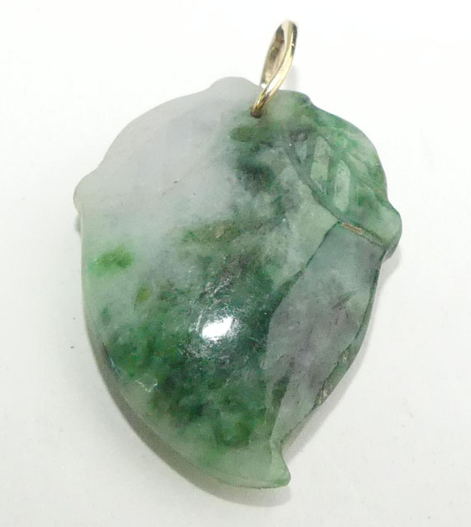 vintage moss jade pendant with 10k bail, height 1 1/4"