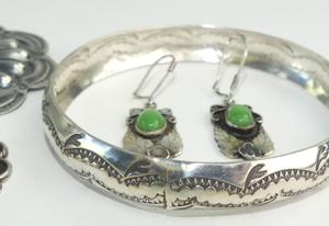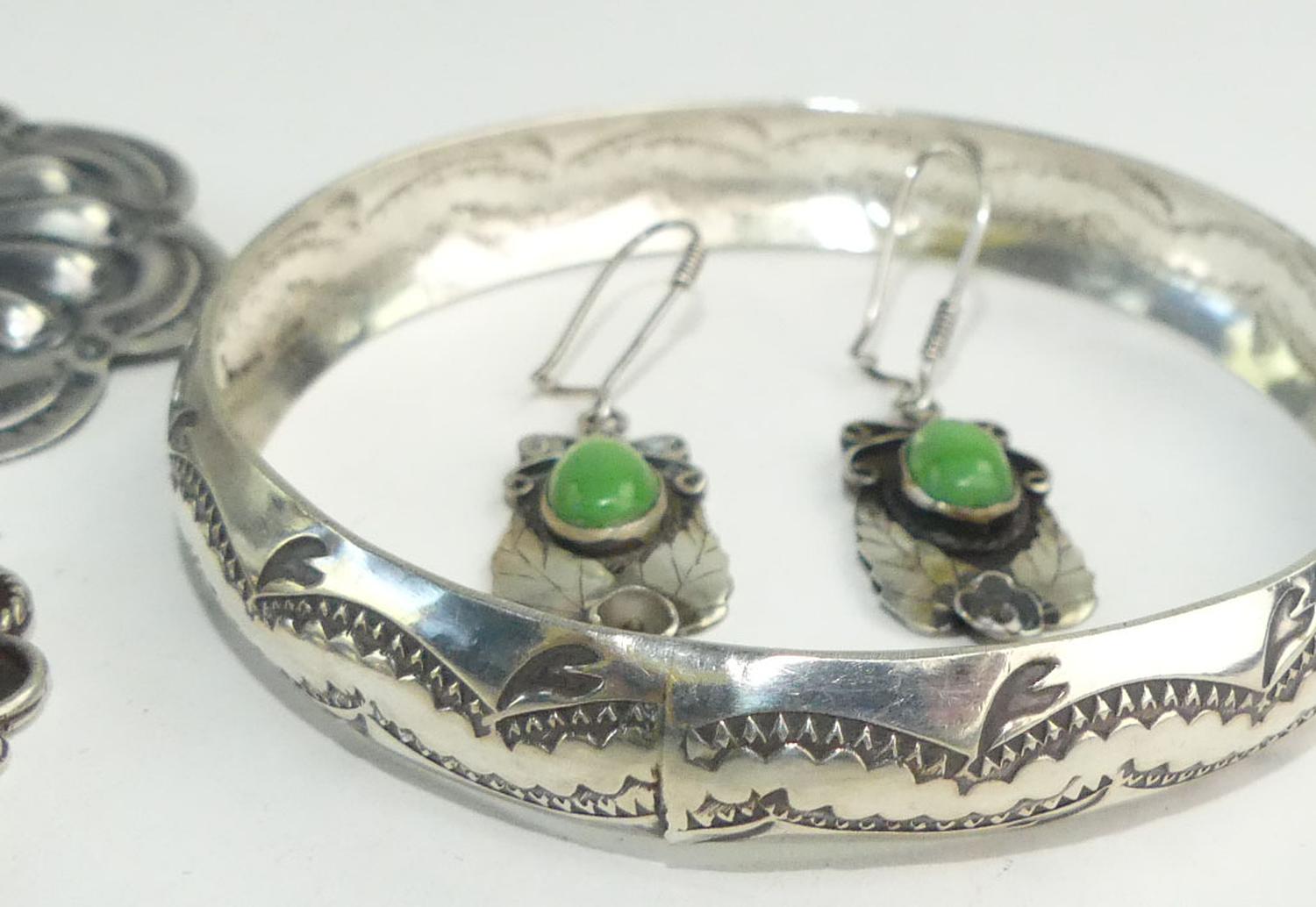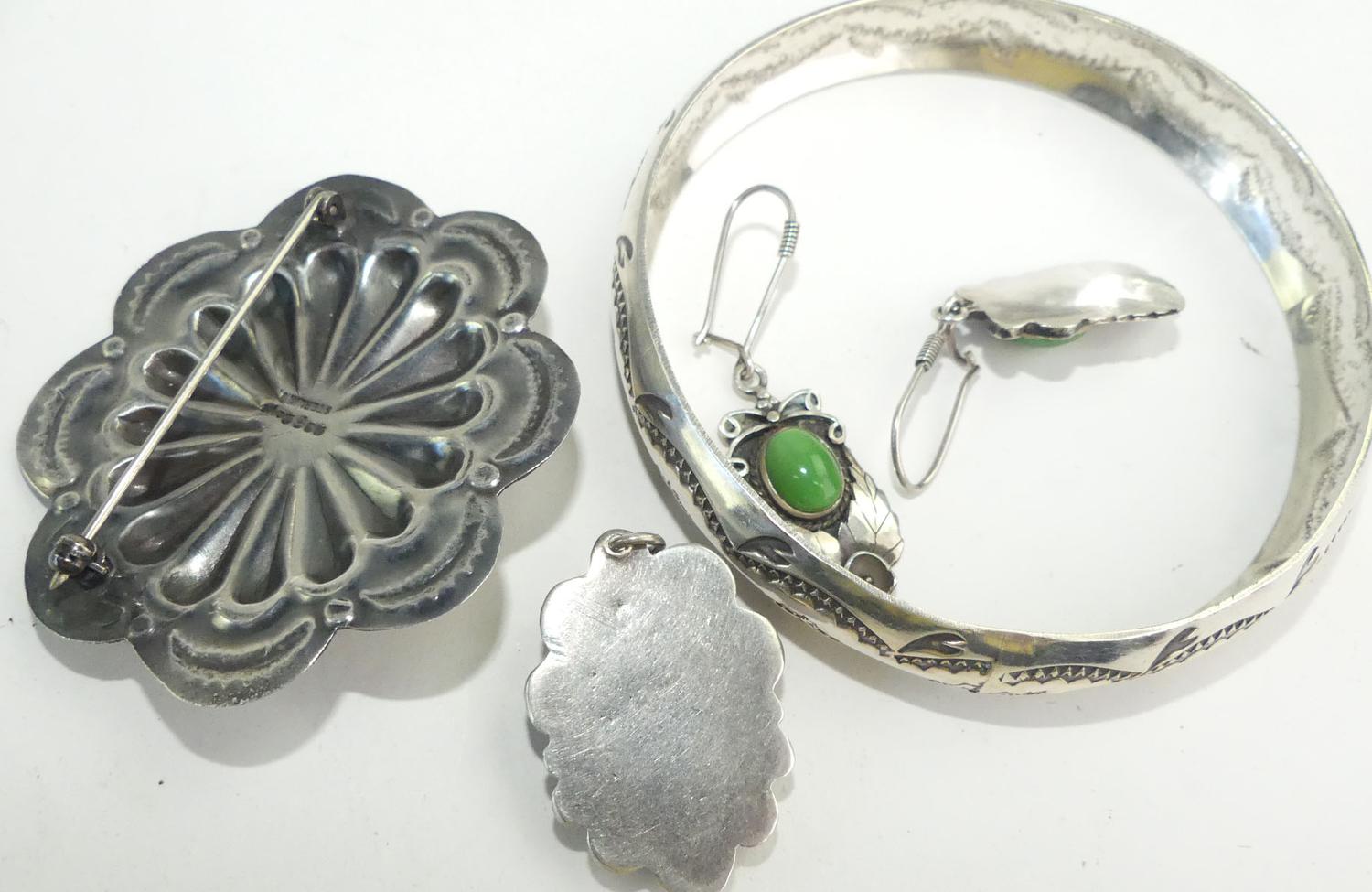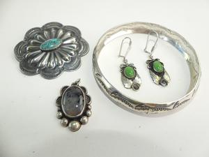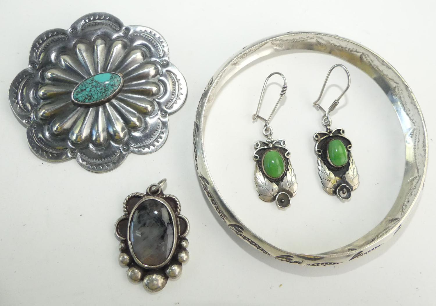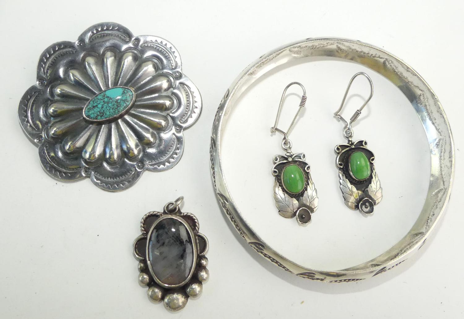 navajo signed r&g daye sterling turquoise brooch, with bangle, earrings and pendant