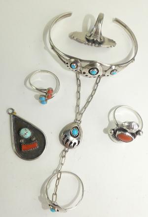 lot of navajo sterling turquoise coral jewelery, 30 grams