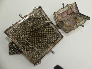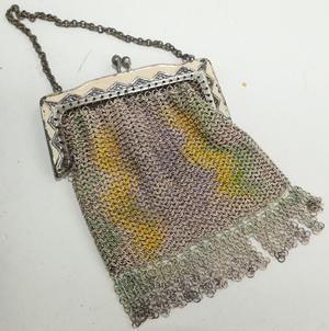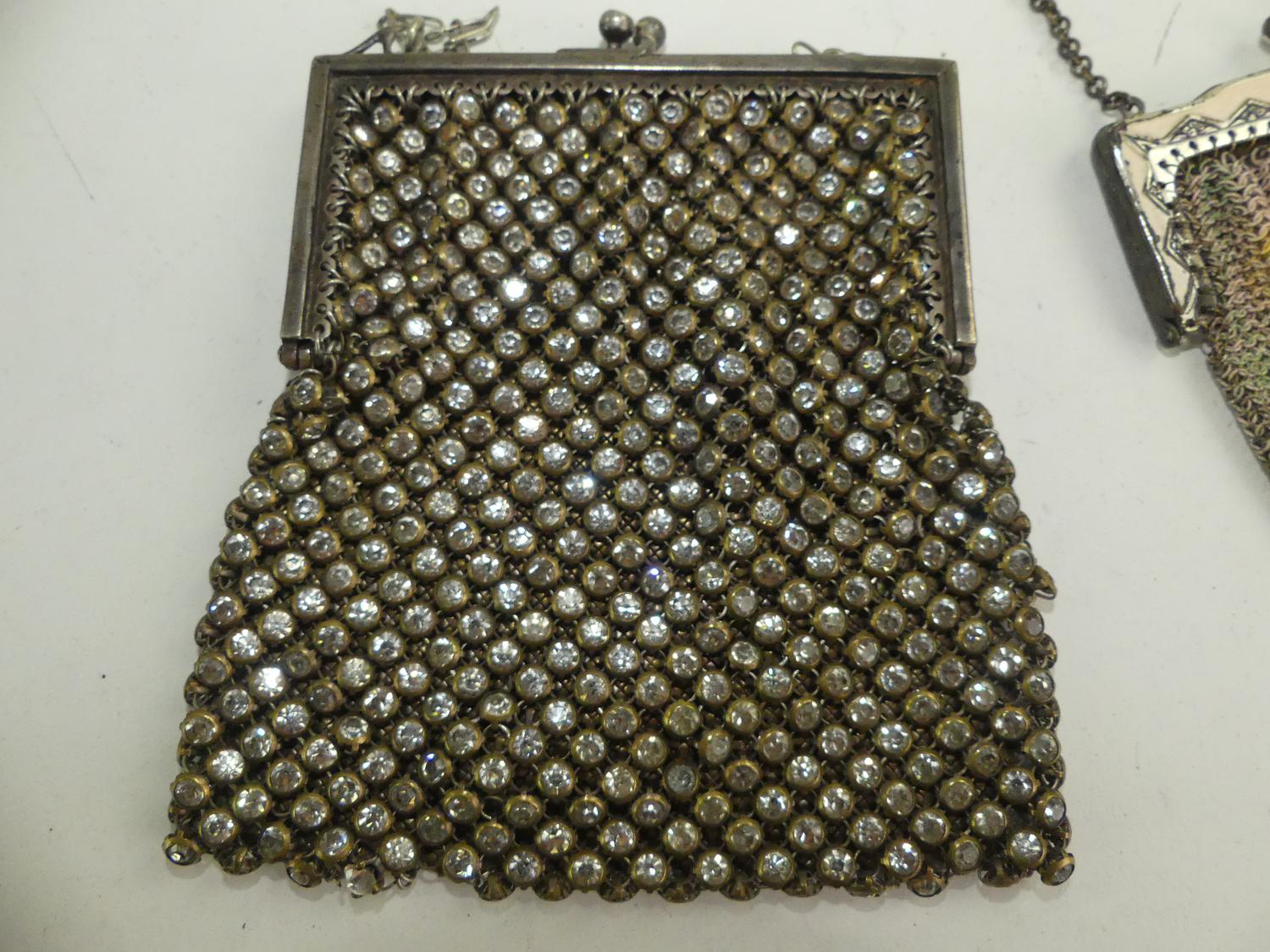 victorian rhinestone purse, 4" x 4", with antique enamel mesh coin purse