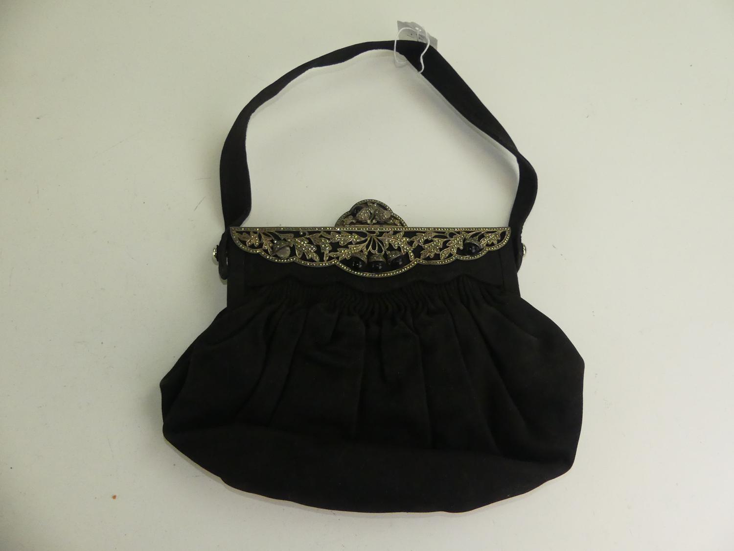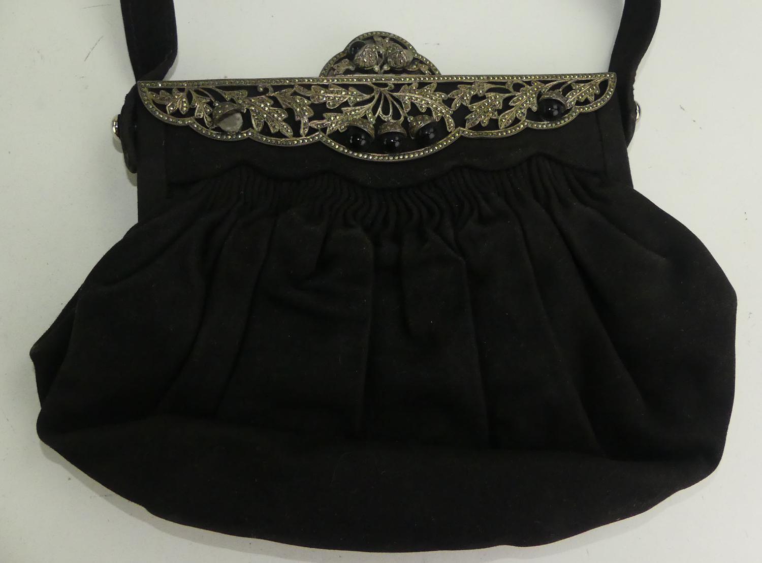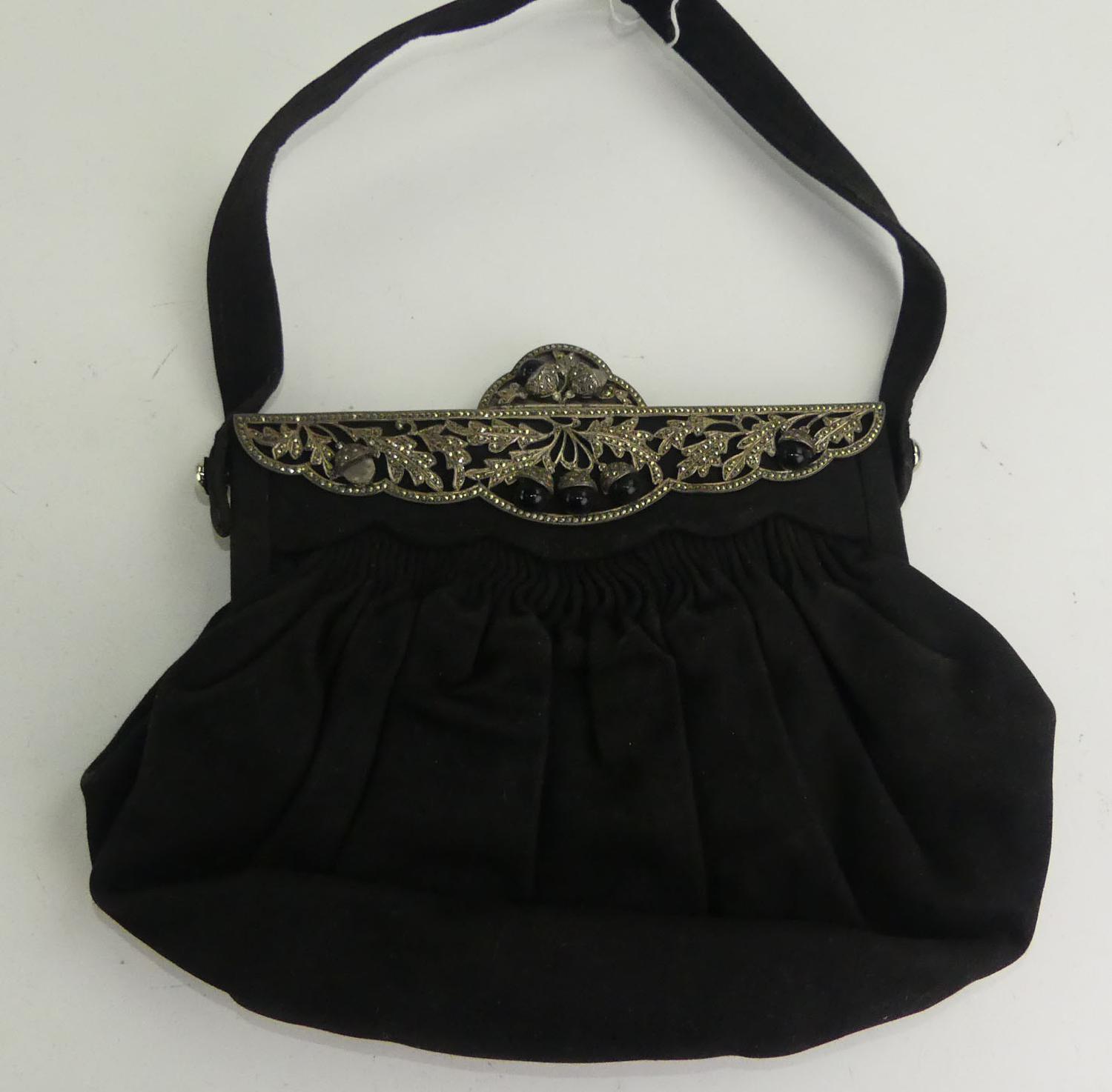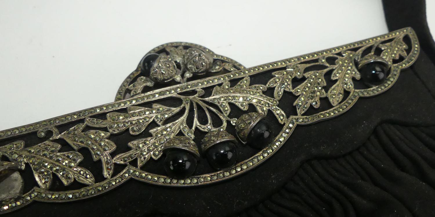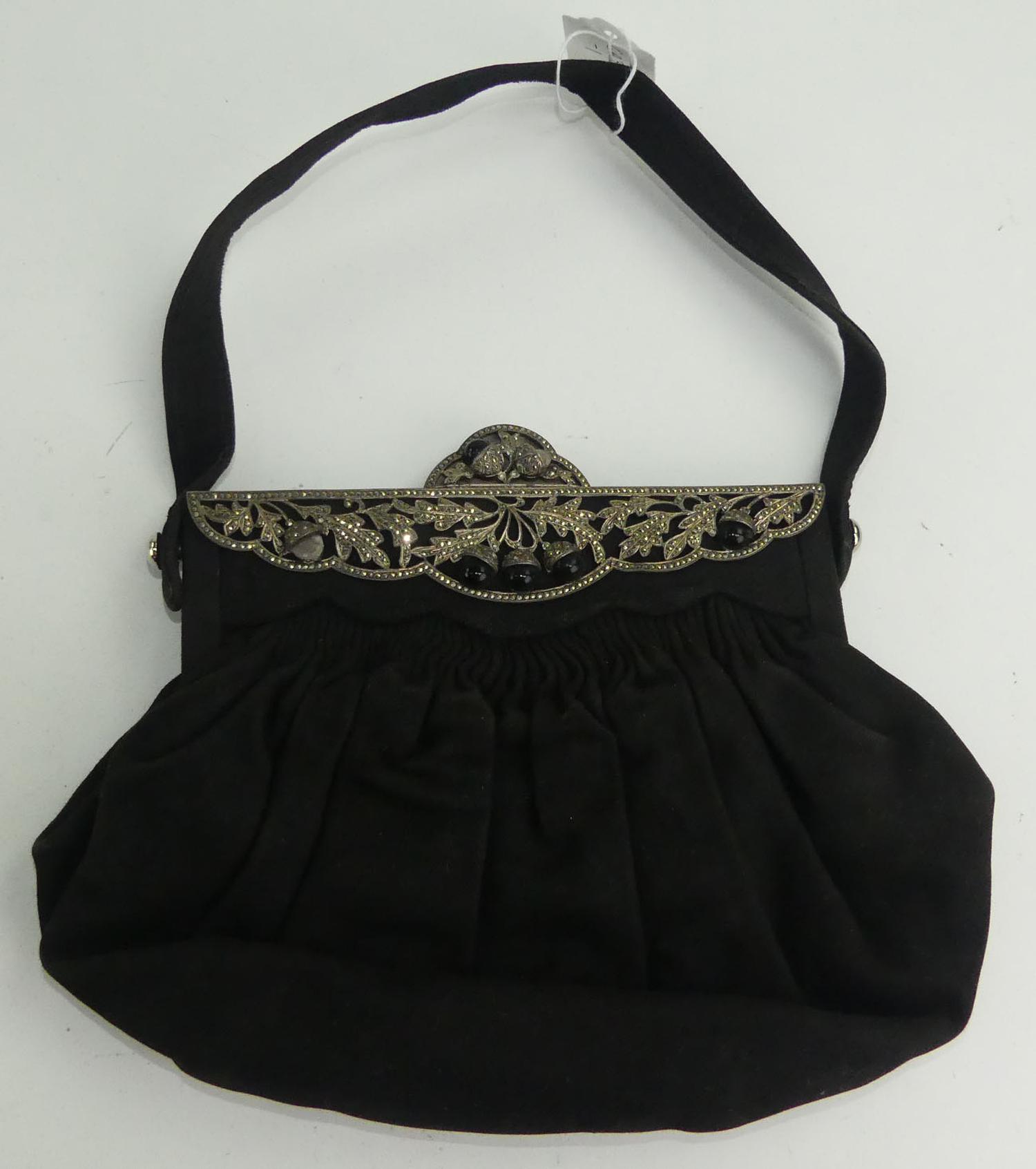art deco french hallmarked silver marcasite frame evening purse, leo milter, paris, 9" x 7"