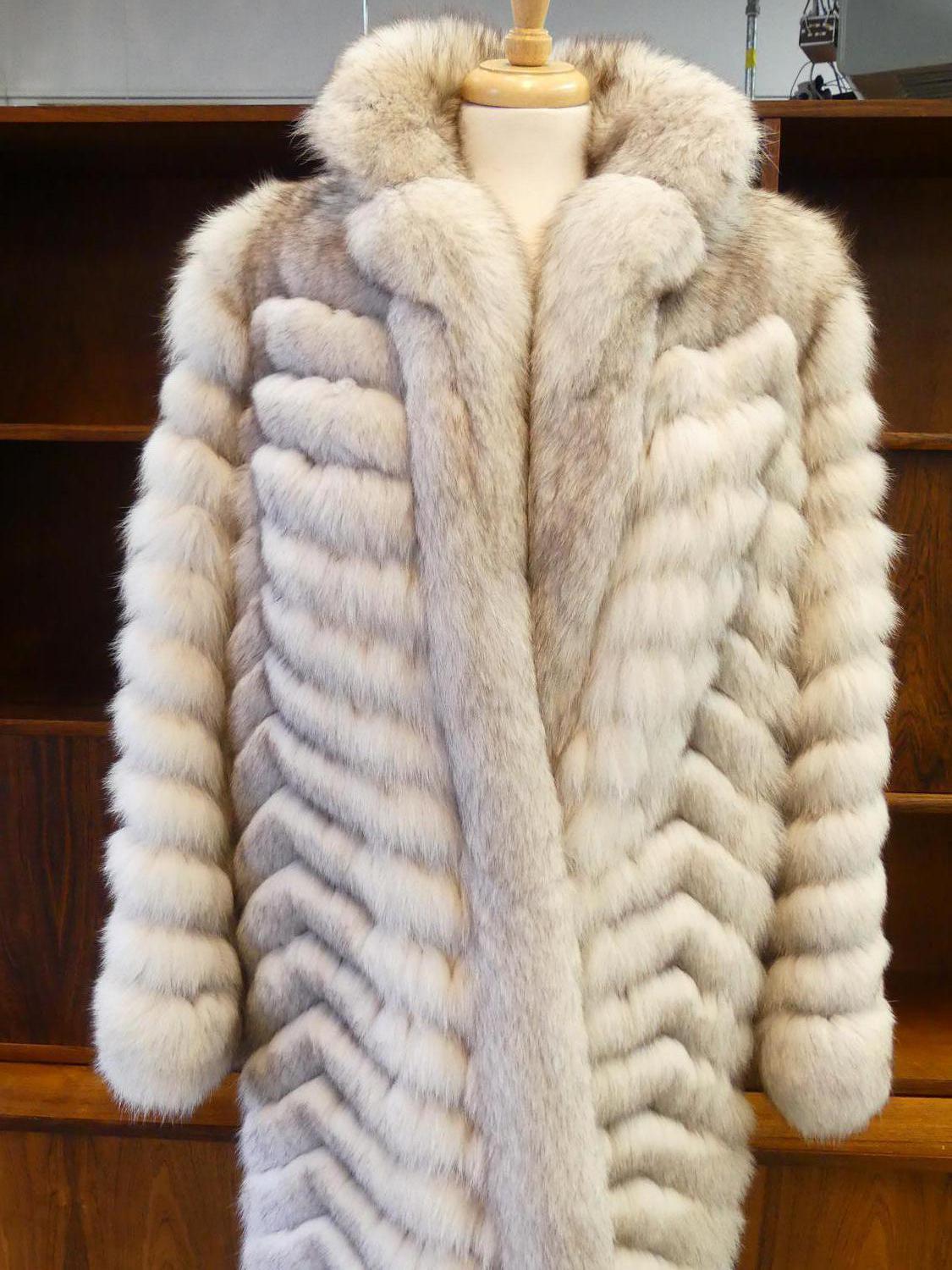 full length silver blue fox fur coat, size 10