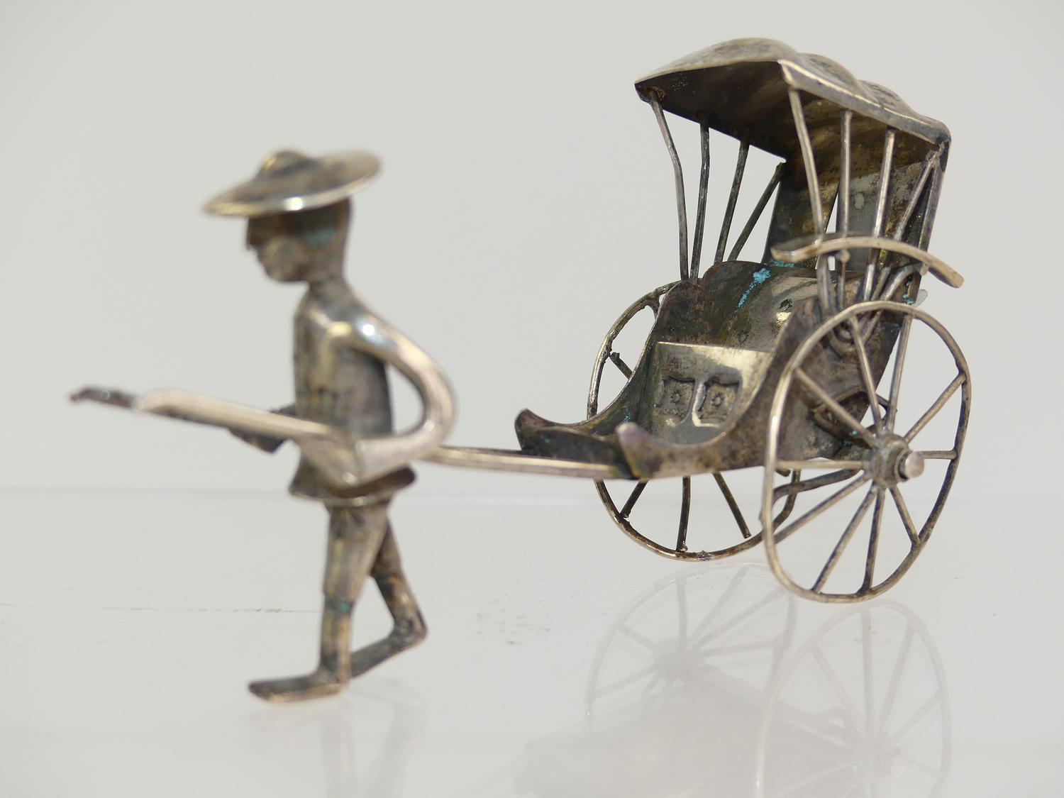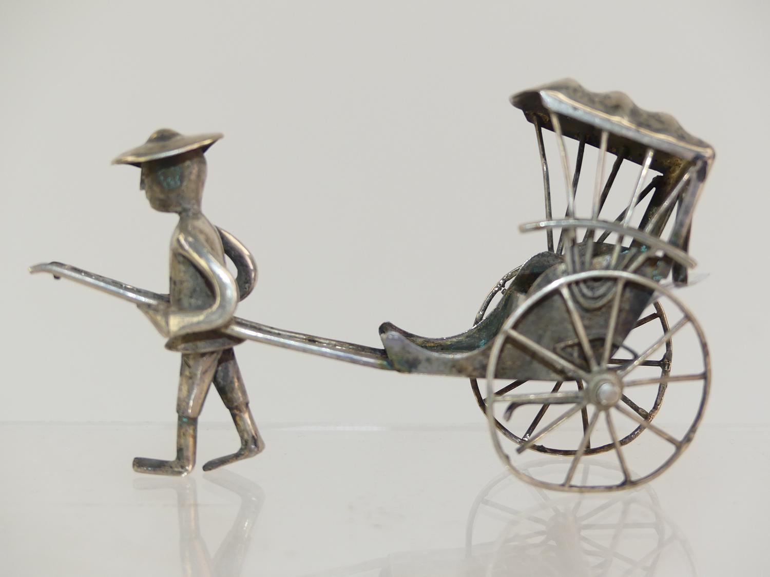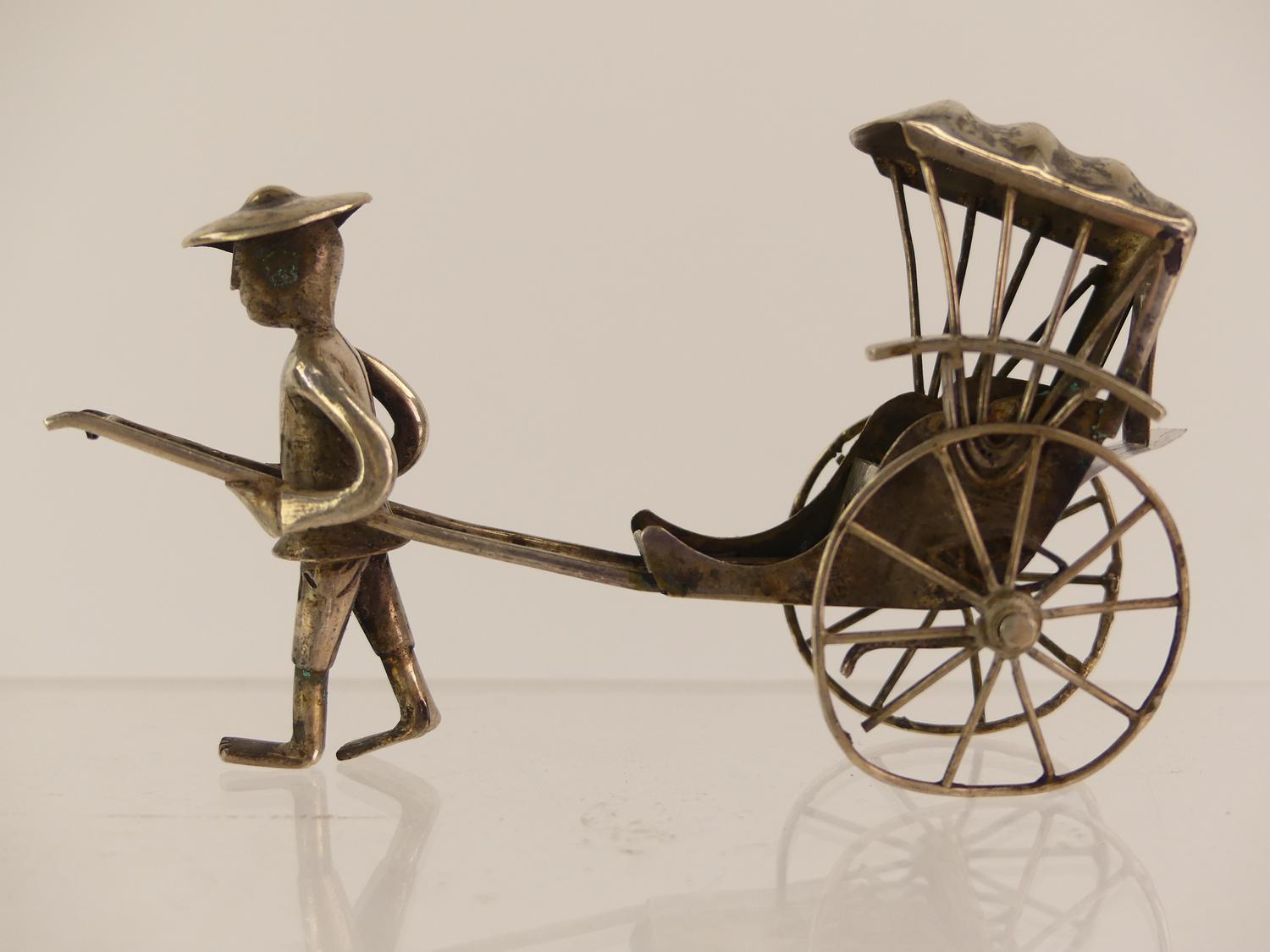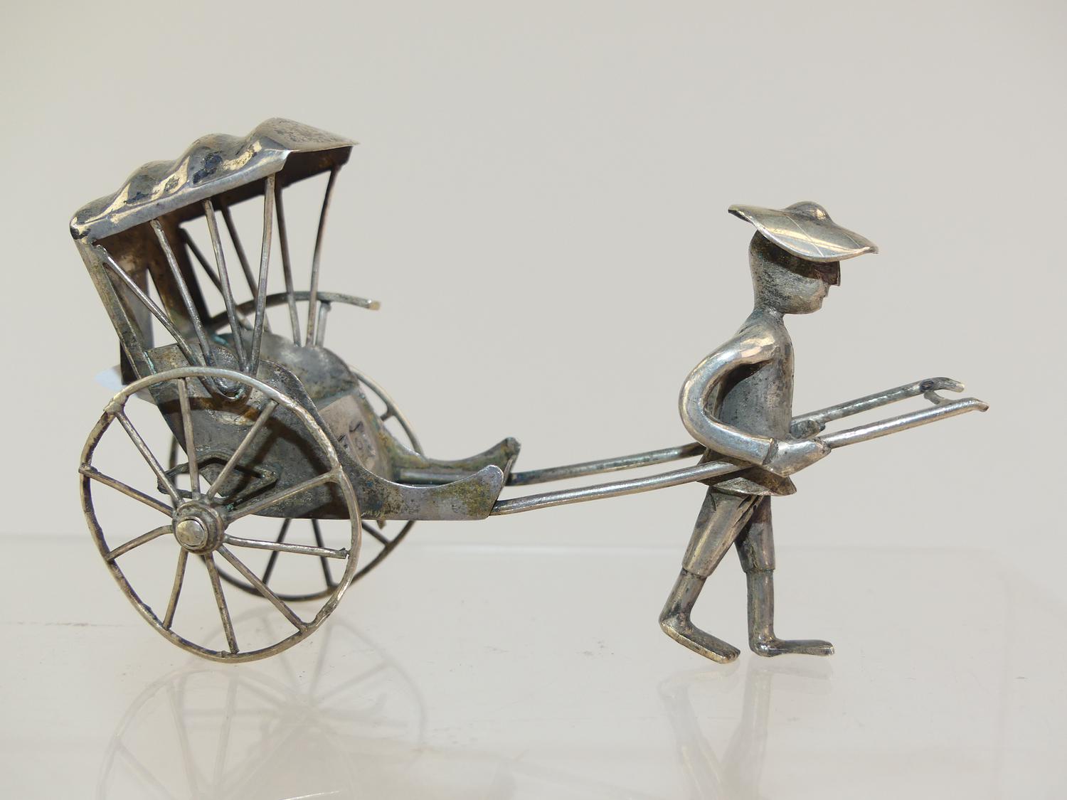 chinese export hallmarked silver rickshaw, length 3 1/2"