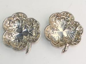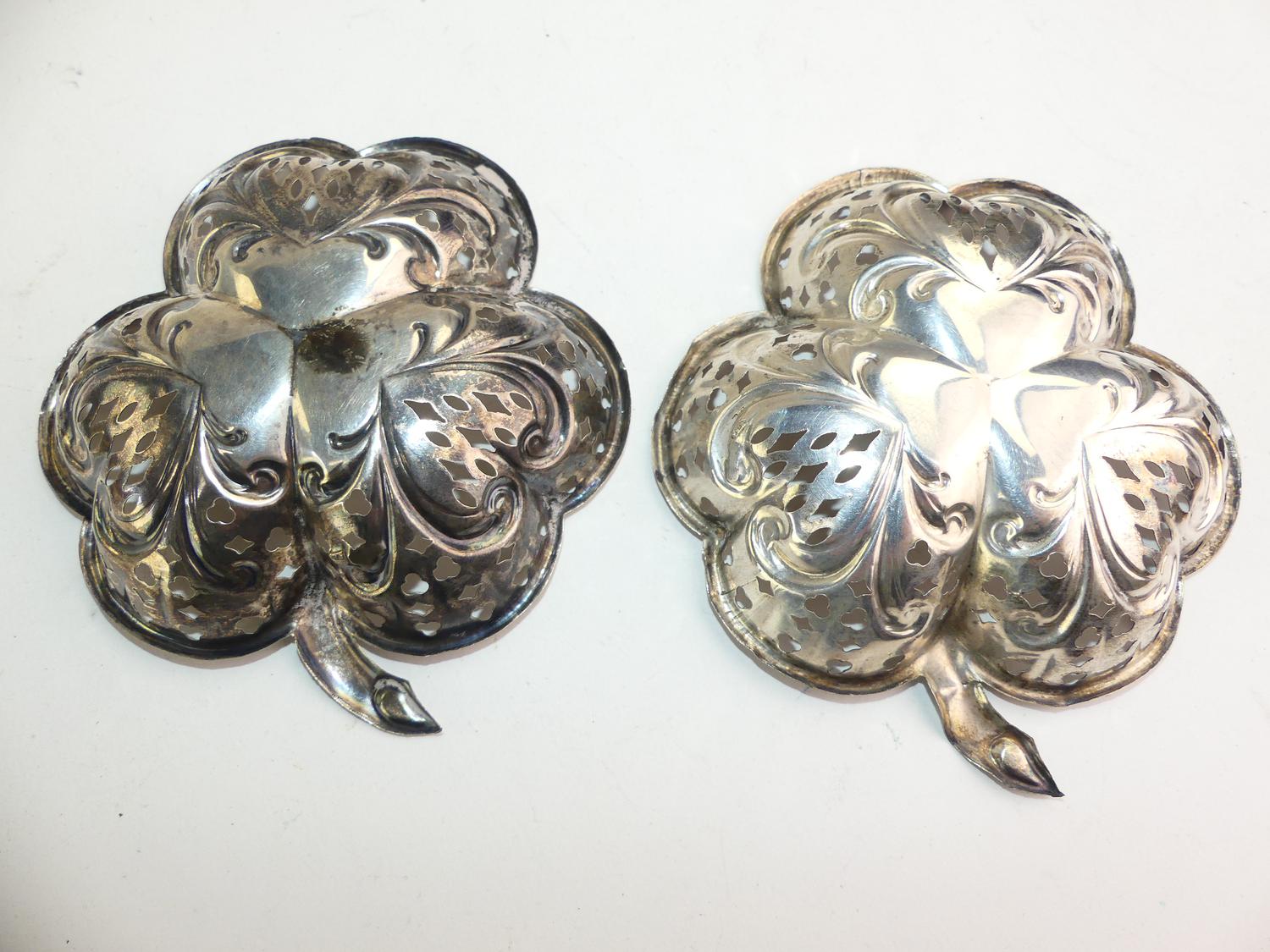 hallmarked sterling silver shamrock-shaped pierced dishes, 4 1/4" x 43 grams