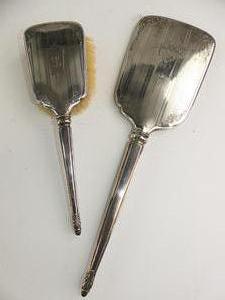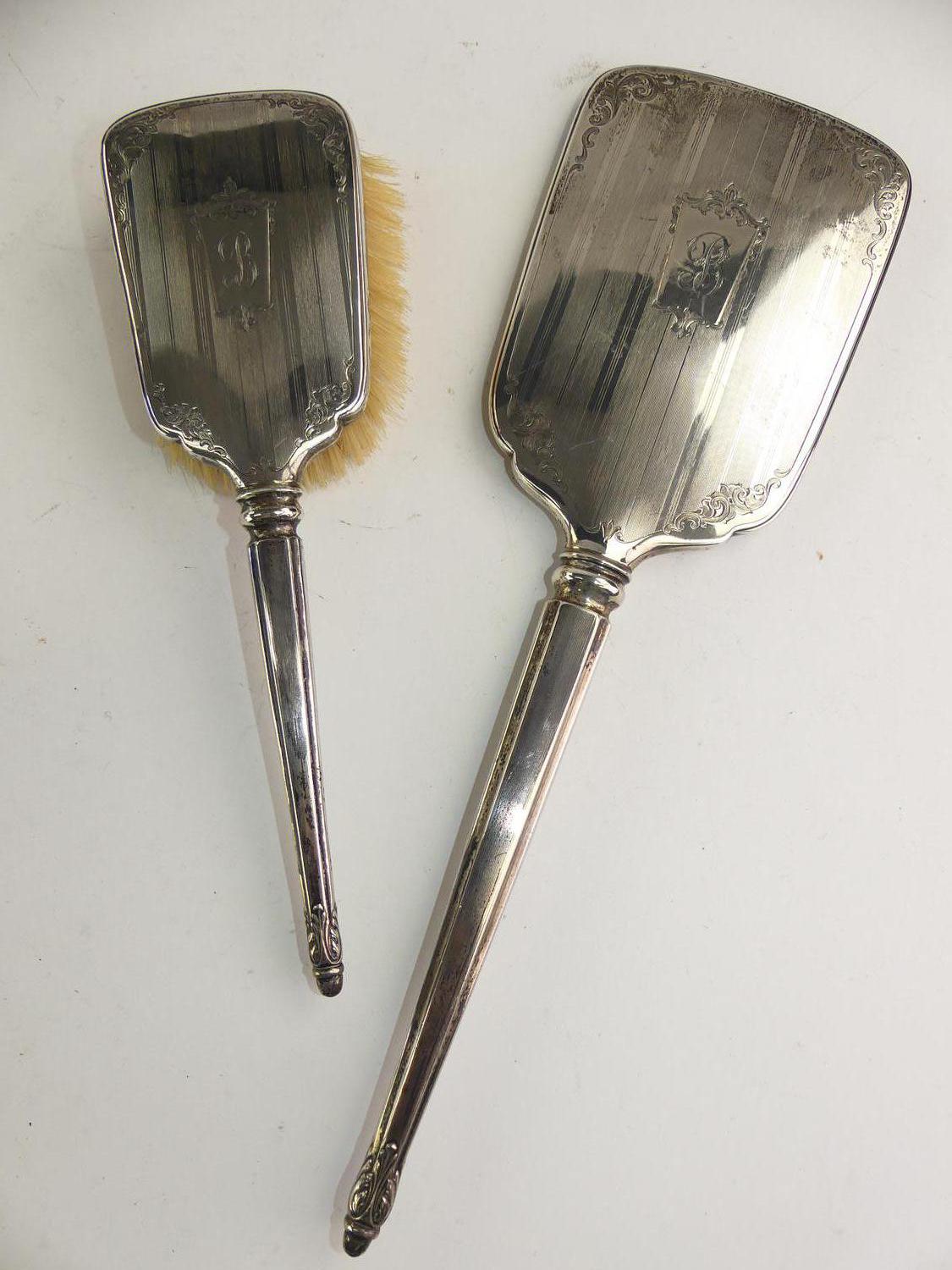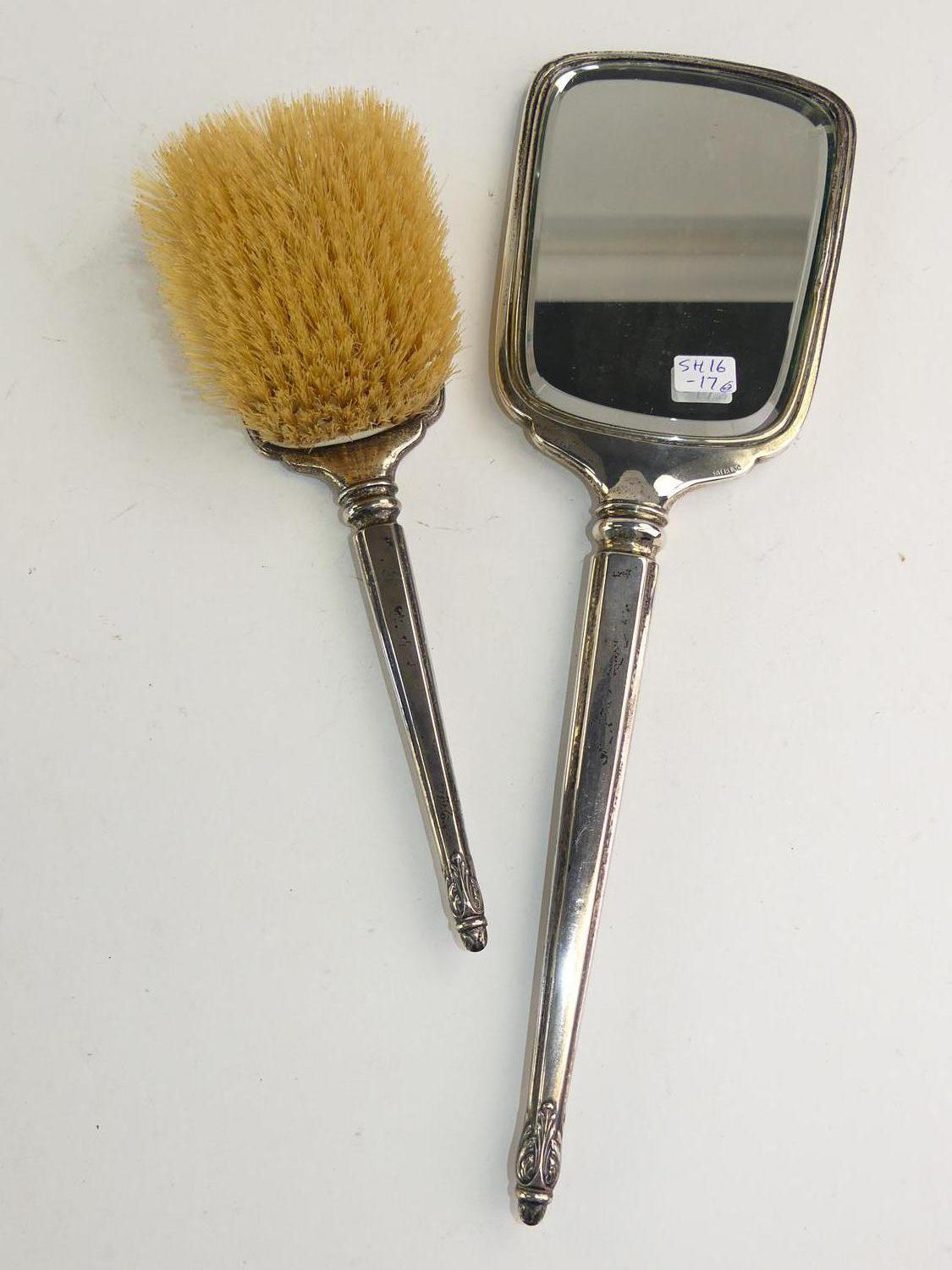 birks sterling silver dressing mirror and brush, ht. 15"