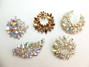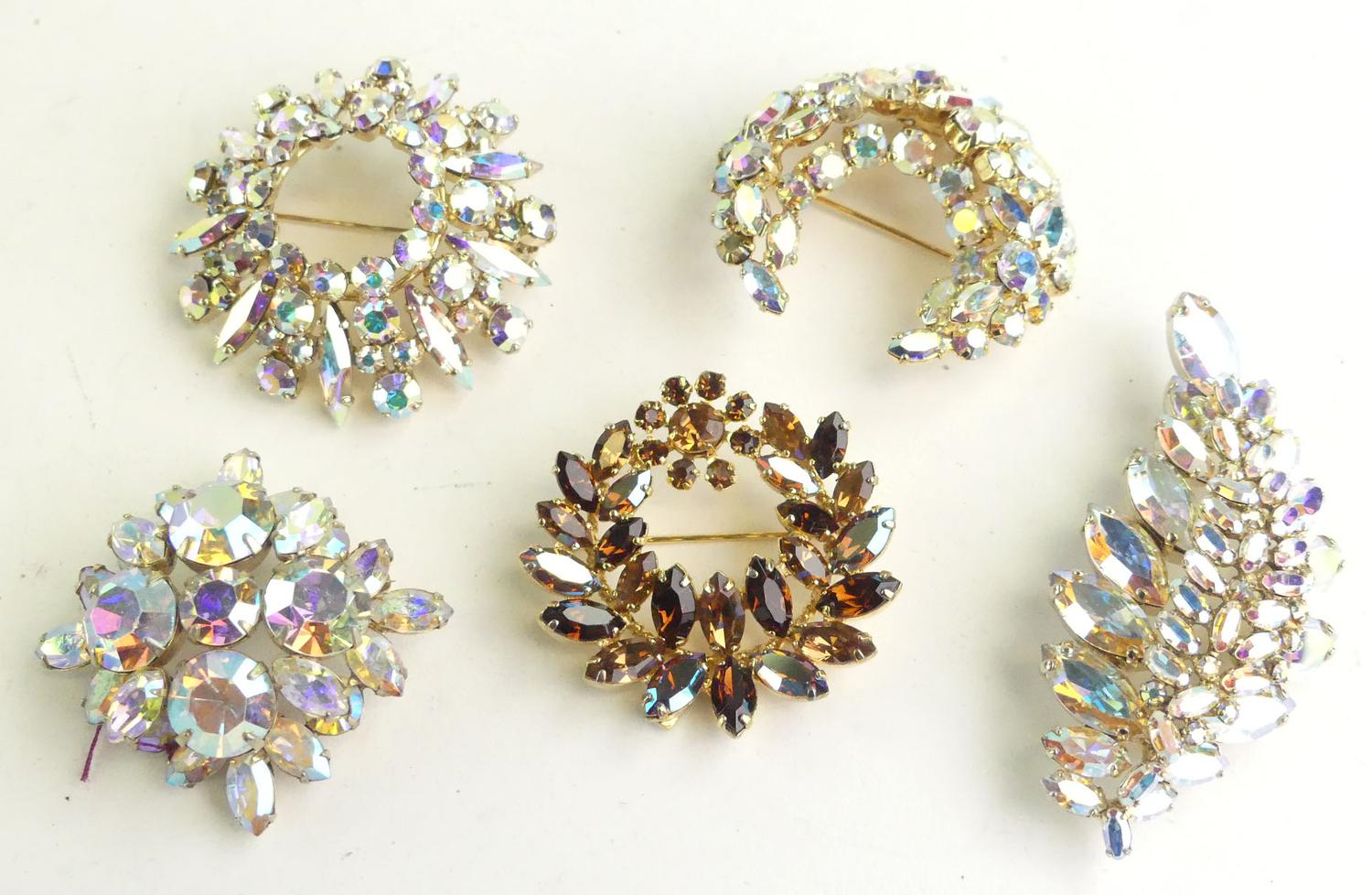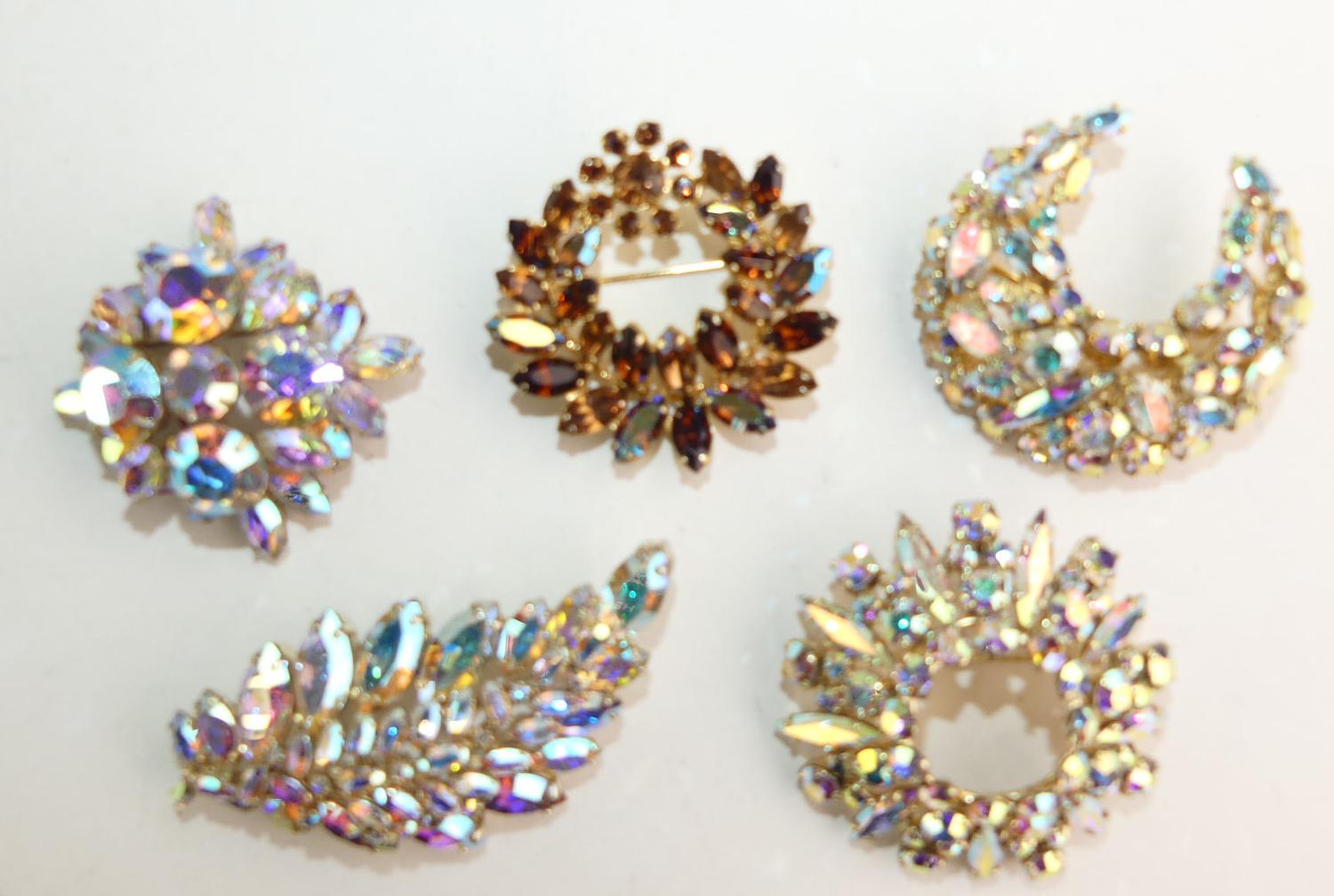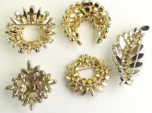 5 vintage sherman signed brooches, circa 1950s