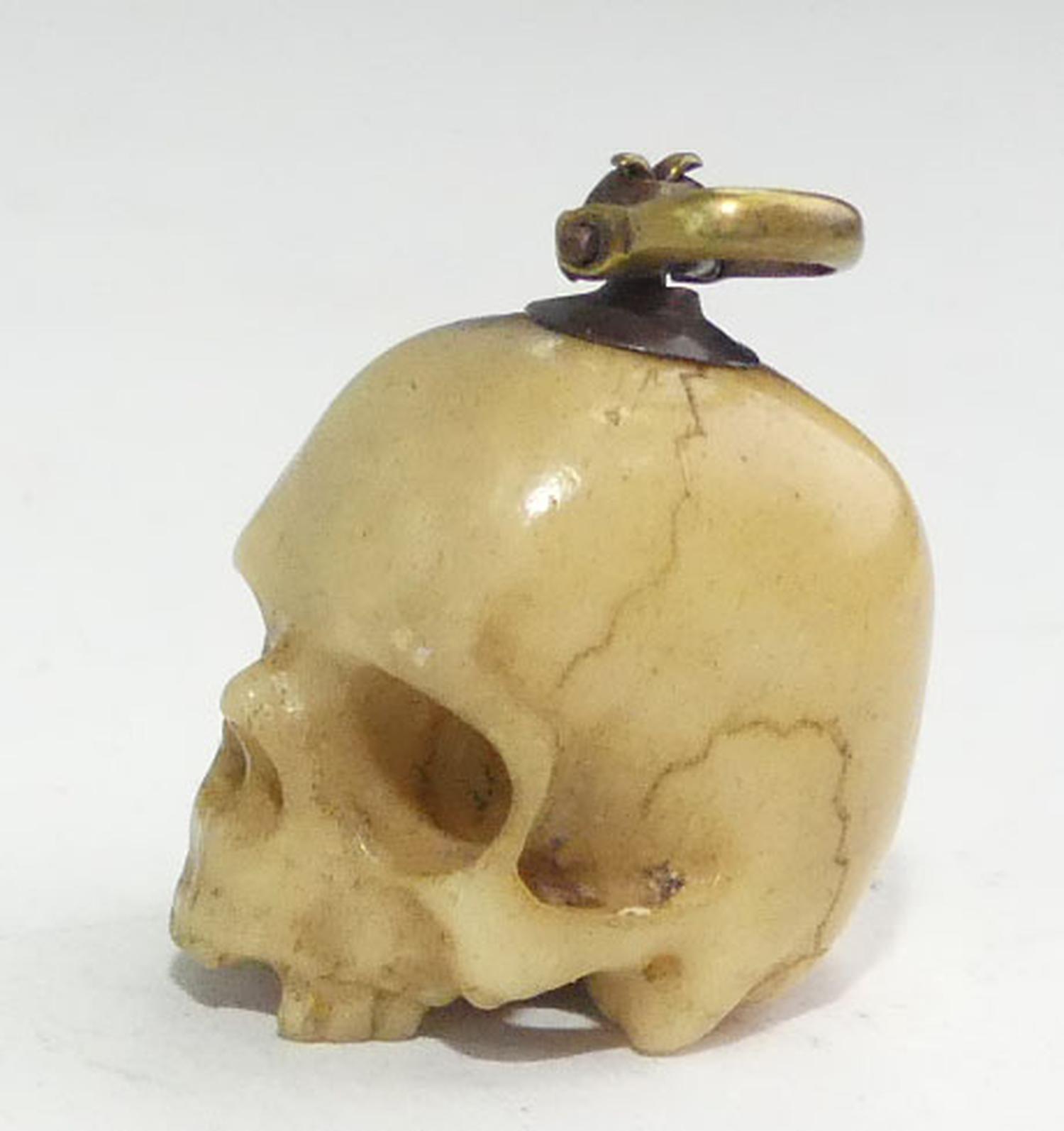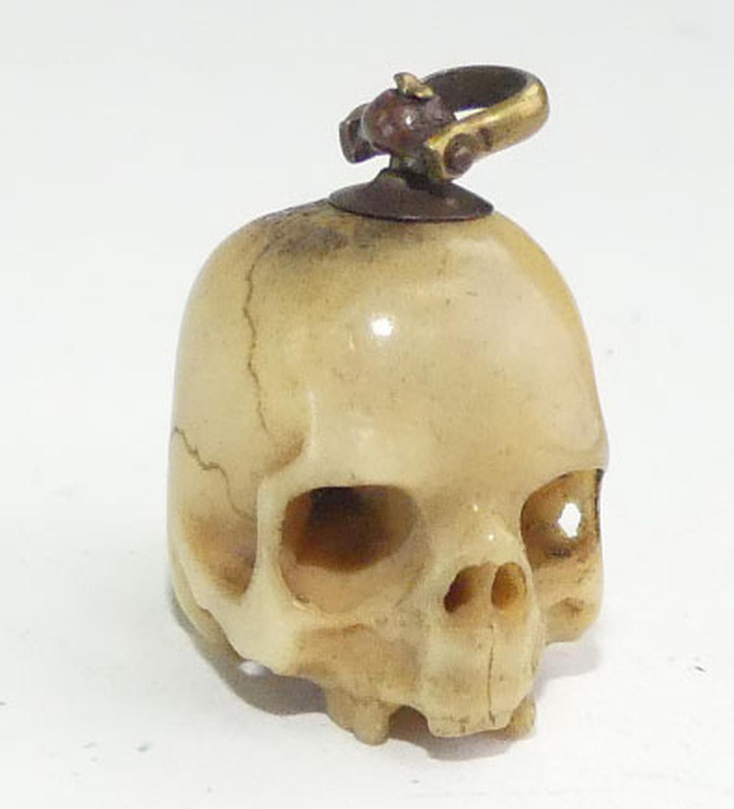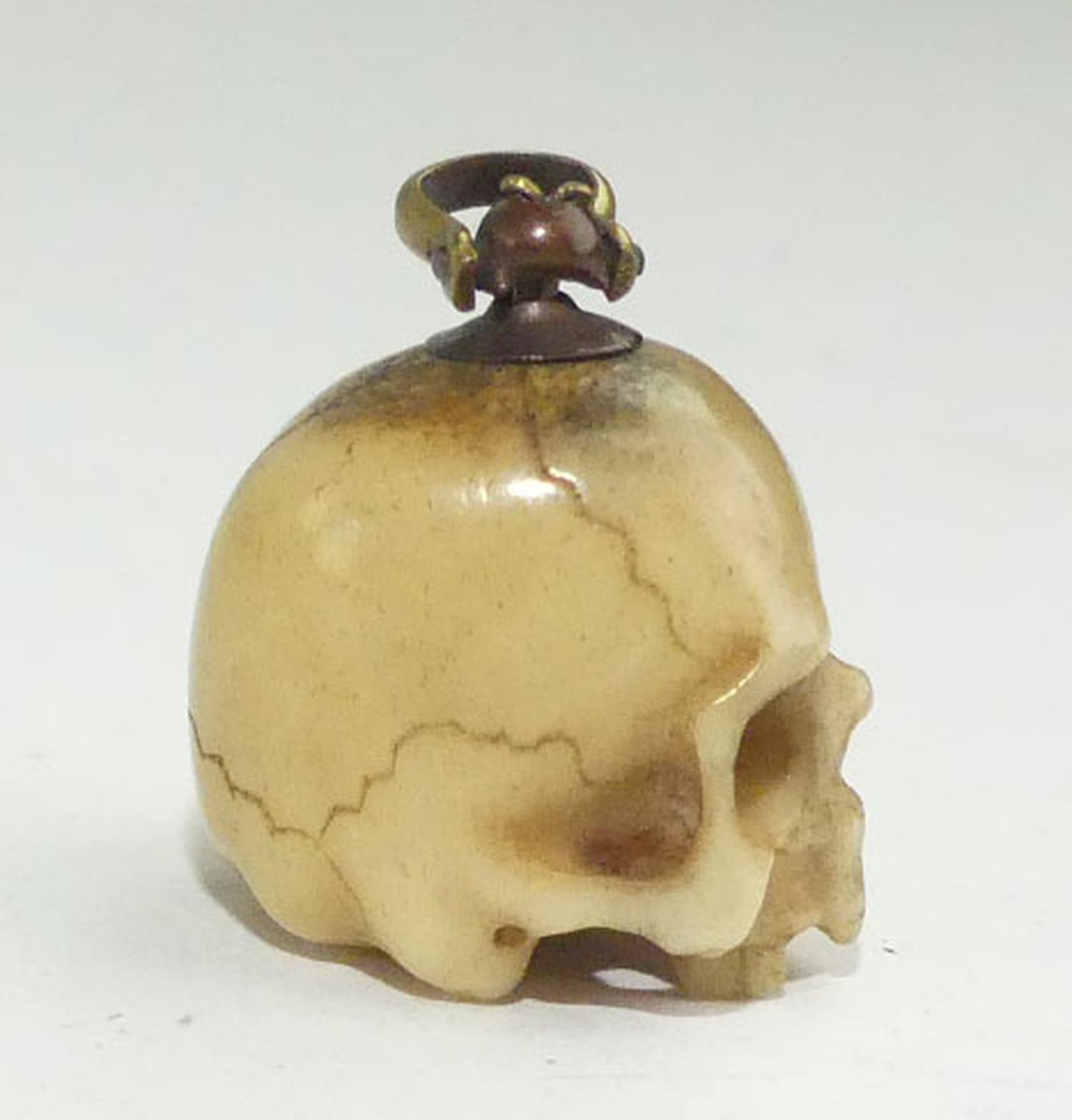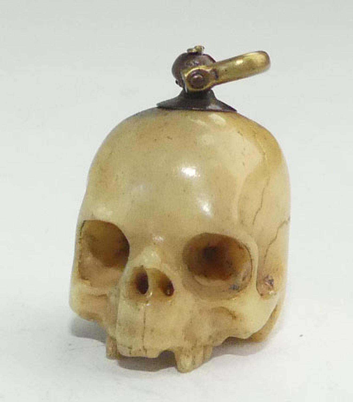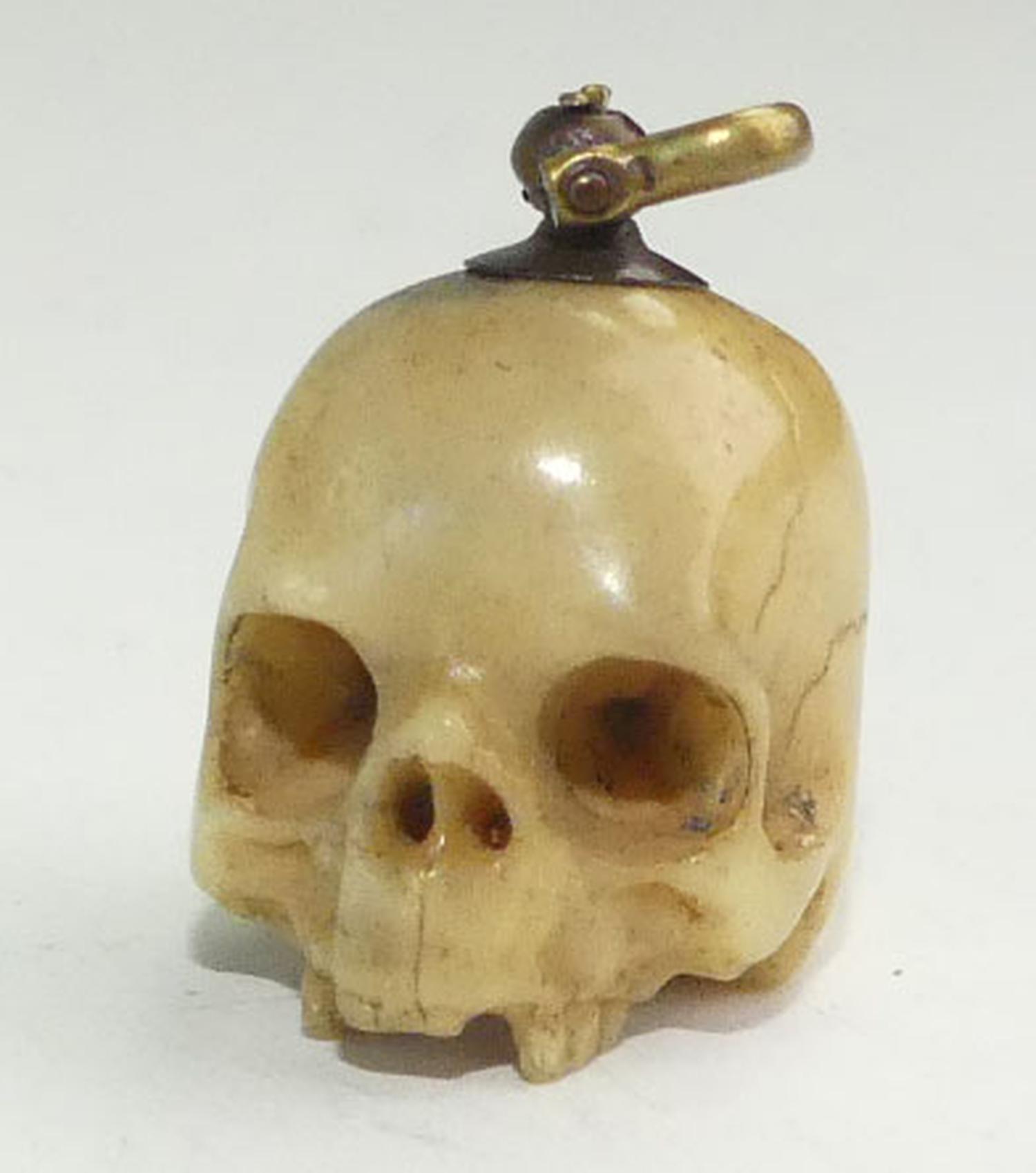 early victorian carved bone skull charm, as is