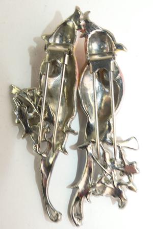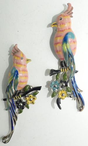 vintage coro duette birds of paradise enamel rhinestone dress clips, height 3 1/2", no deployment
