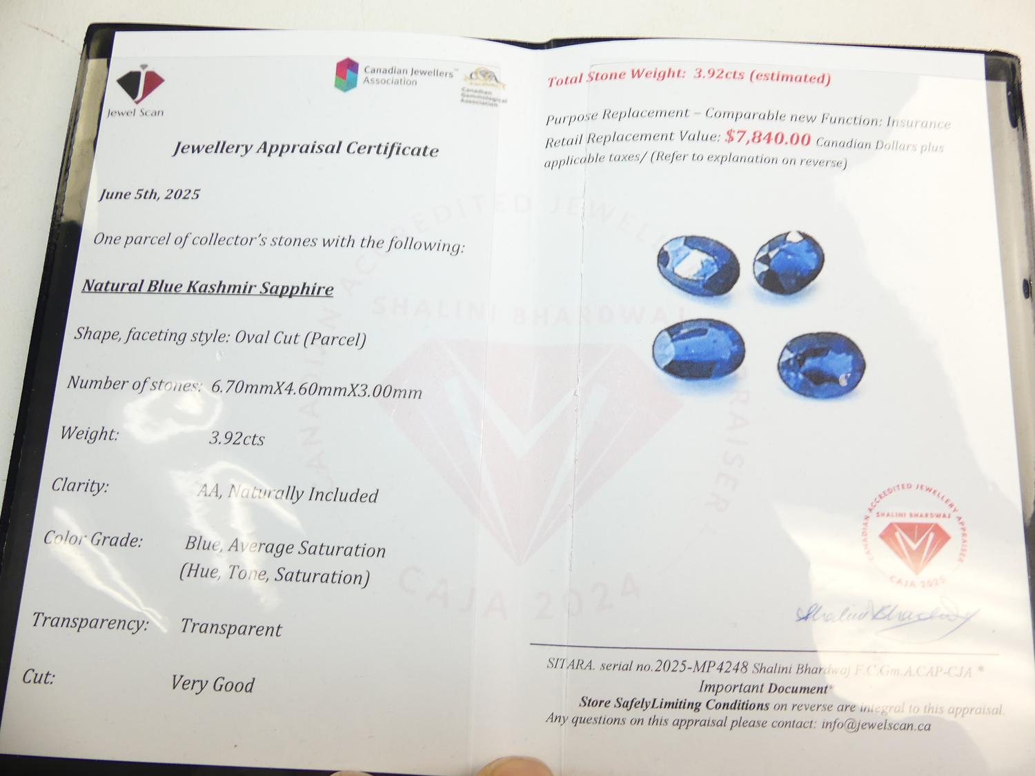 4 unmounted oval facetted sapphires, 3.92cts, with appraisal