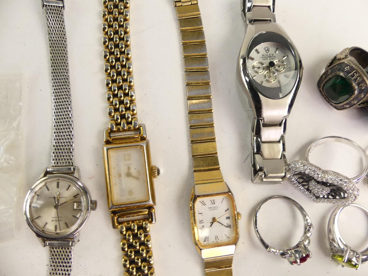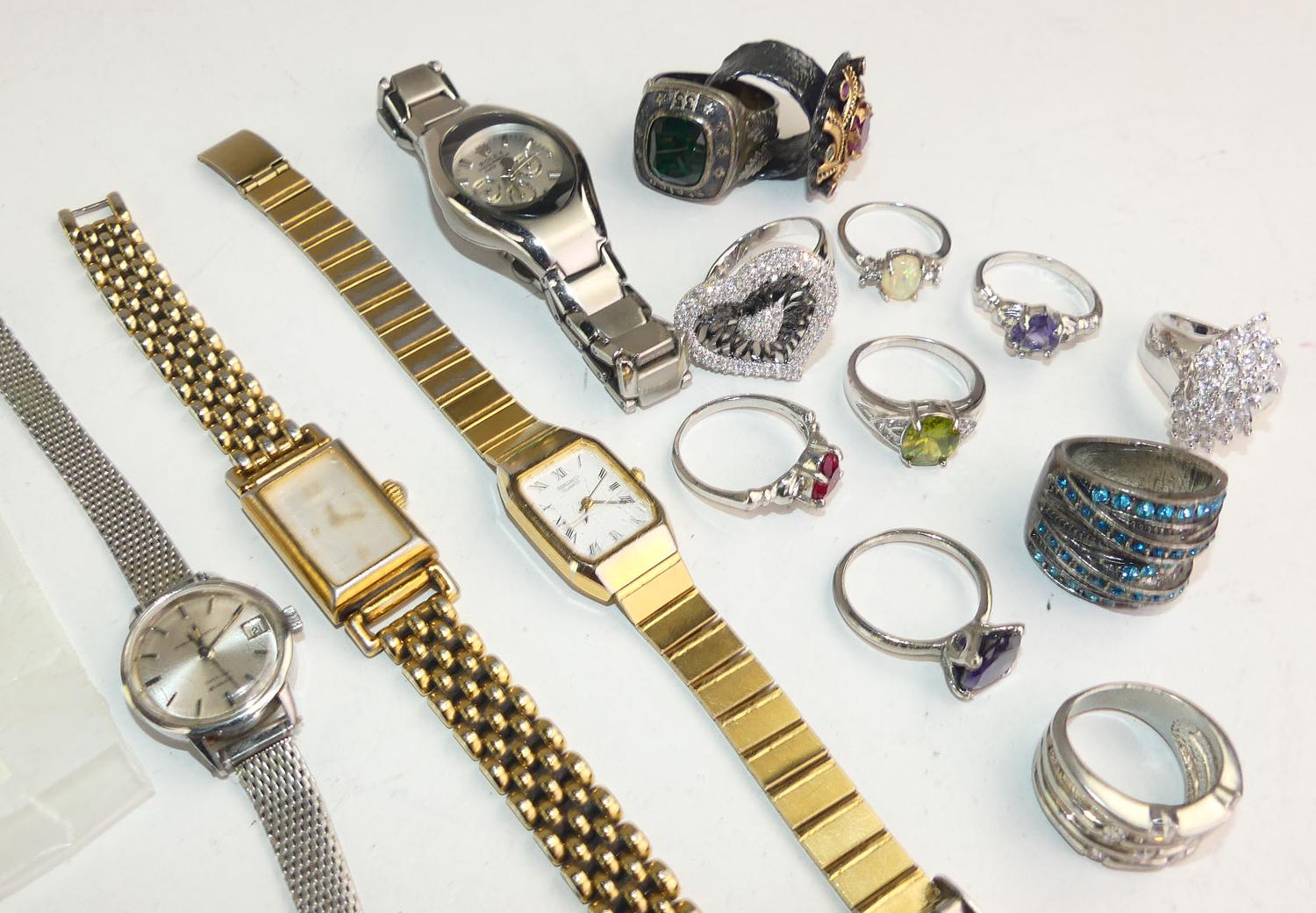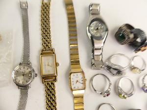 lot of vintage ladies watches including birks with costume rings