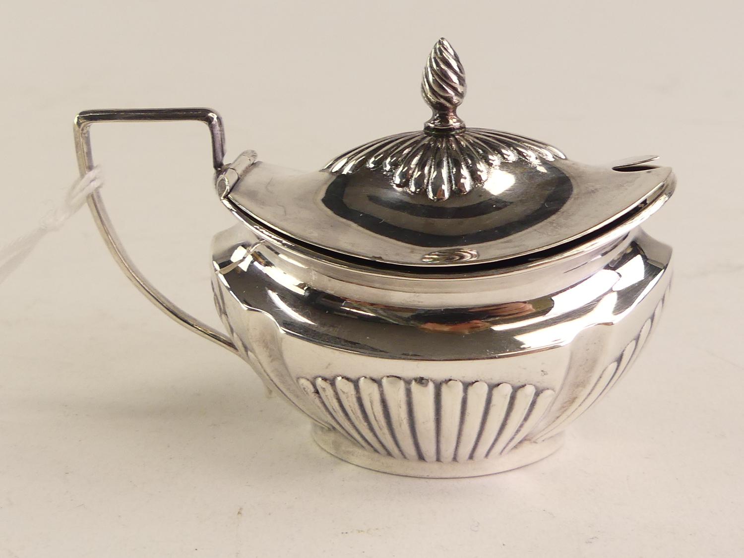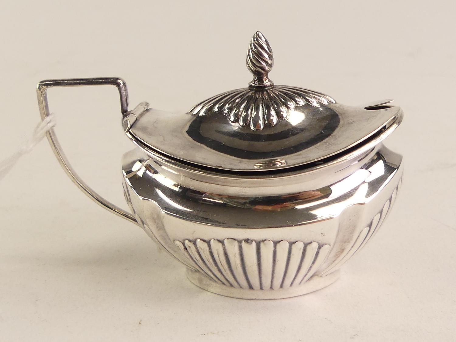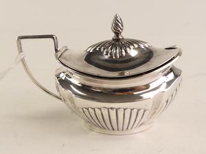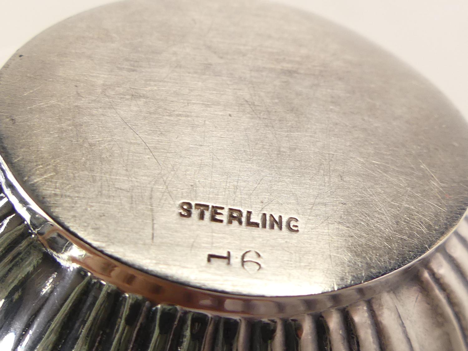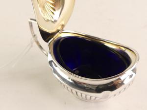 sterling silver cobalt lined mustard pot, 2 1/4" x 3 1/4", 40 grams